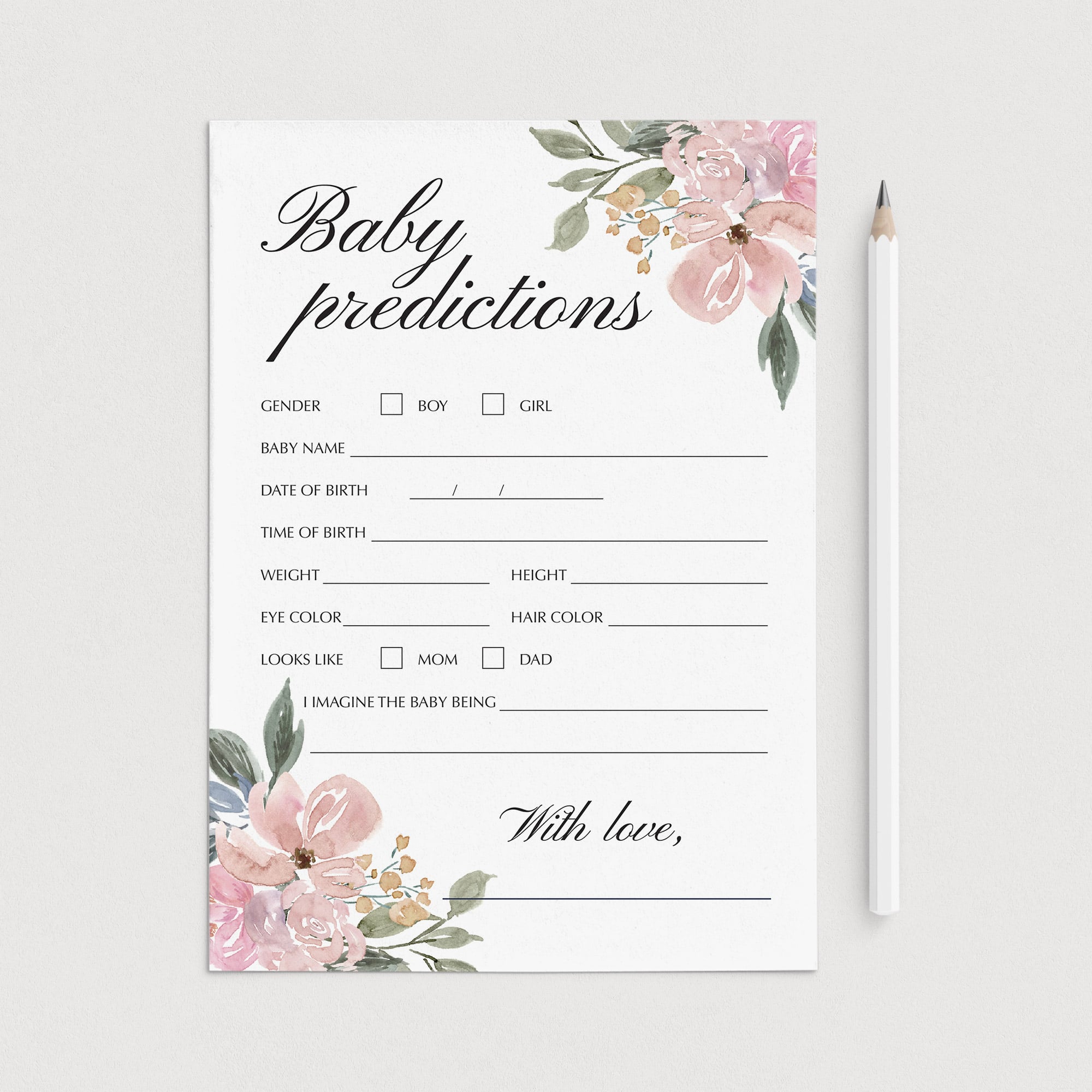 This printable baby predictions card is an instant download, so simply download and print the cards as many times as you need. Print the cards right from your computer in a matter of minutes or have them printed at your favorite print shop.