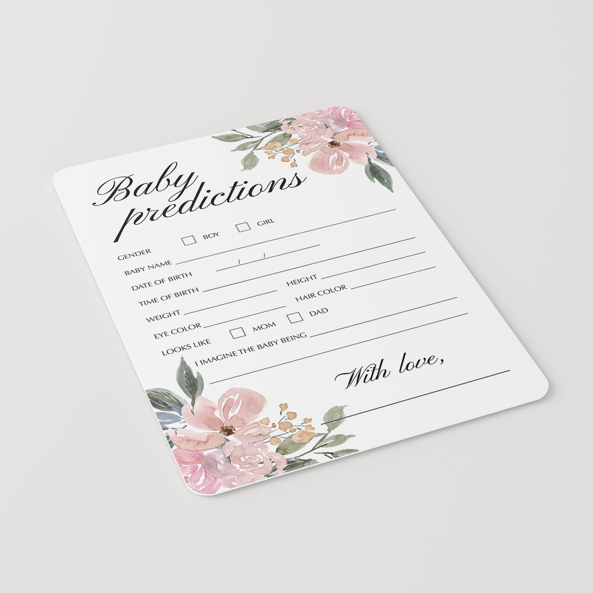Are you hosting a neutral baby shower? Create a magnificent keepsake for the mom-to-be with this elegant baby shower prediction card with a blend of soft tones and lovely floral arrangements.