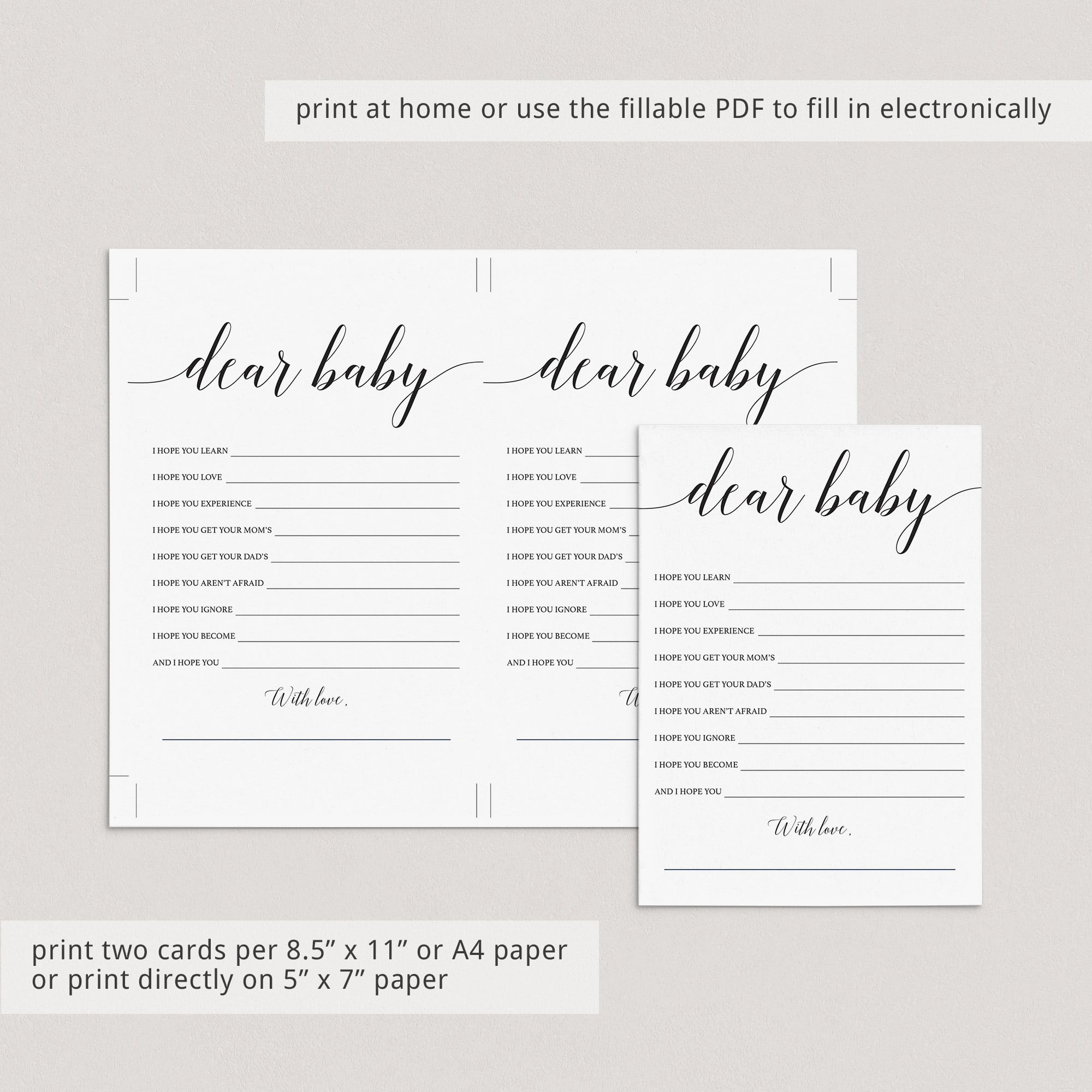 And if you are hosting a virtual baby shower, you can email the wishes cards to friends and family and have them print the cards at home or fill in their wishes for the new baby electronically in the free version of Adobe Acrobat Reader.