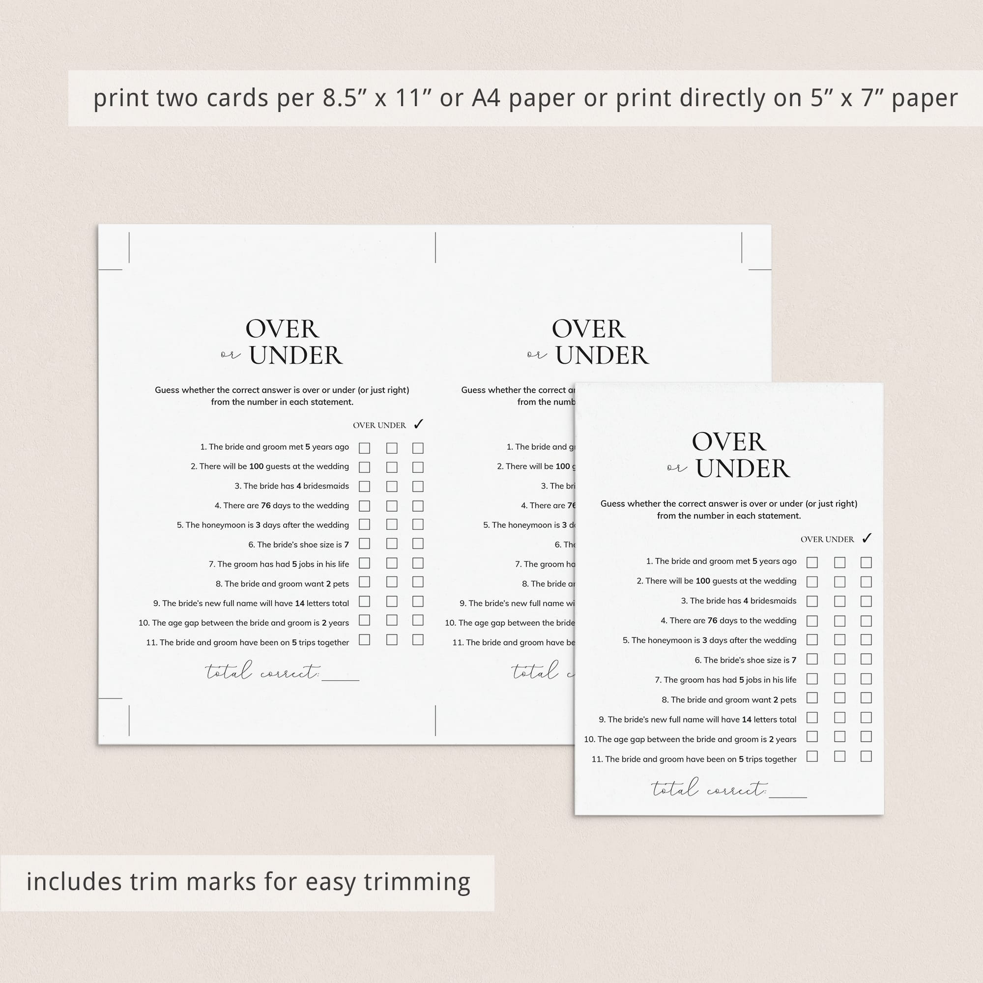 Print the games right from your computer in a matter of minutes or have the game cards printed at your favorite print shop. The games have been designed in black and white. You can print on kraft paper to create a rustic look or print on colored card stock to match your party color palette. We recommend printing on a nice heavy card stock for highest quality feel.