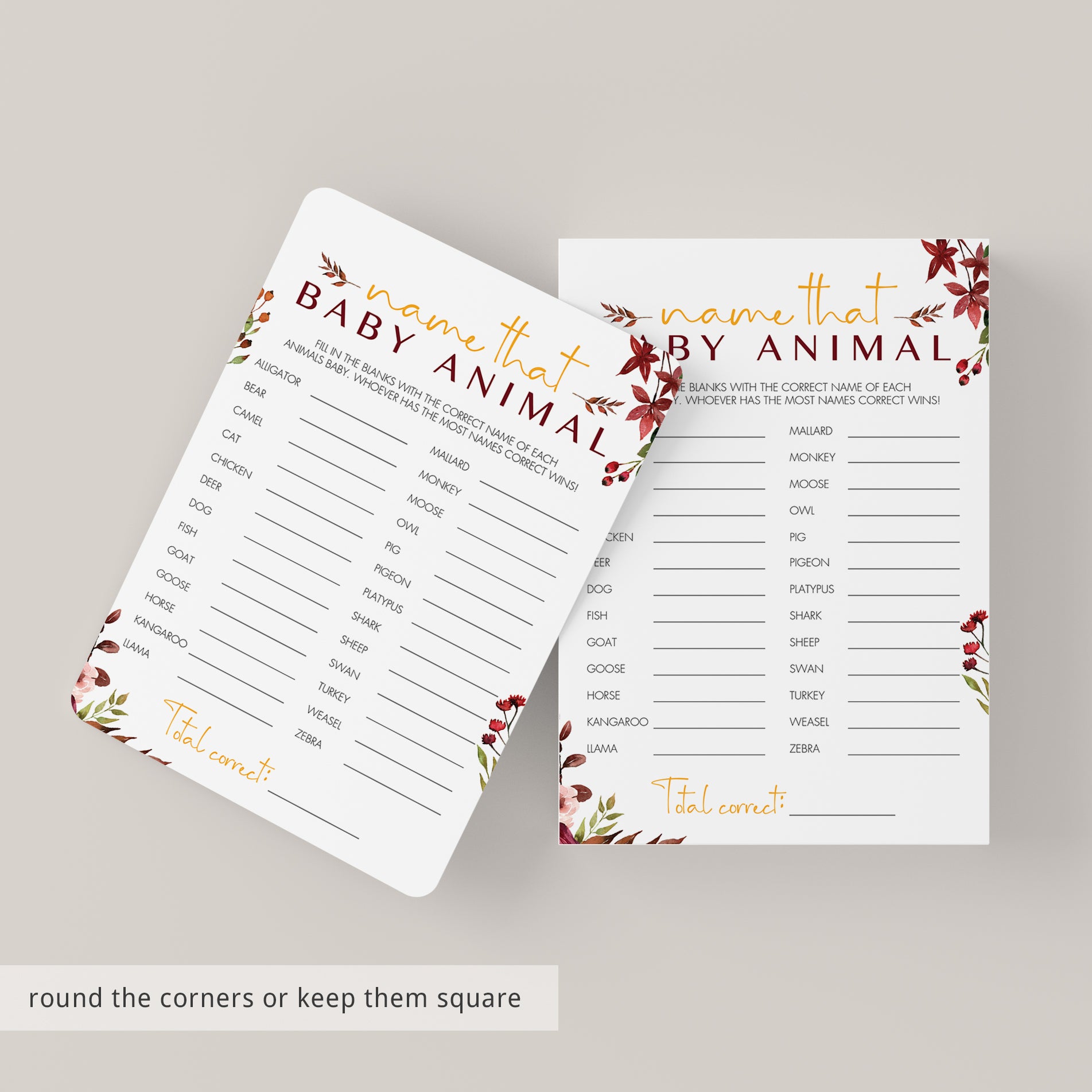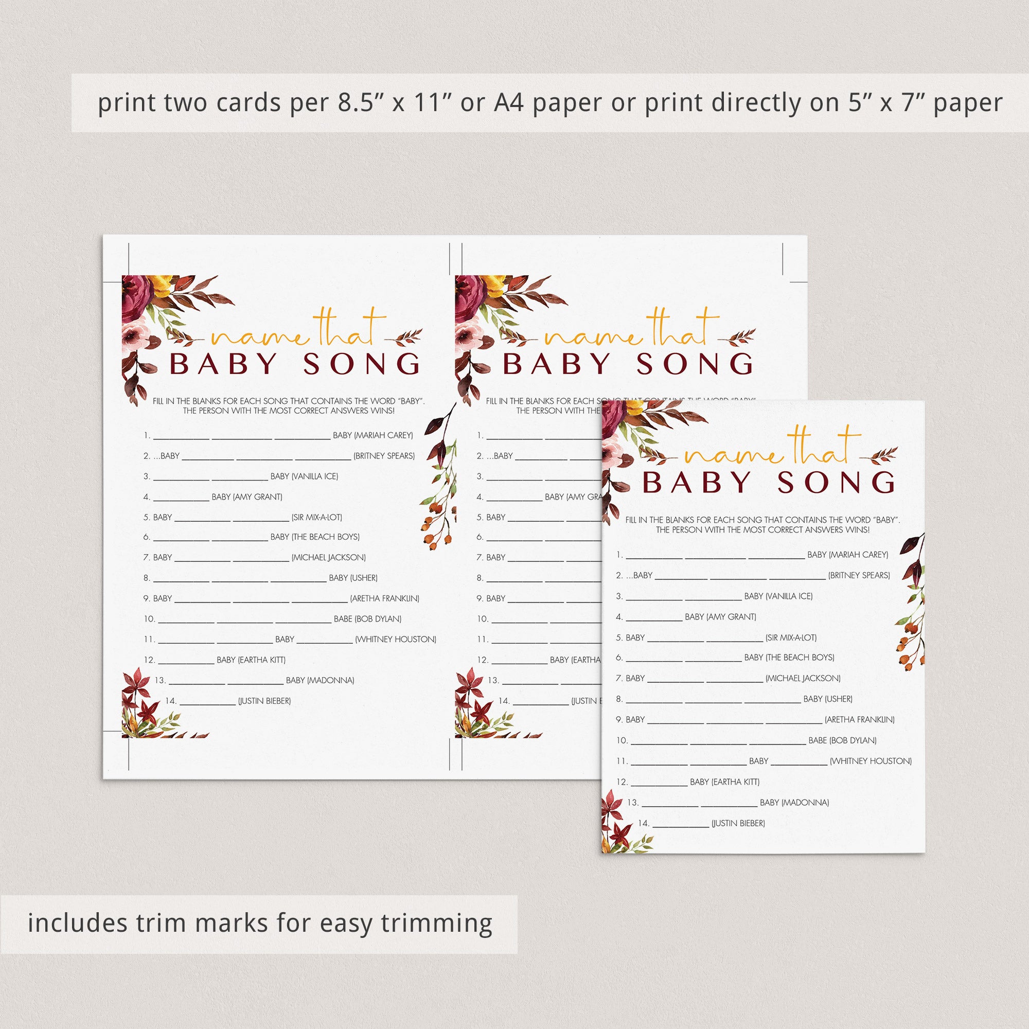 Print the games right from your computer in a matter of minutes or have the baby shower cards printed at your favorite print shop. We recommend printing on a nice heavy card stock for highest quality feel.