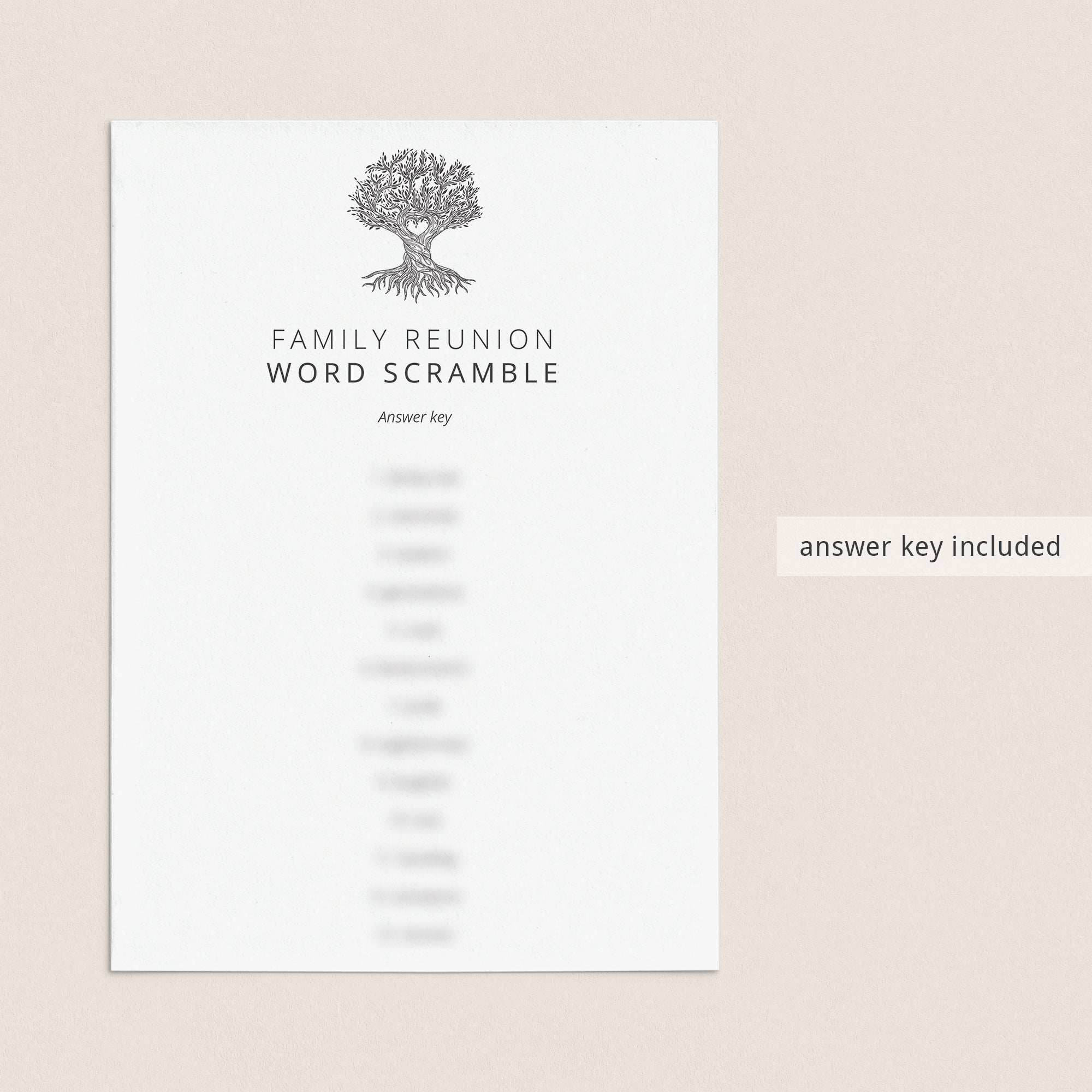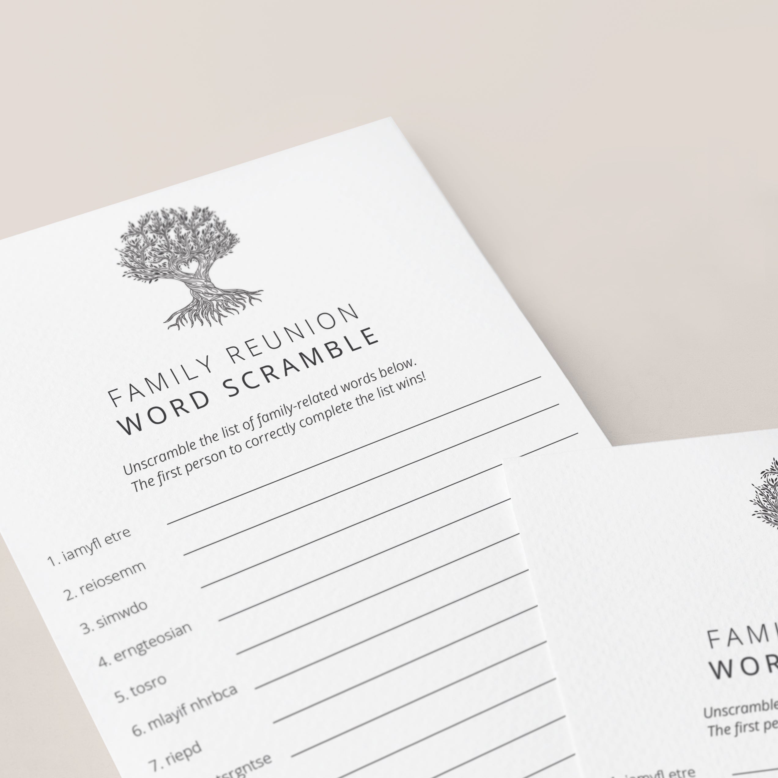 Play one of the most popular party games with this Family Reunion Word Scramble game. The black and white minimalist game will fit any family reunion theme. It will create a fun and enjoyable moment for kids and adults of all ages.