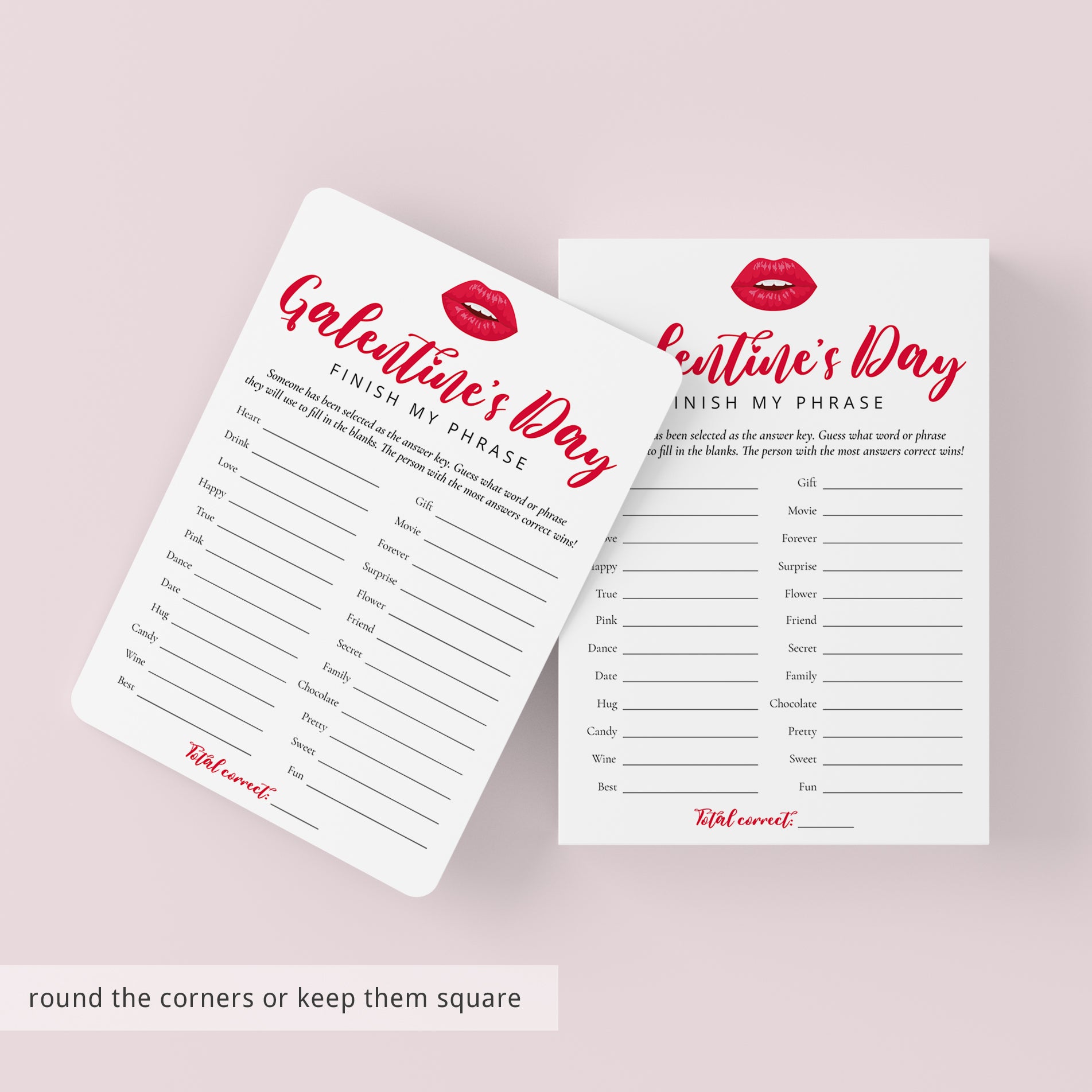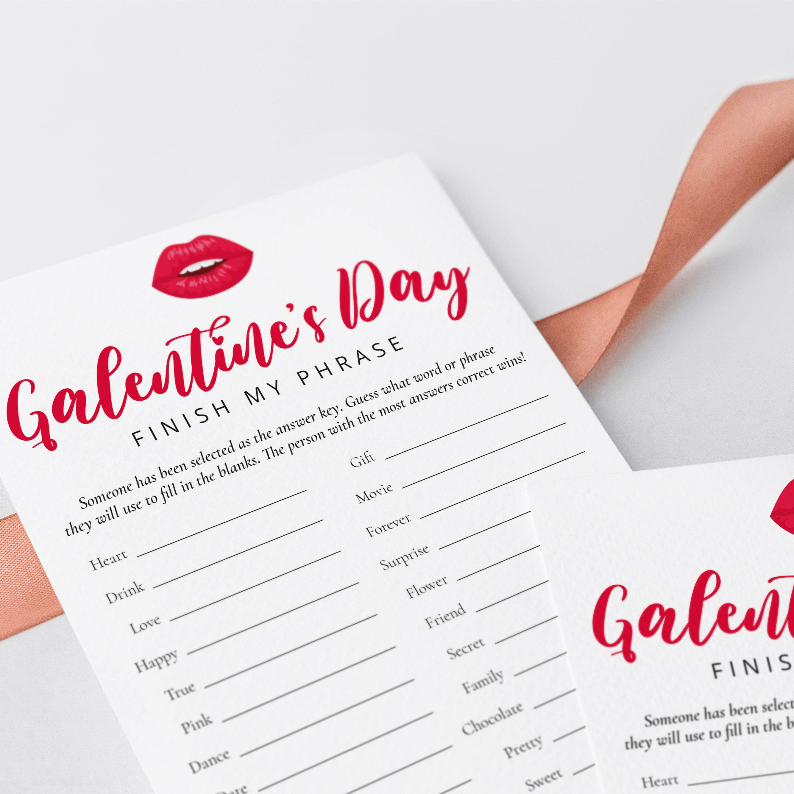 Finish That Phrase is a great game to kick off your your Galentine's Day. It is a fun Galentine's activity and very easy to play. This game card with red lips will definitely get everyone excited.