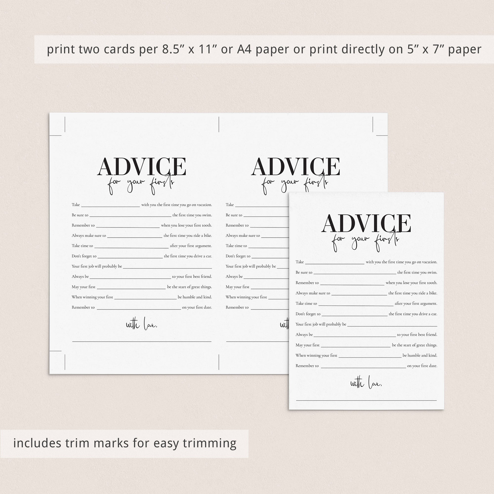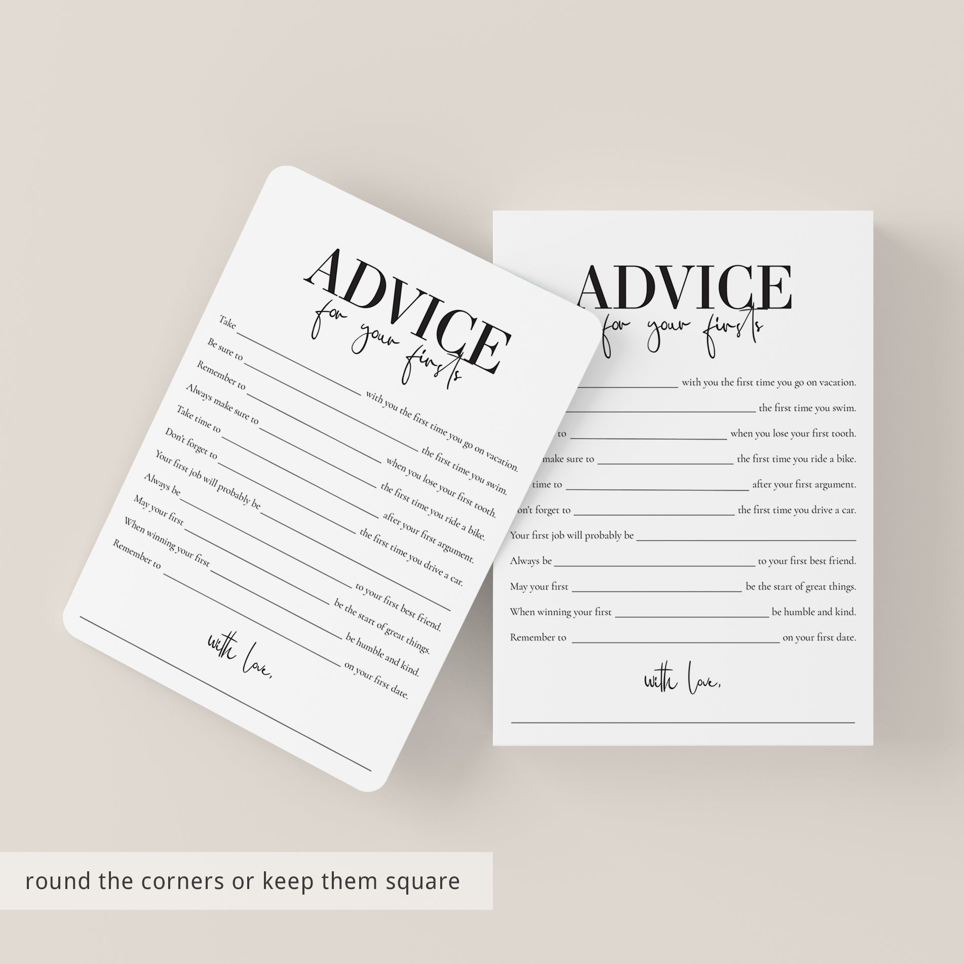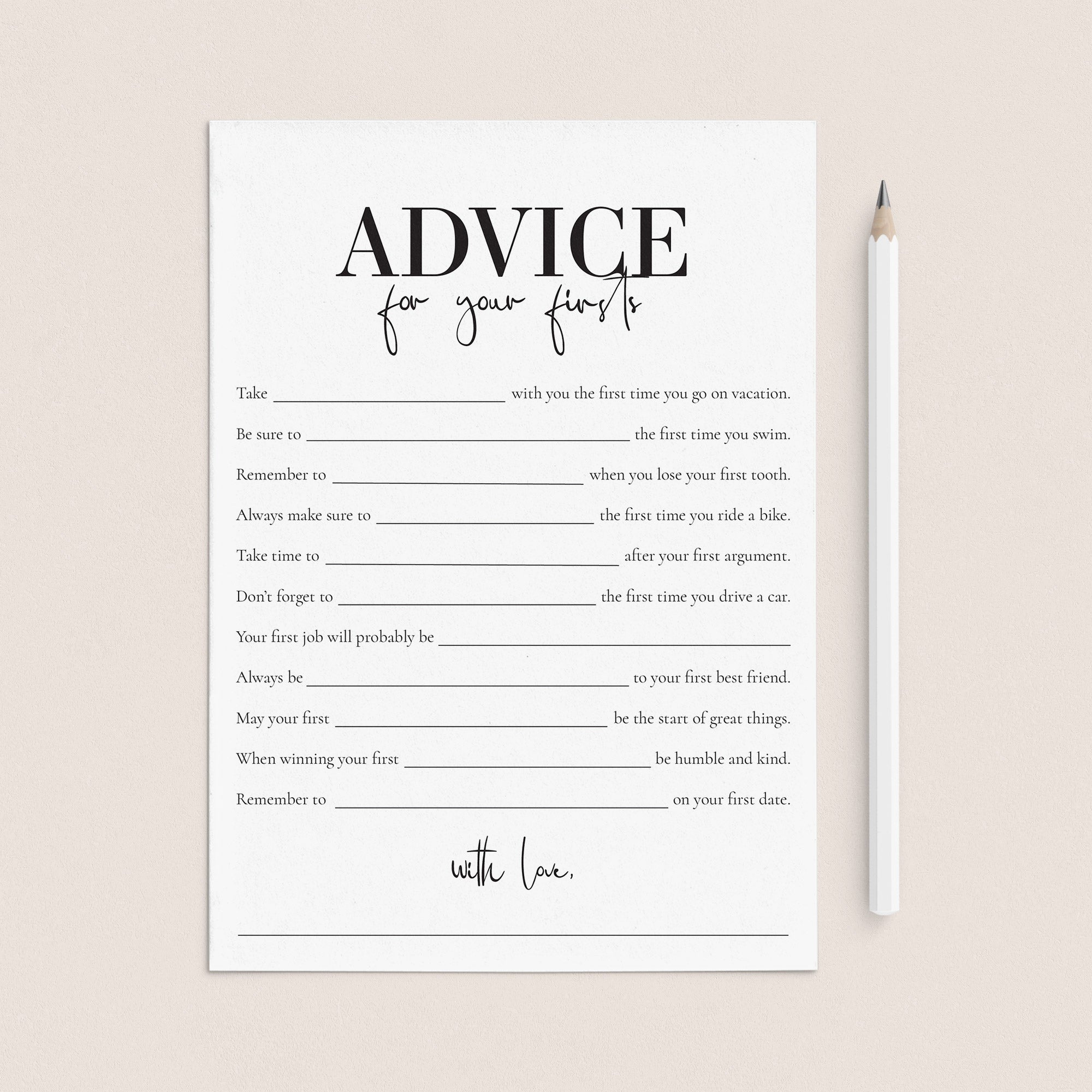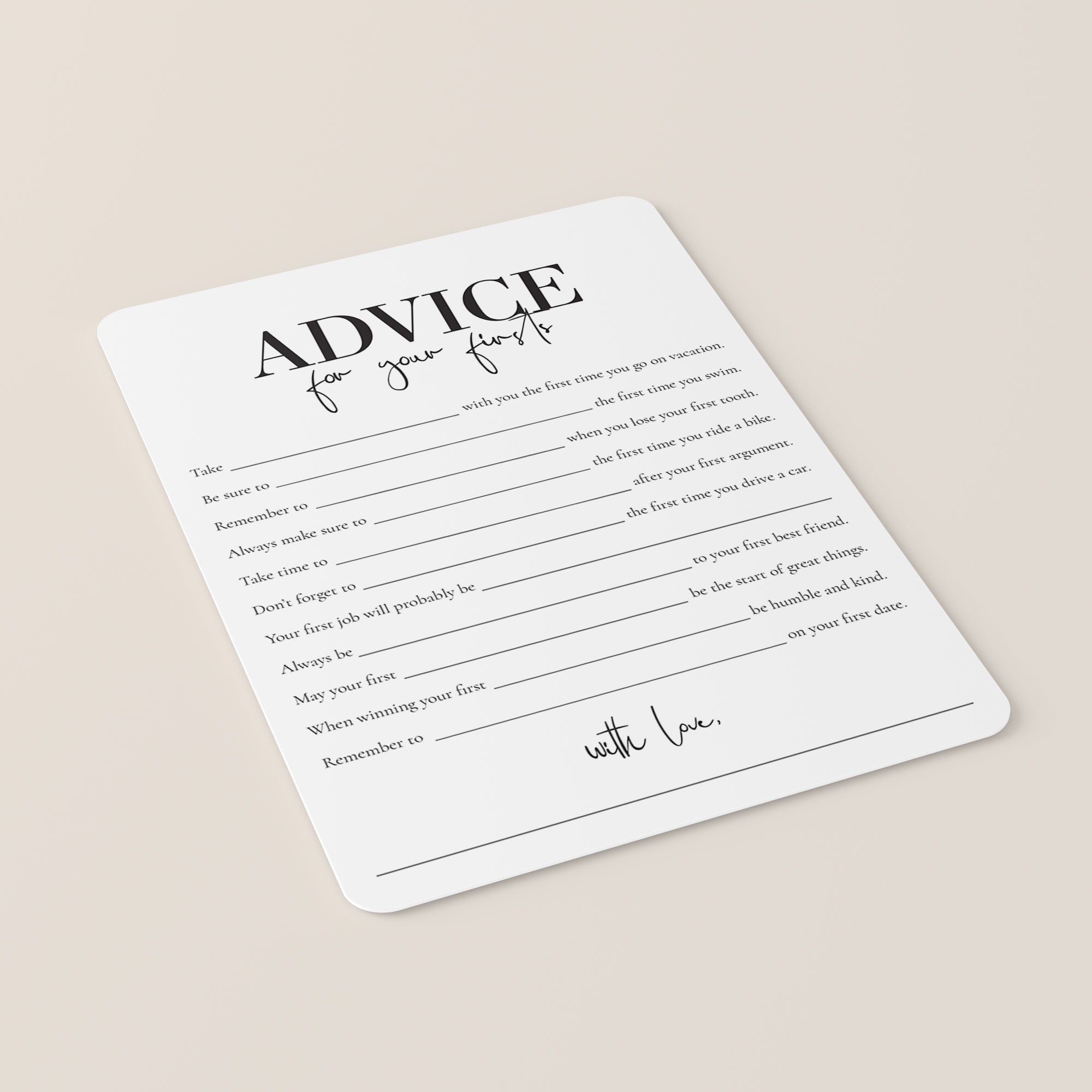 Are you looking for a meaningful keepsake for your baby's first birthday party? Let every guest write down their advice for your baby's firsts. This modern minimal black and white first birthday advice card s the perfect addition to your baby's first birthday party.