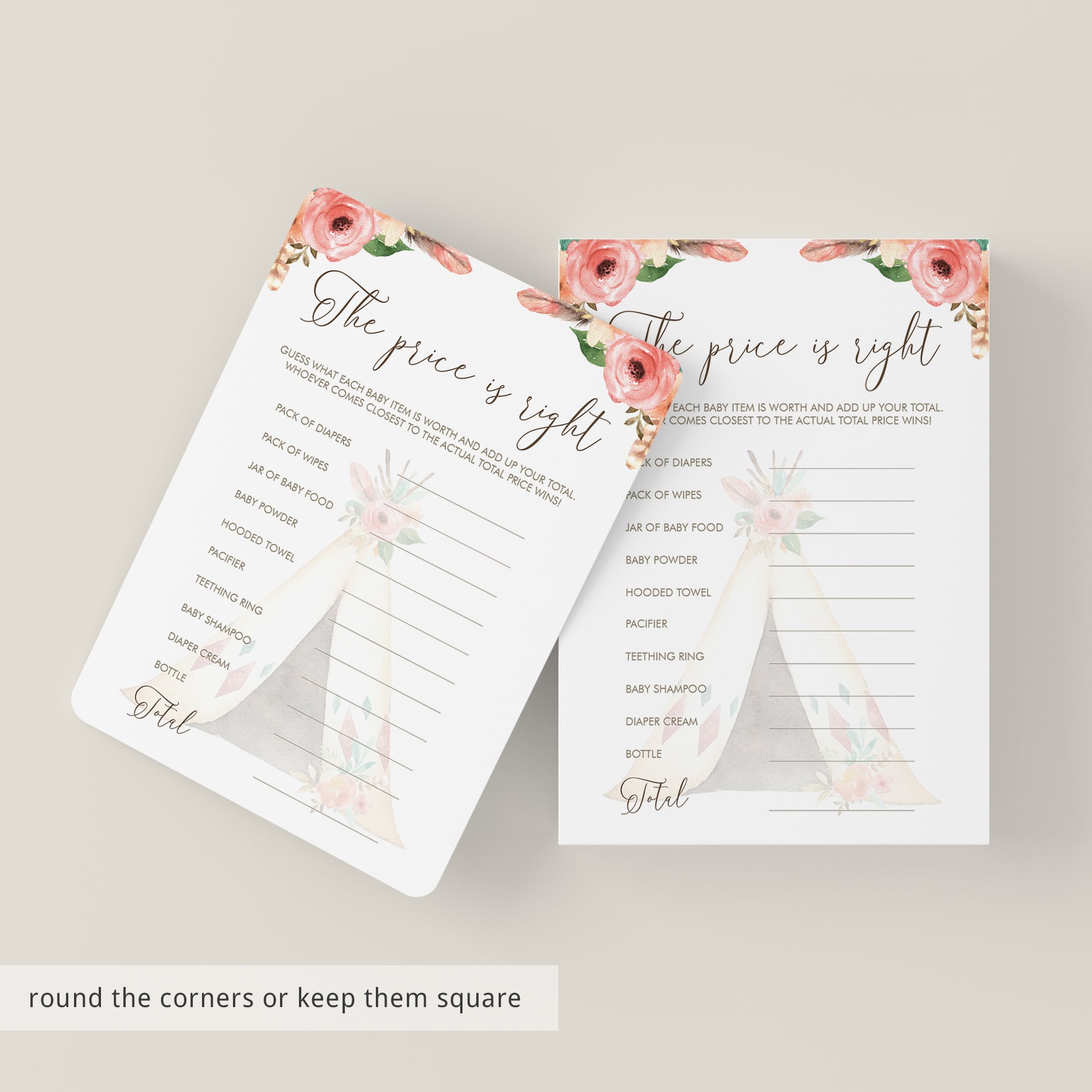 Floral Teepee BabyShower The Price is Right Printable by LittleSizzle