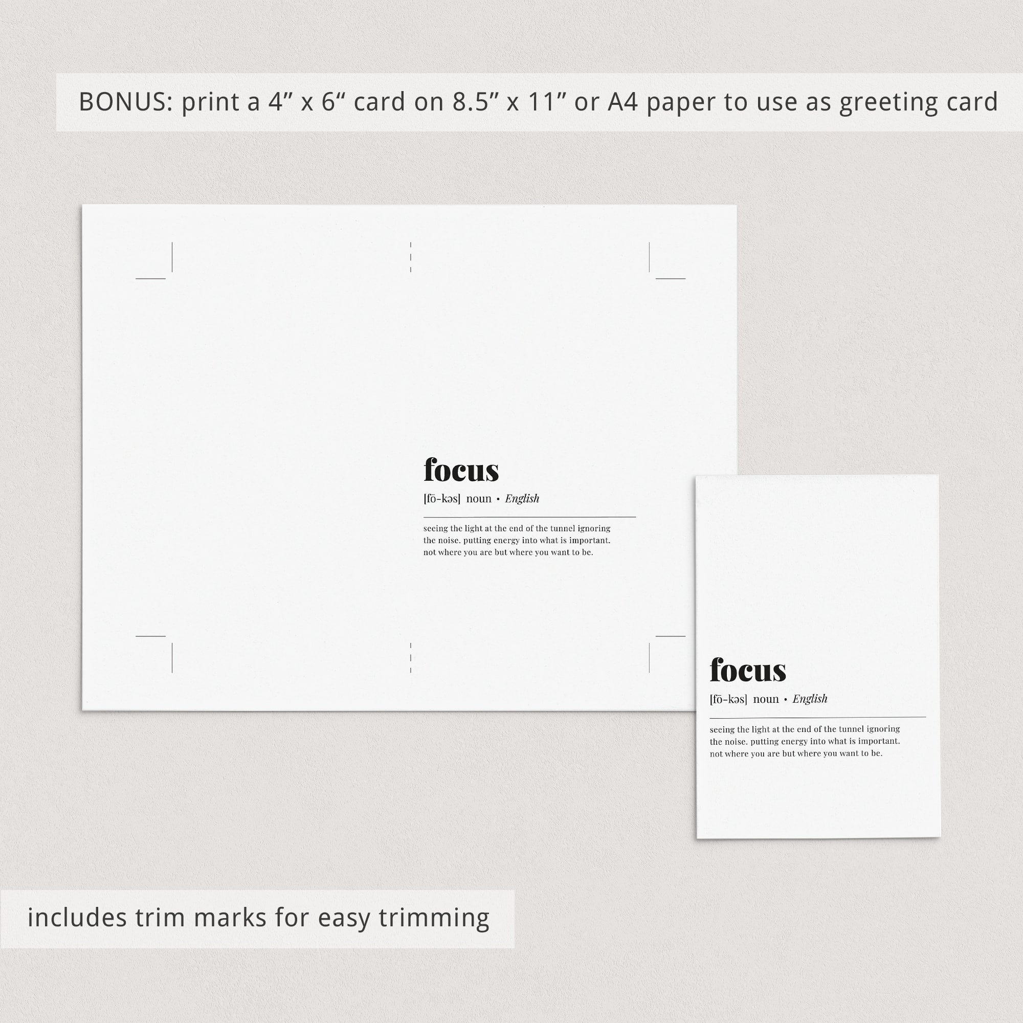 Are you looking for some motivational wall art for your home office, dorm or classroom? Look no further! This modern minimalist focus definition print is designed to motivate and encourage you. The focus poster is sure to add a motivational reminder to any space.