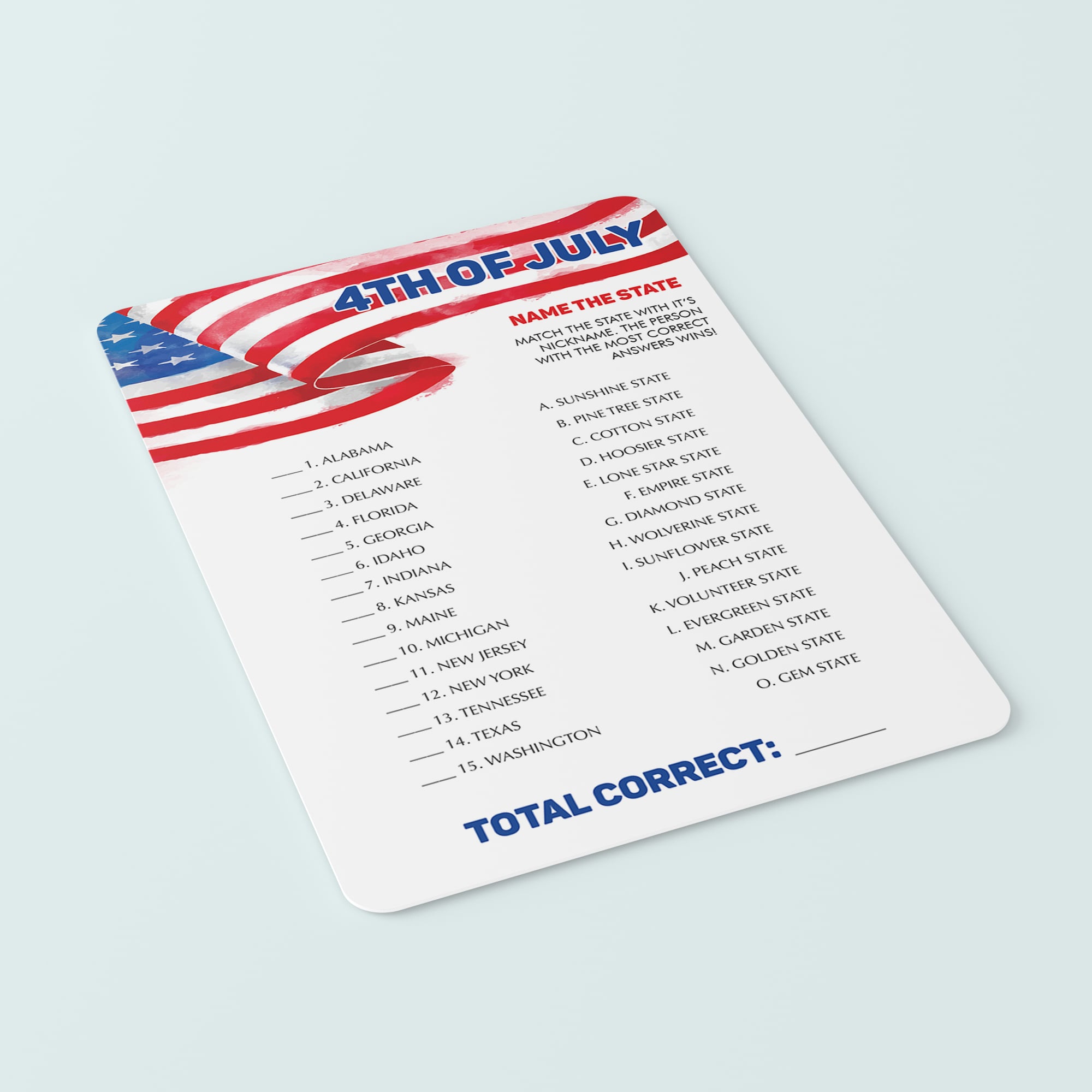 Fourth of July Name The State Game: