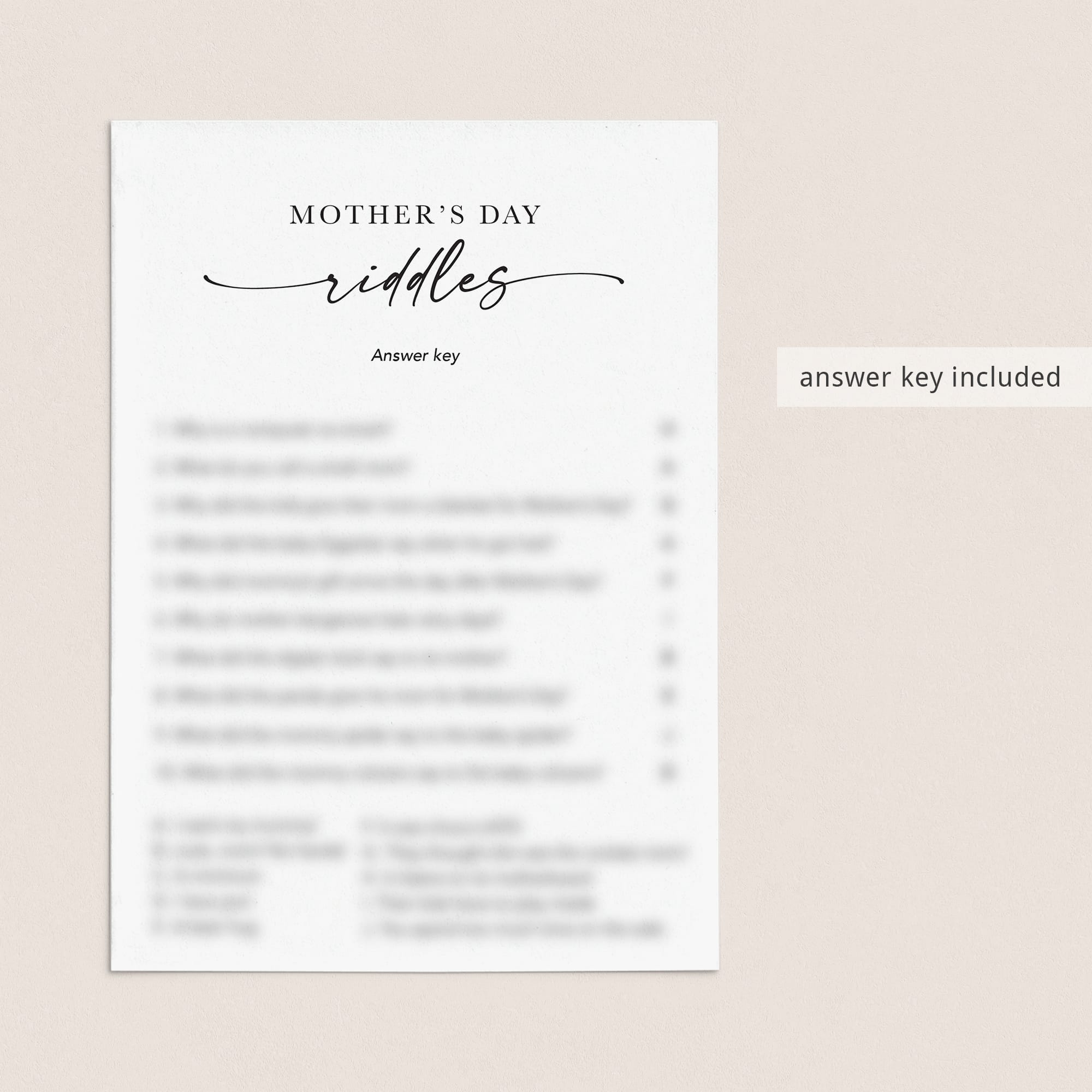 Just in case you have trouble figuring out the right answers to the Mother's Day Riddles, the answer key is included.