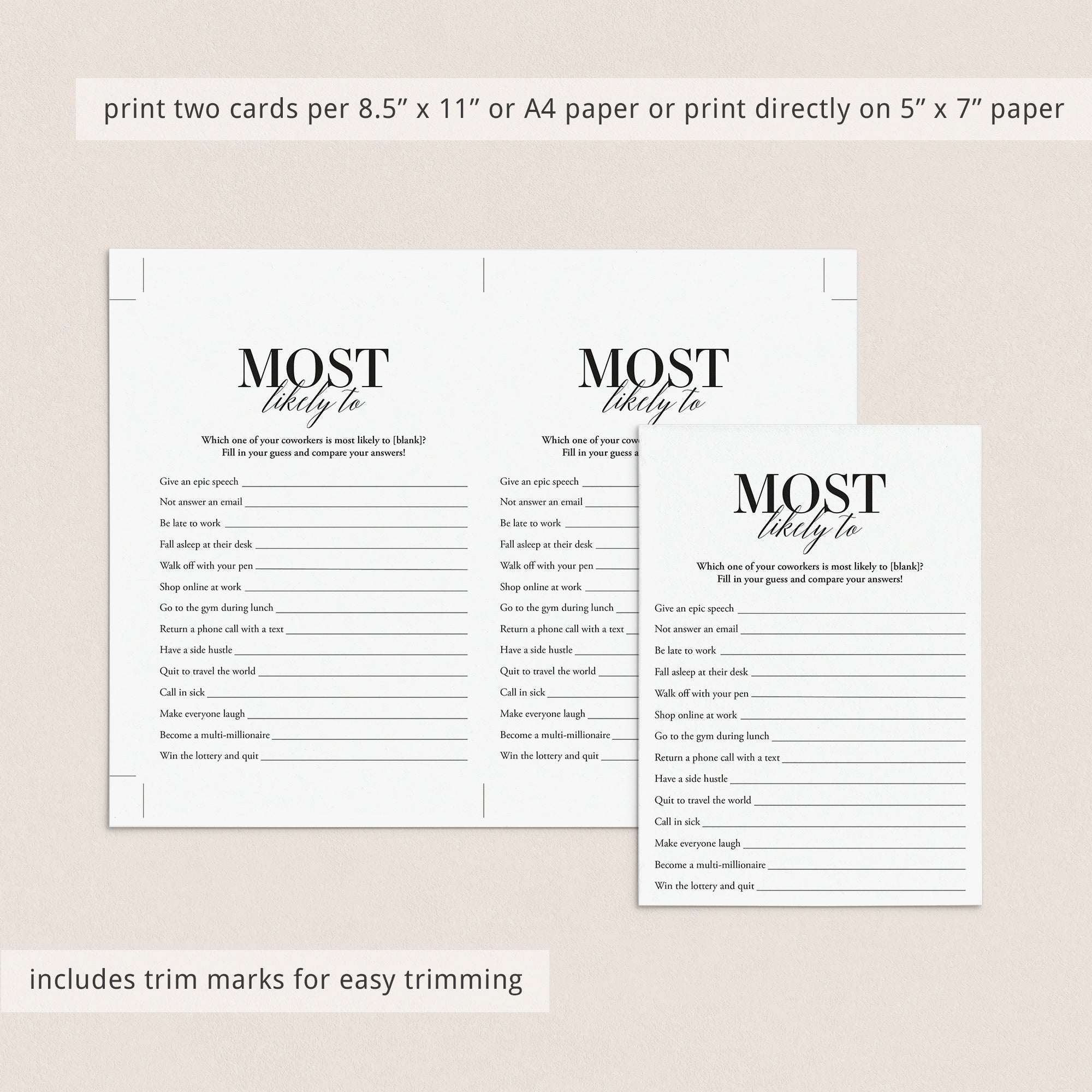 Funny Office Most Likely To Game Printable by LittleSizzle