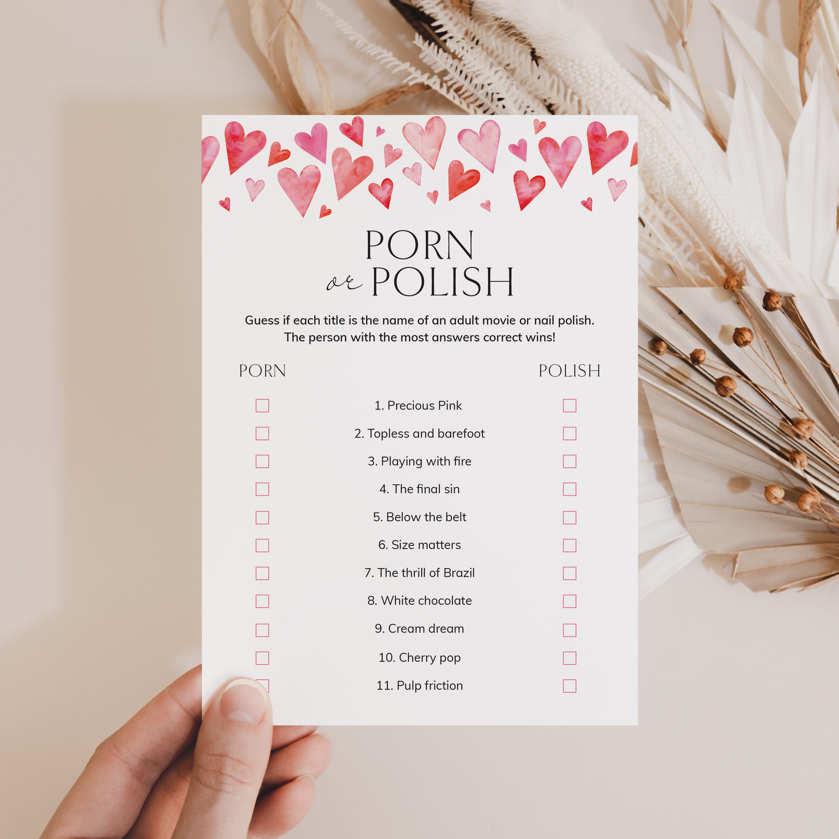 Are you looking for a fun Galentines game to play with your girlfriends? Play Porn or Polish! It is a hilarious addition to your ladies night. You'll have your girls laughing in no time.