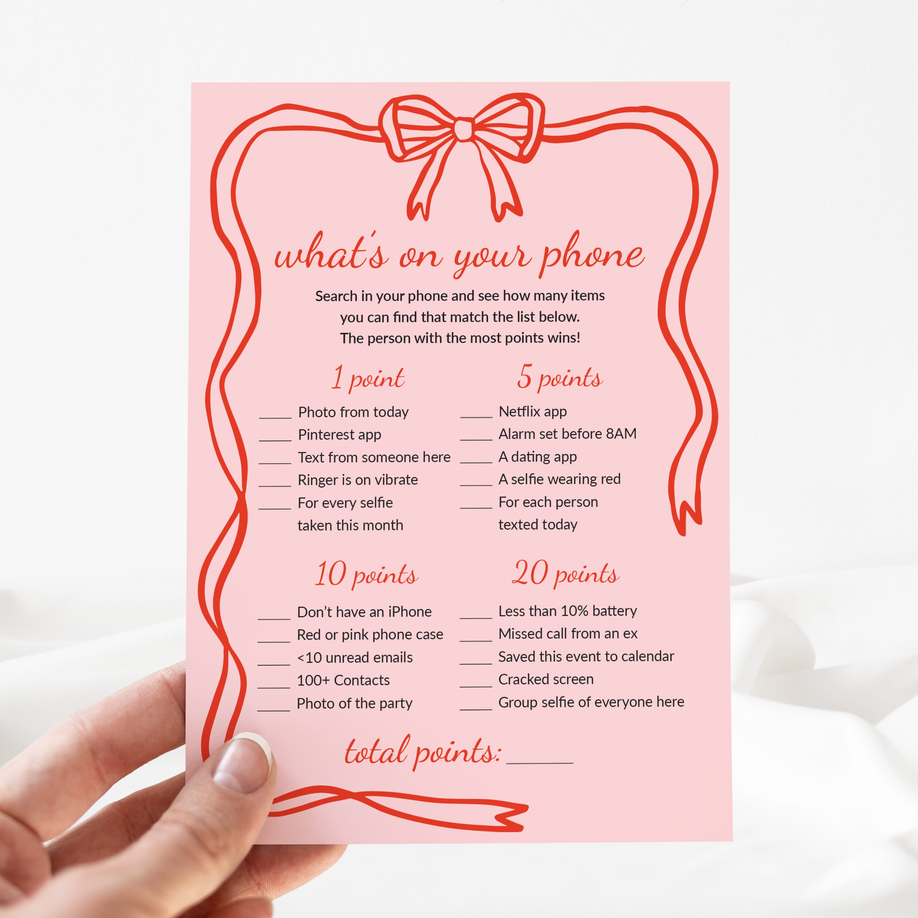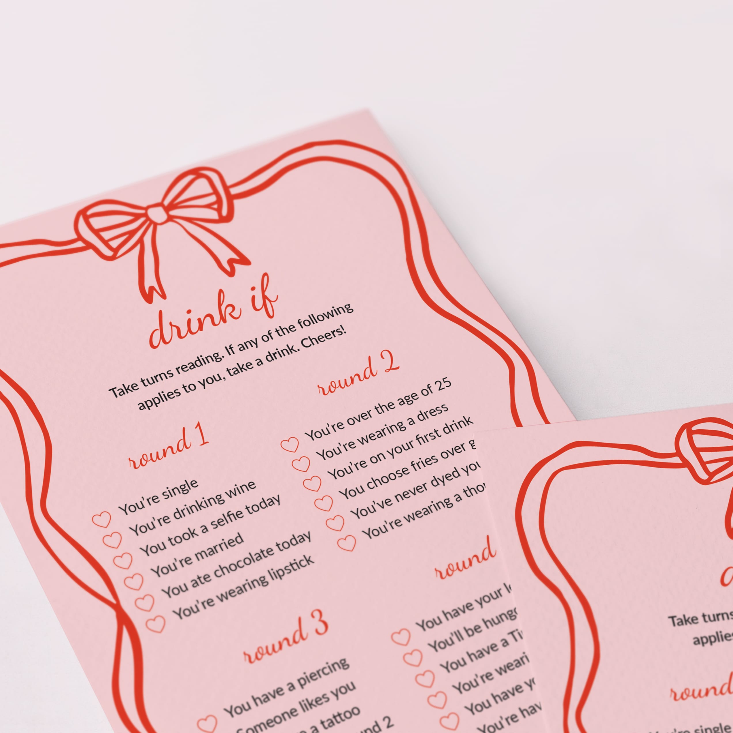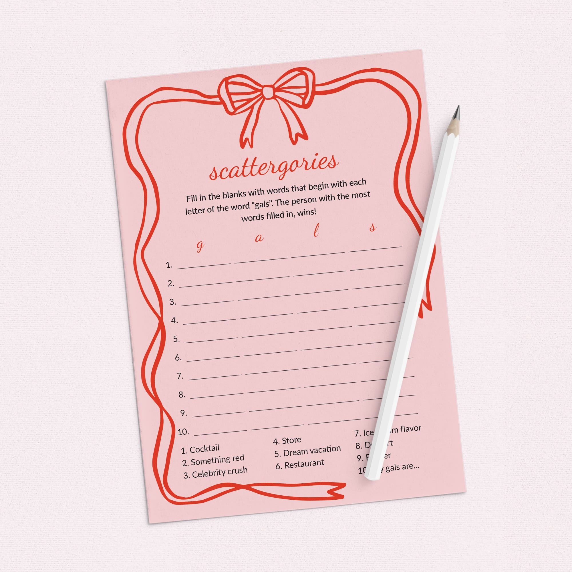 Girls, get ready to turn your ordinary night into an extraordinary soirée with these printable Girls Night games! These games, featuring a playful pink background, red text, and a cute wavy border topped with a bow, are the secret ingredient to ensuring your girls night is filled with laughter, bonding and unforgettable moments.