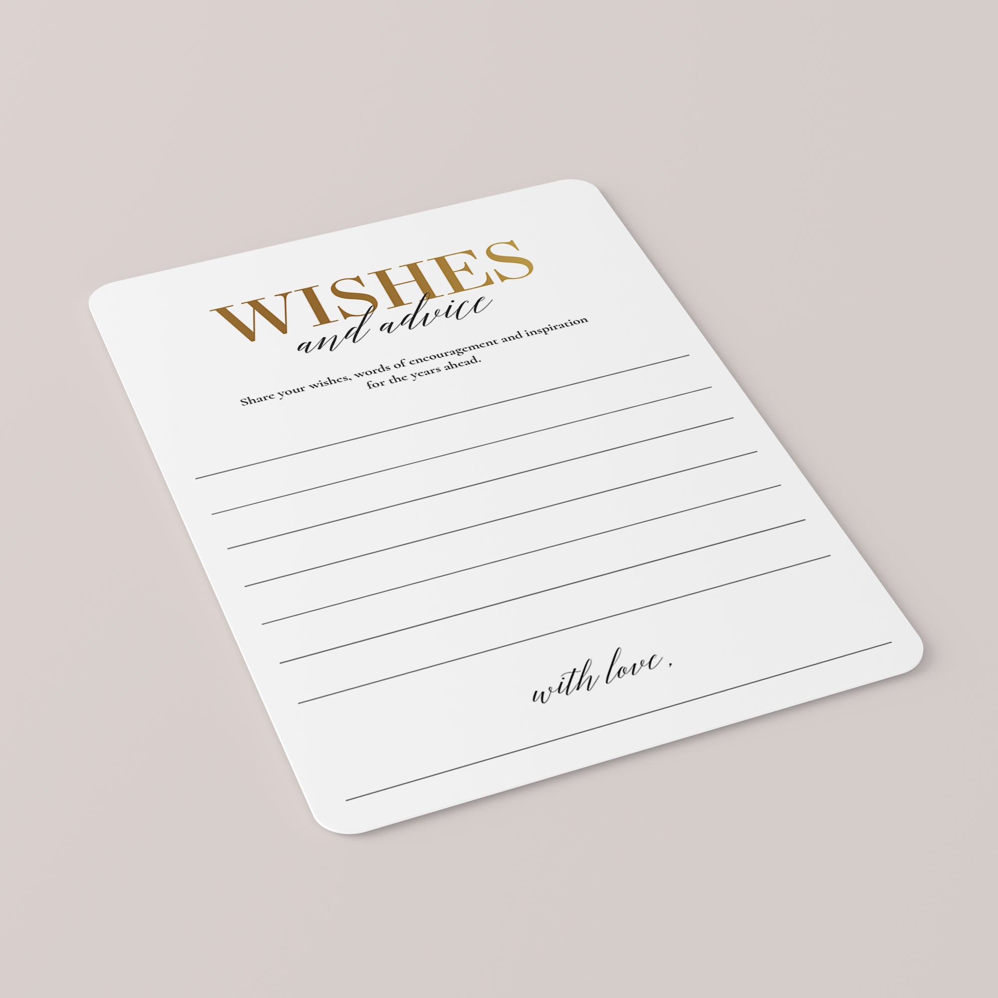 Create an amazing keepsake for the anniversary couple with these golden Wishes and Advice cards. Let every guest write down their wishes, words or encouragement and inspiration for the years ahead. It's the perfect addition to a 50th anniversary party.