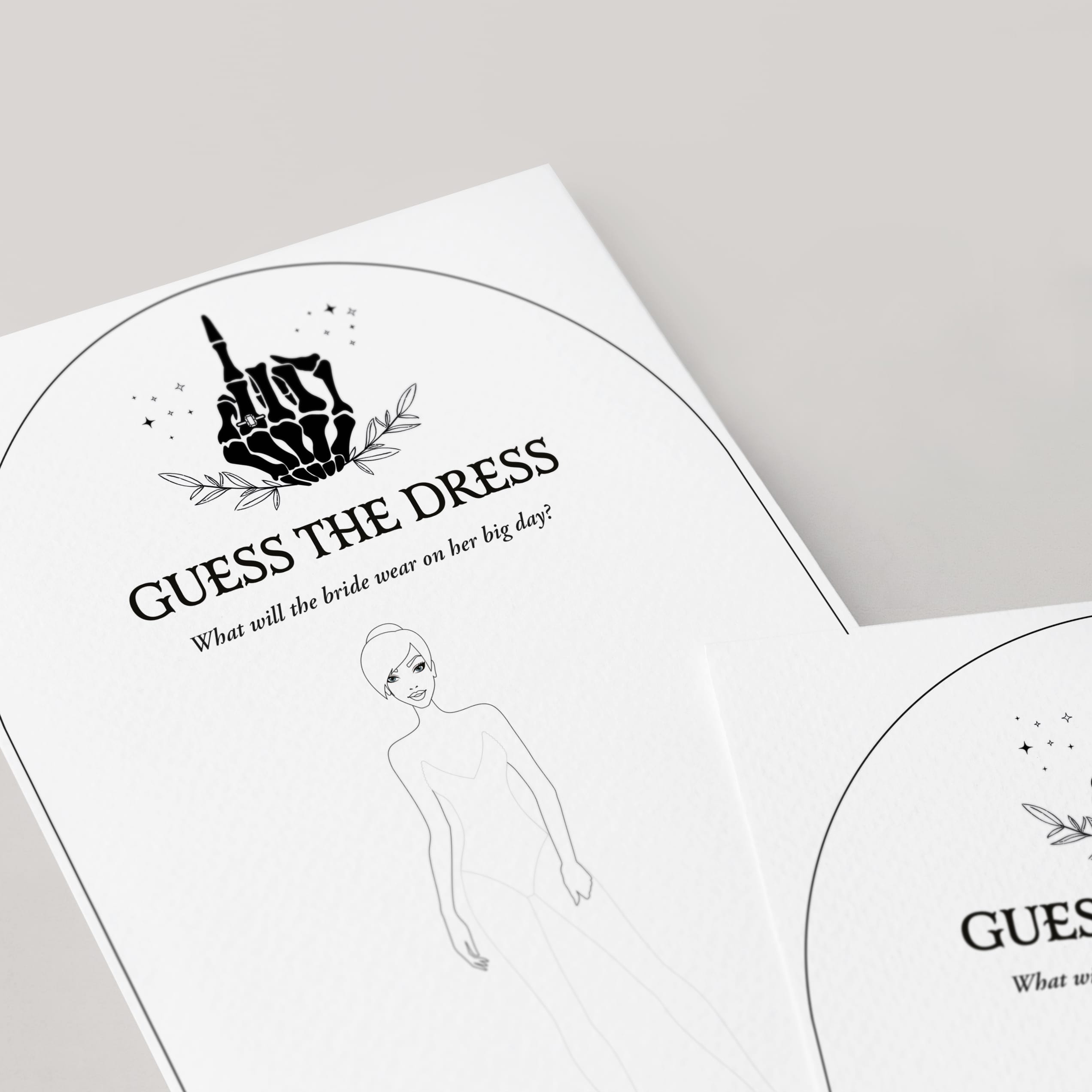 Are you looking for a creative activity for your Goth Bridal Shower? Play Guess The Dress with these Bride or Die theme skeleton game cards. This game card is the perfect addition to any spooky bridal shower and it's sure to be a hit at your party!