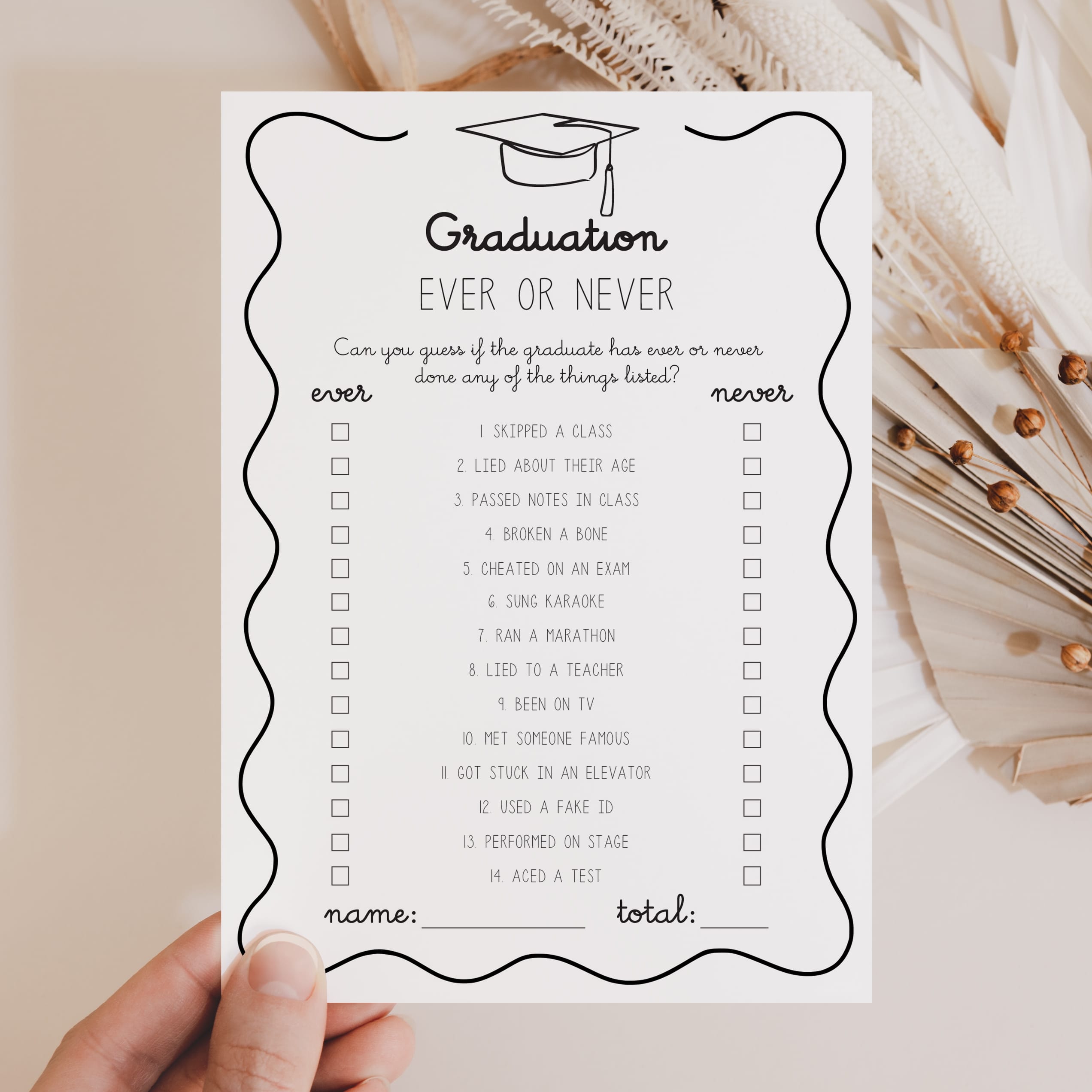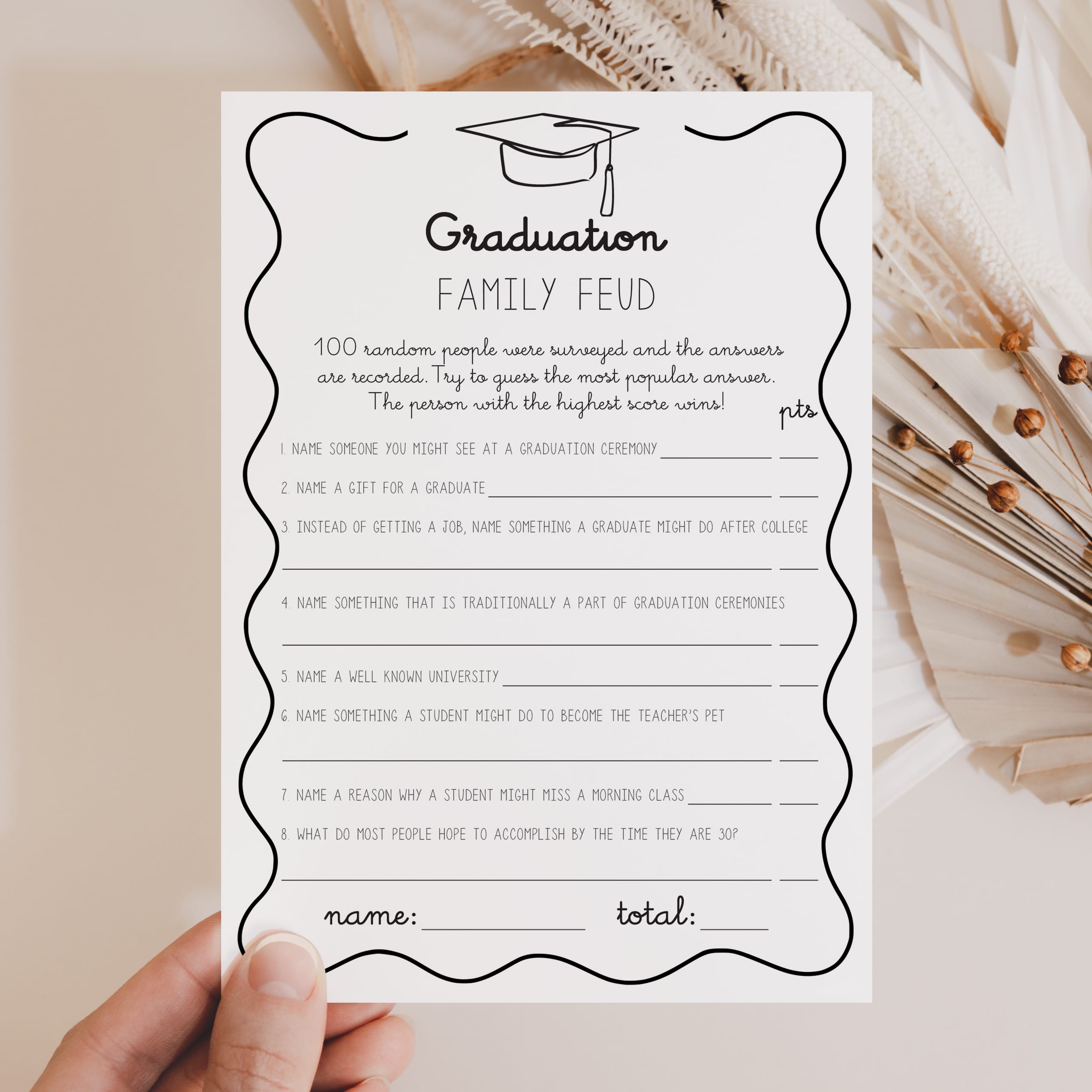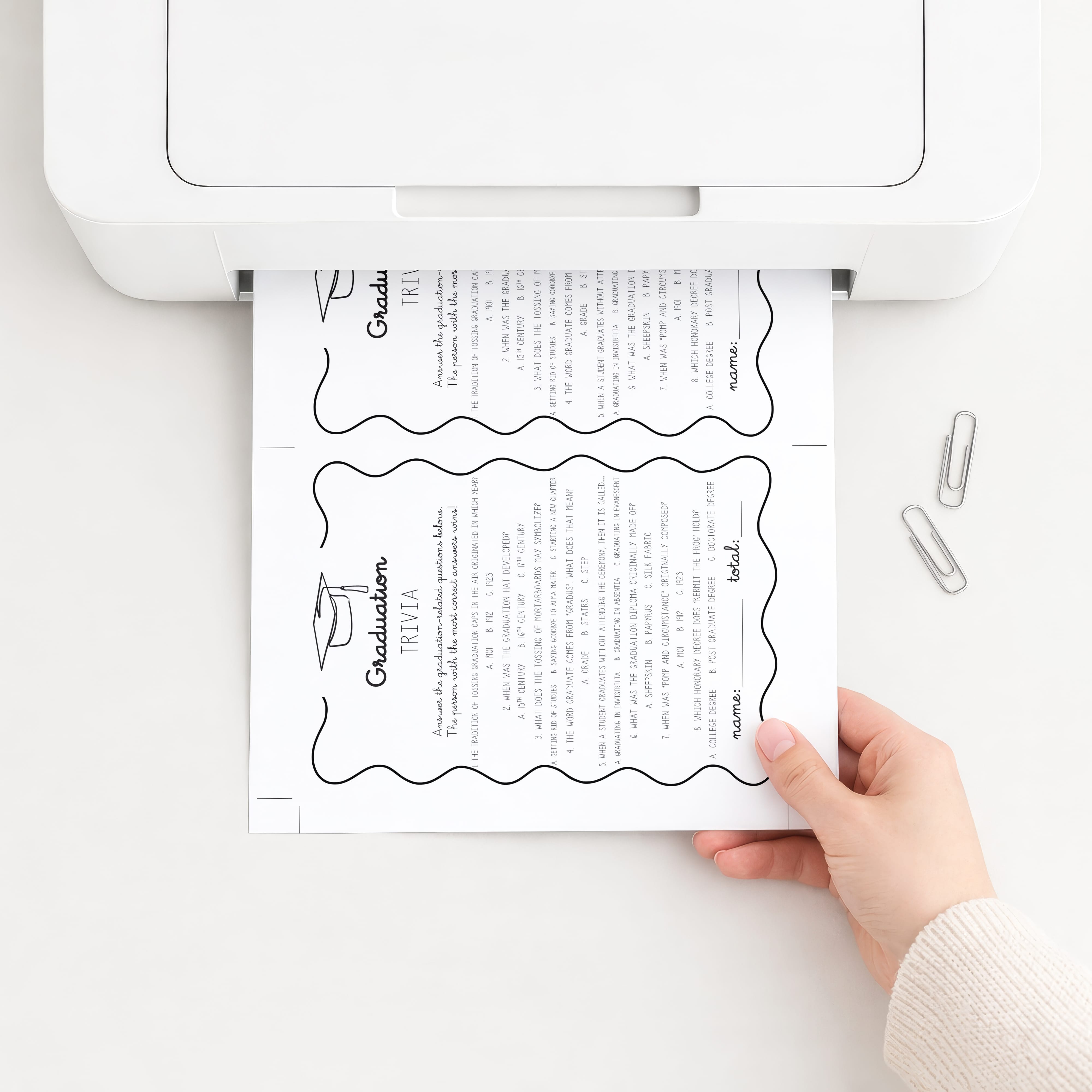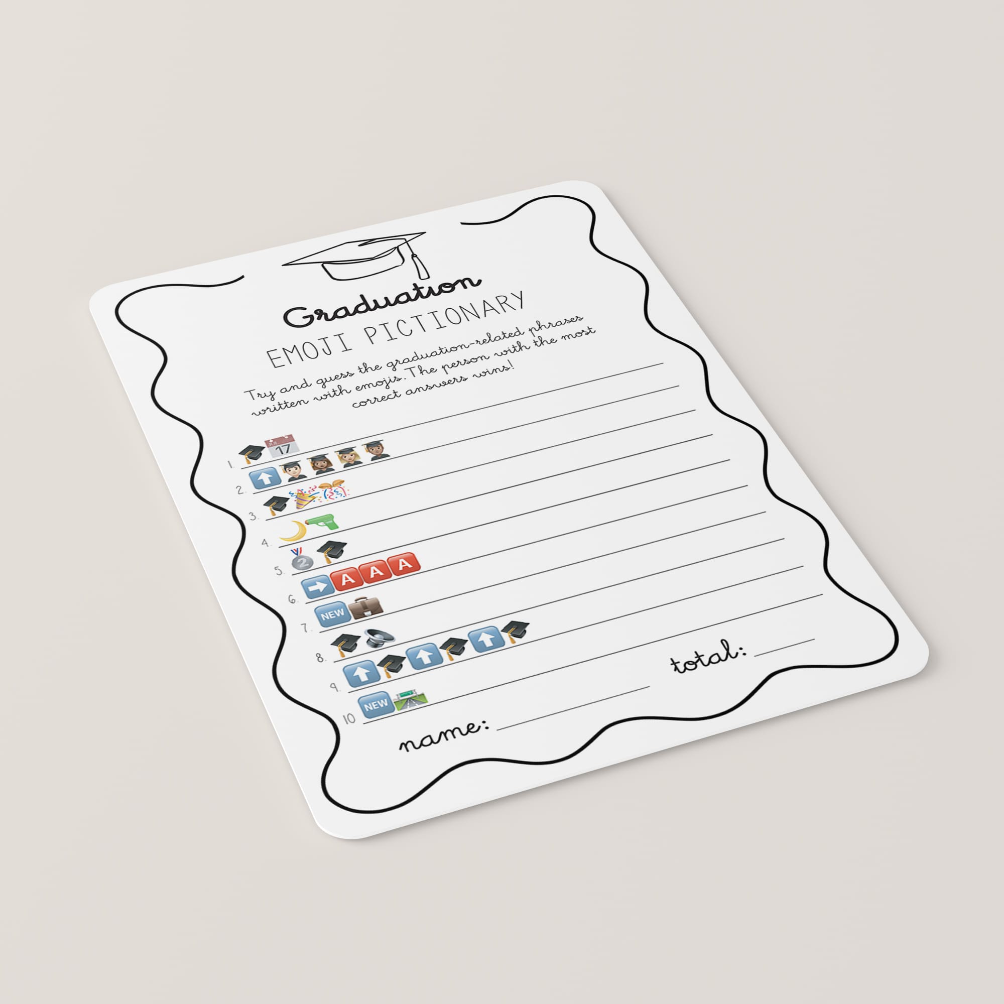 Celebrate your grad in style with this fun Graduation Party Games Bundle! Featuring a playful wavy border and a minimalist graduation cap, these black-and-white games are perfect for graduates of all ages.