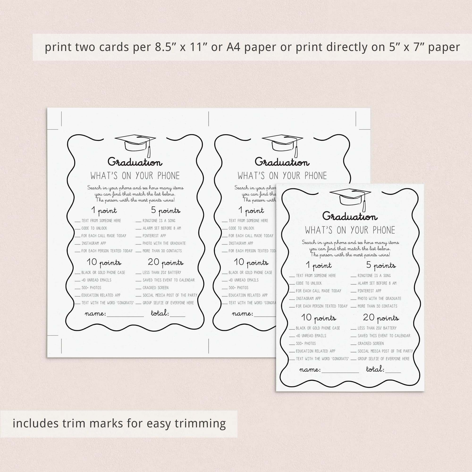 This huge wavy border graduation party games bundle includes the following 12 games: