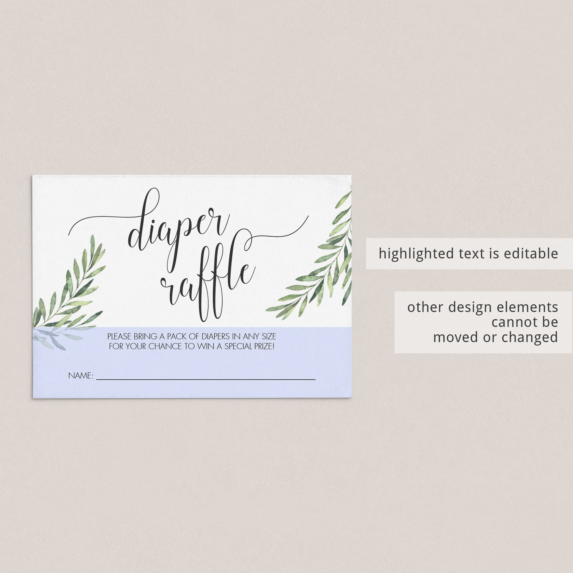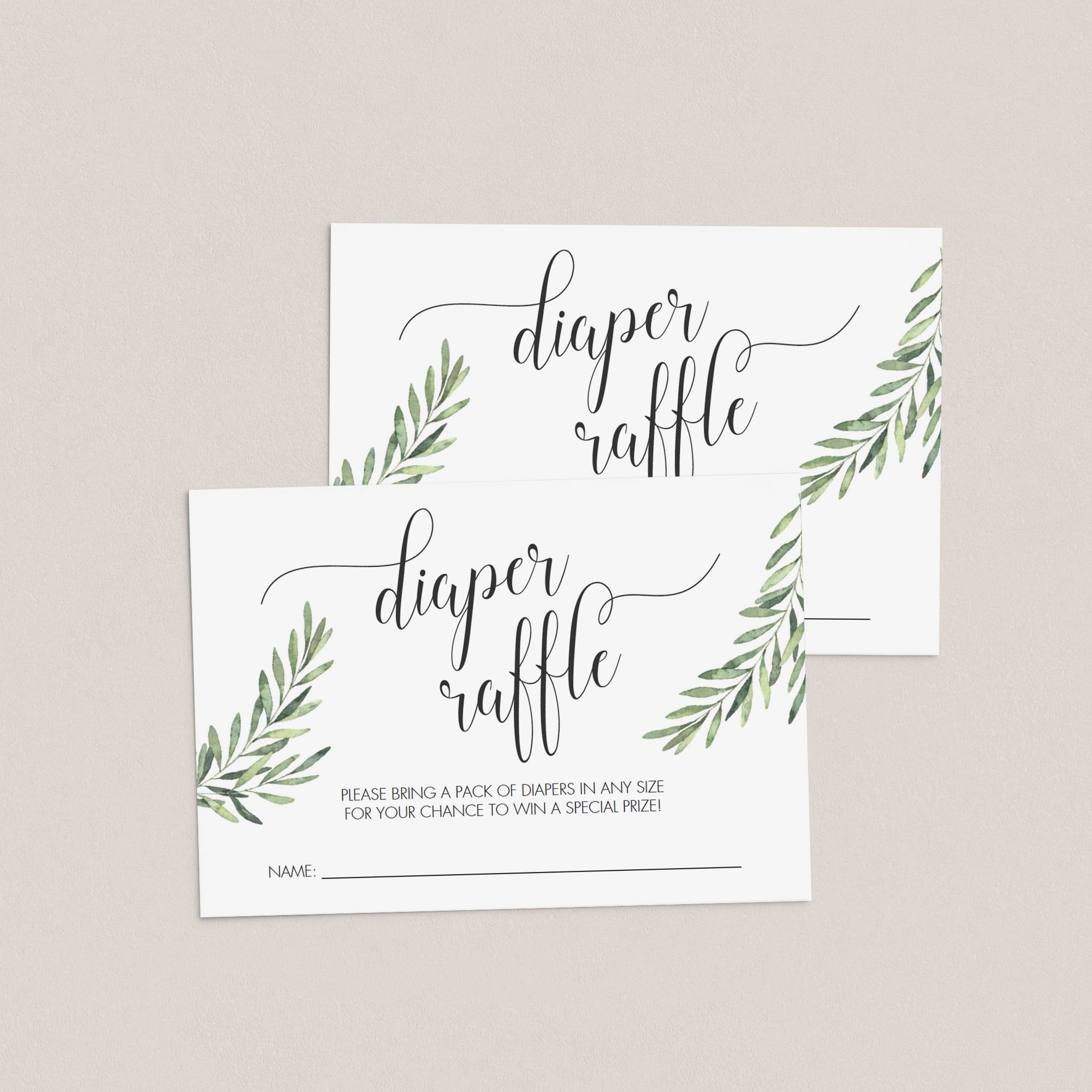 Greenery Baby Shower Game Editable Diaper Raffle Cards by LittleSizzle