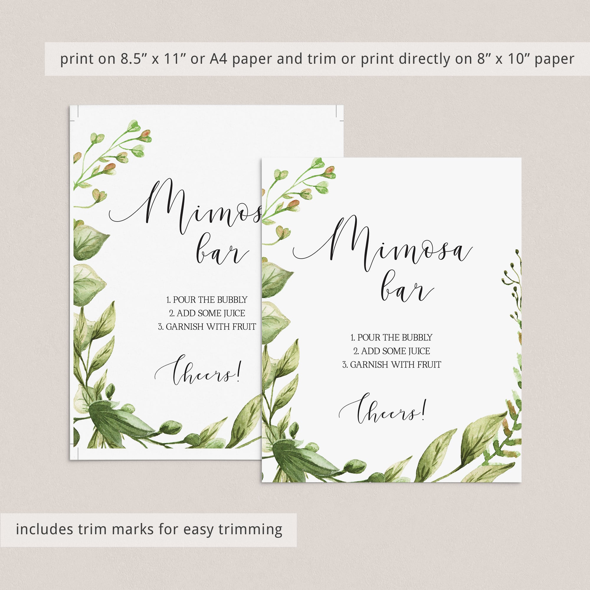 For the Cards and Gifts sign, Favors sign and Mimosa Bar sign, each: