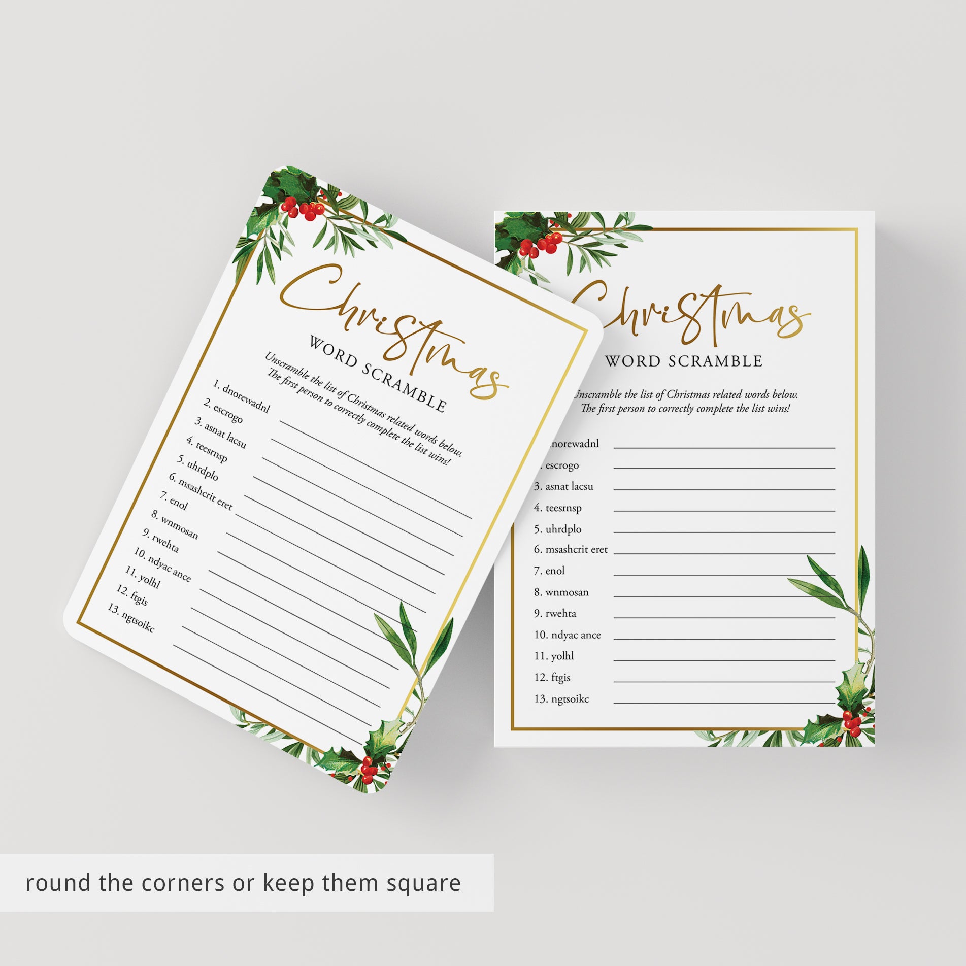 This greenery Christmas word scramble is an instant download. After purchase you will receive a download link immediately on screen. Also within minutes of your order and payment, an e-mail will be sent to you with a link for your download.