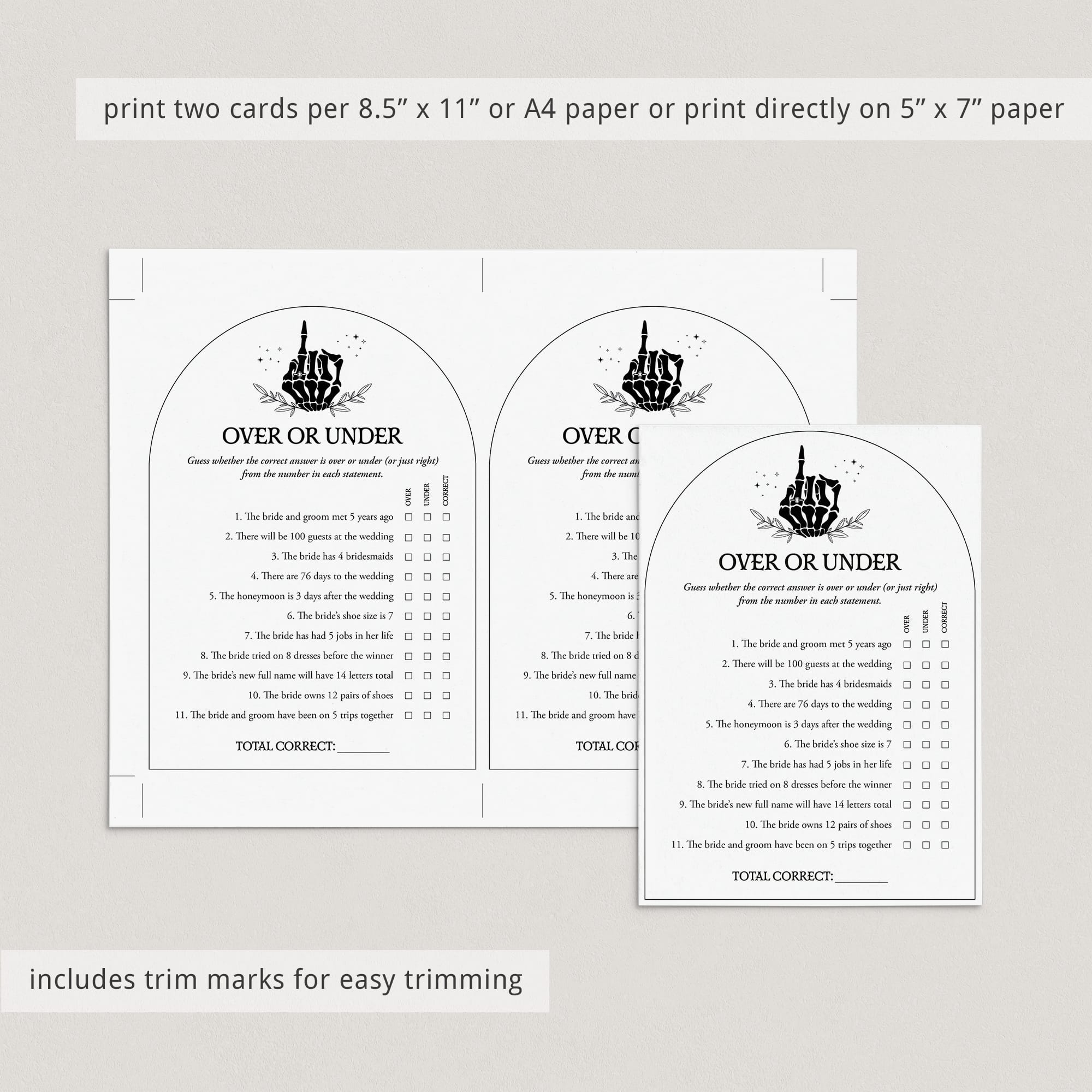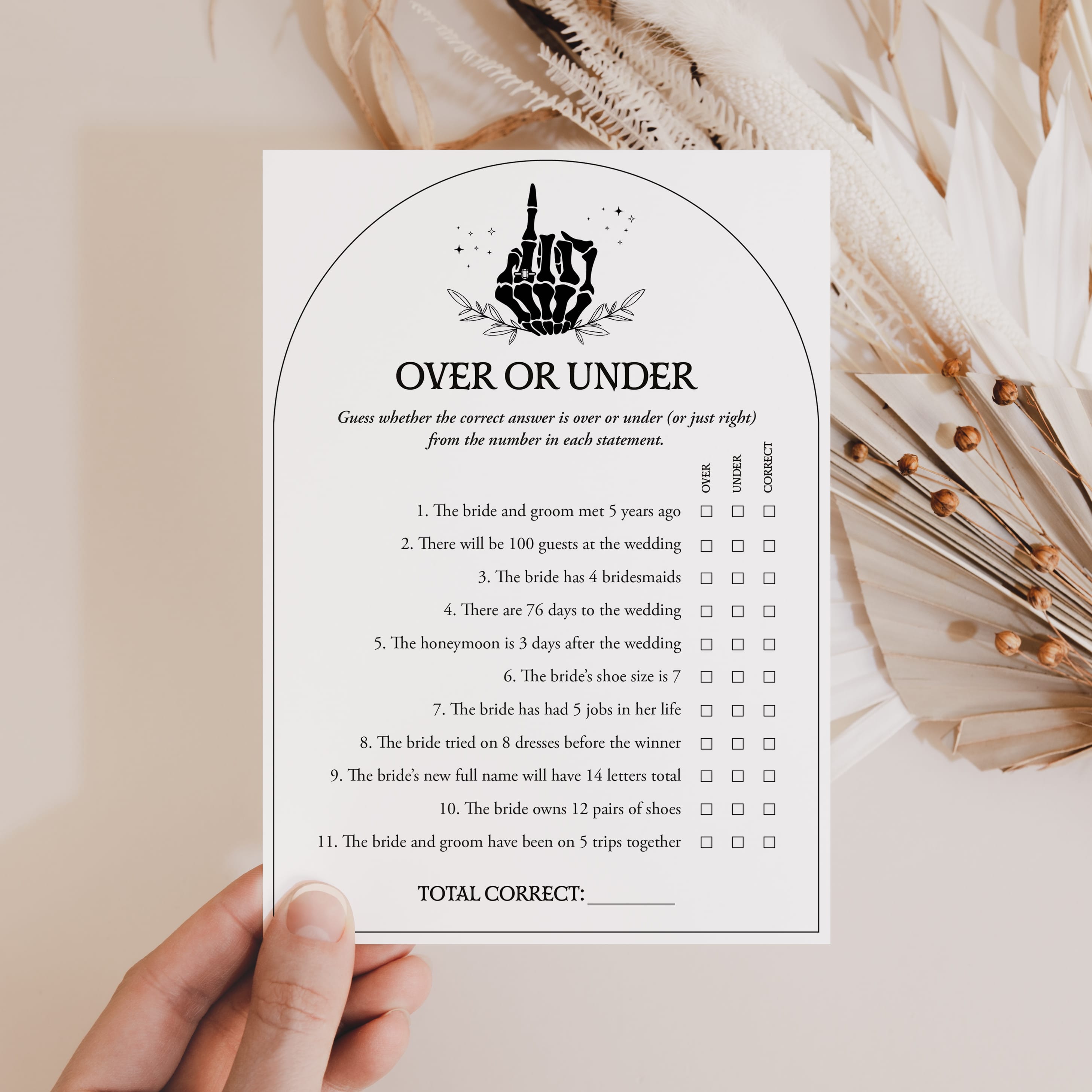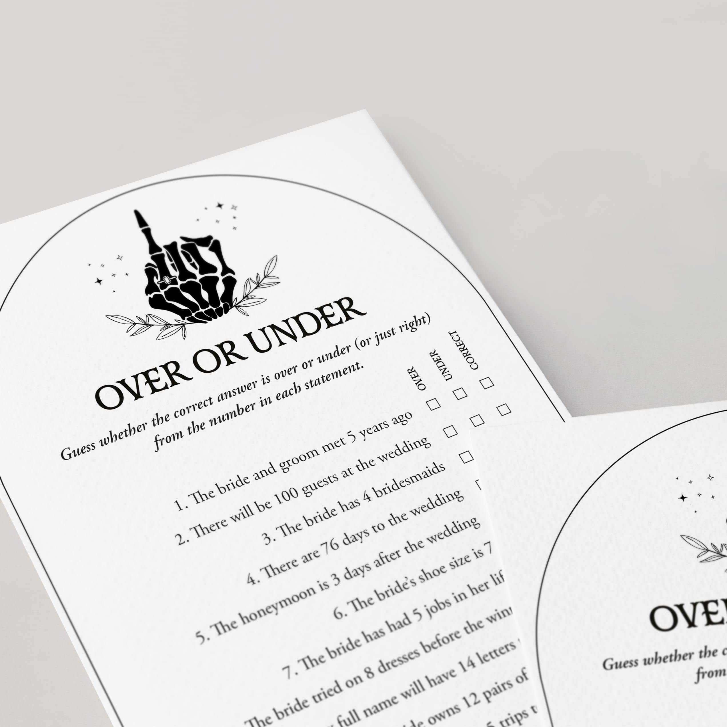 Are you good with numbers and dates? Find out with this Halloween Wedding Shower Over or Under game. The game is perfect for a Halloween theme wedding or gothic bridal shower.