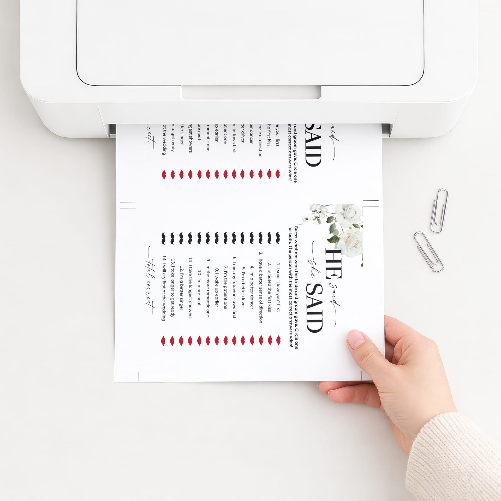 A He Said, She Said game is such a fun way to find out more about the soon-to-be-weds. These elegant floral game cards are the perfect addition to an engagement party or couples wedding shower.