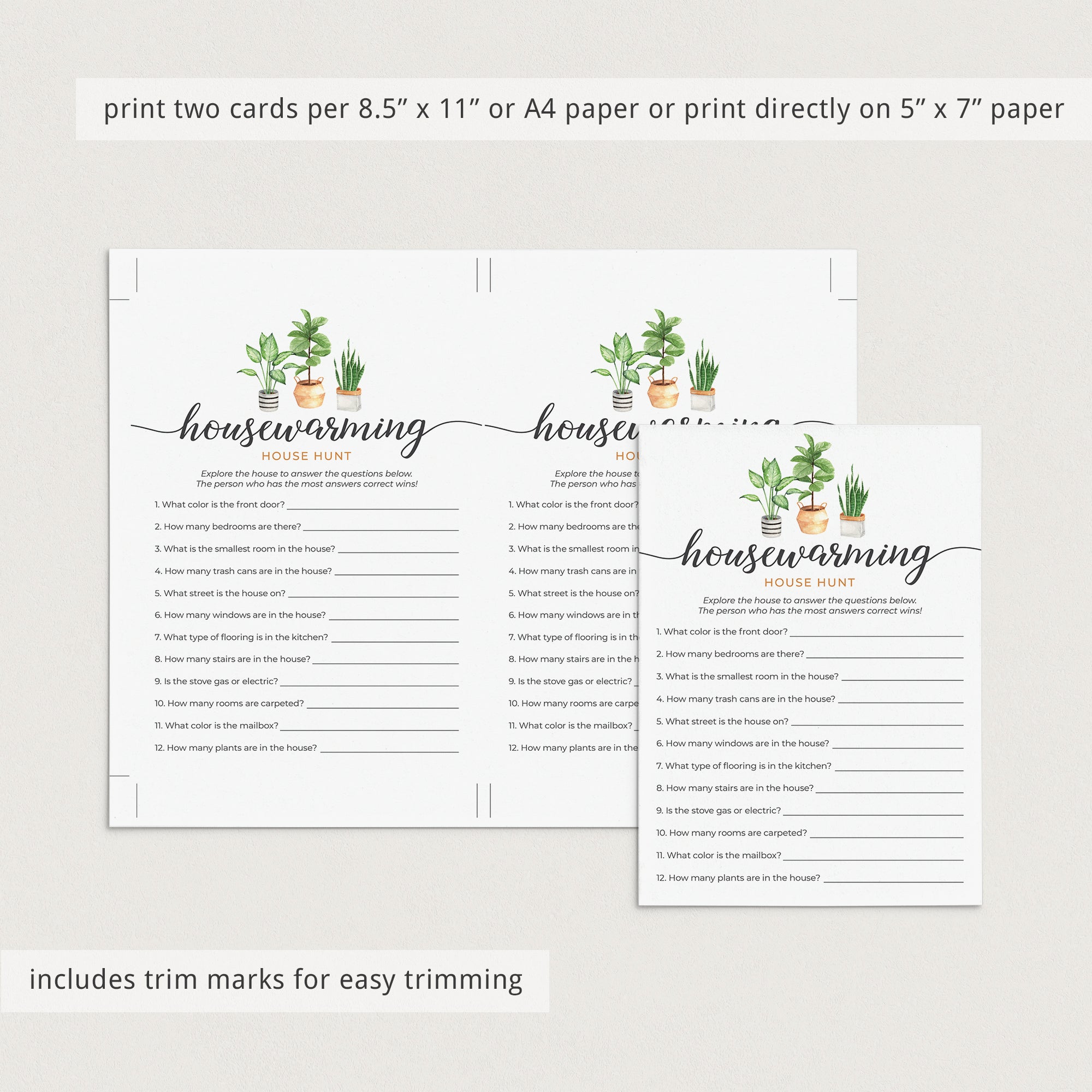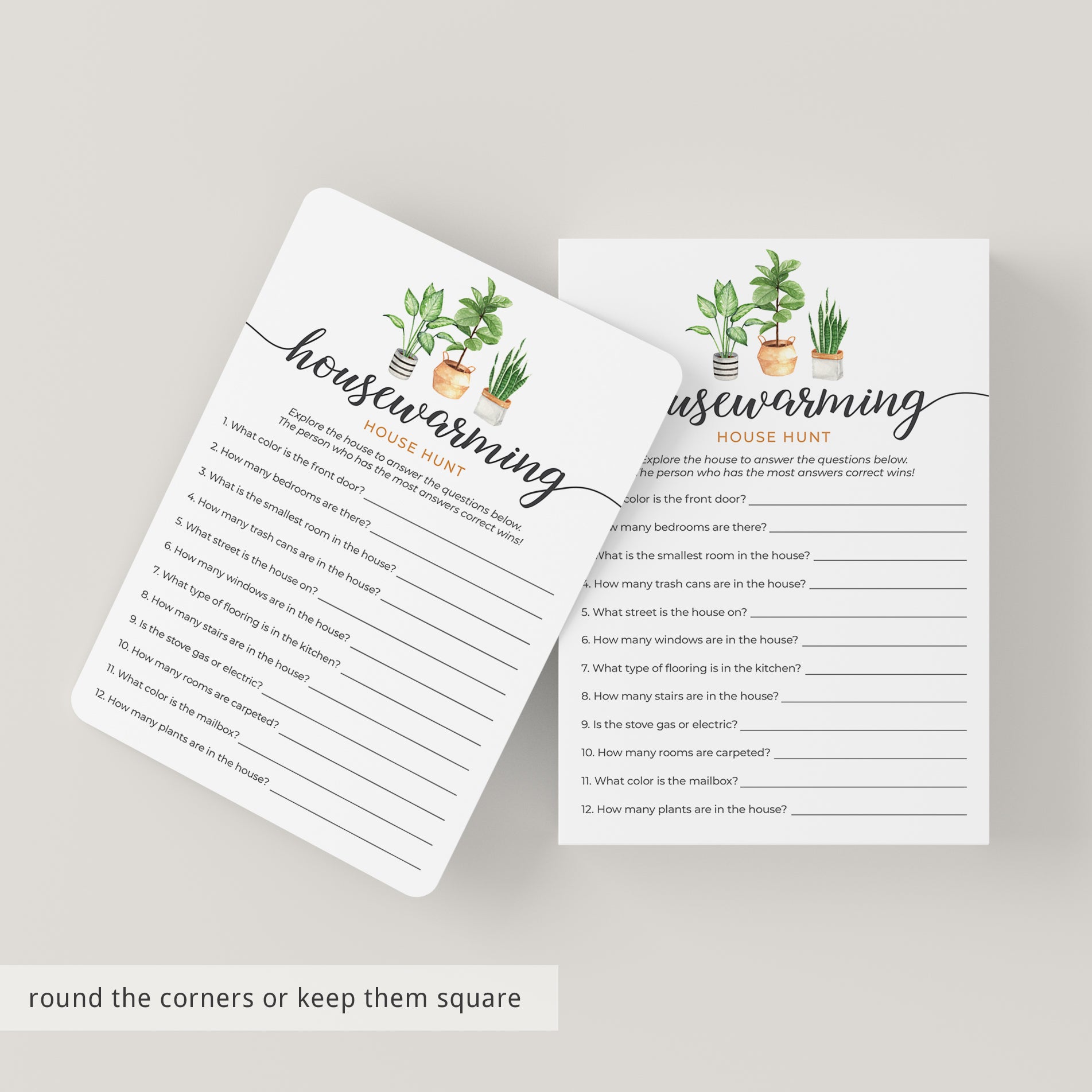 Add some fun to your new house tour with this Housewarming Scavenger Hunt game. Let your guest explore your new home to answer the questions listed on this beautiful game sheet with watercolor house plants.