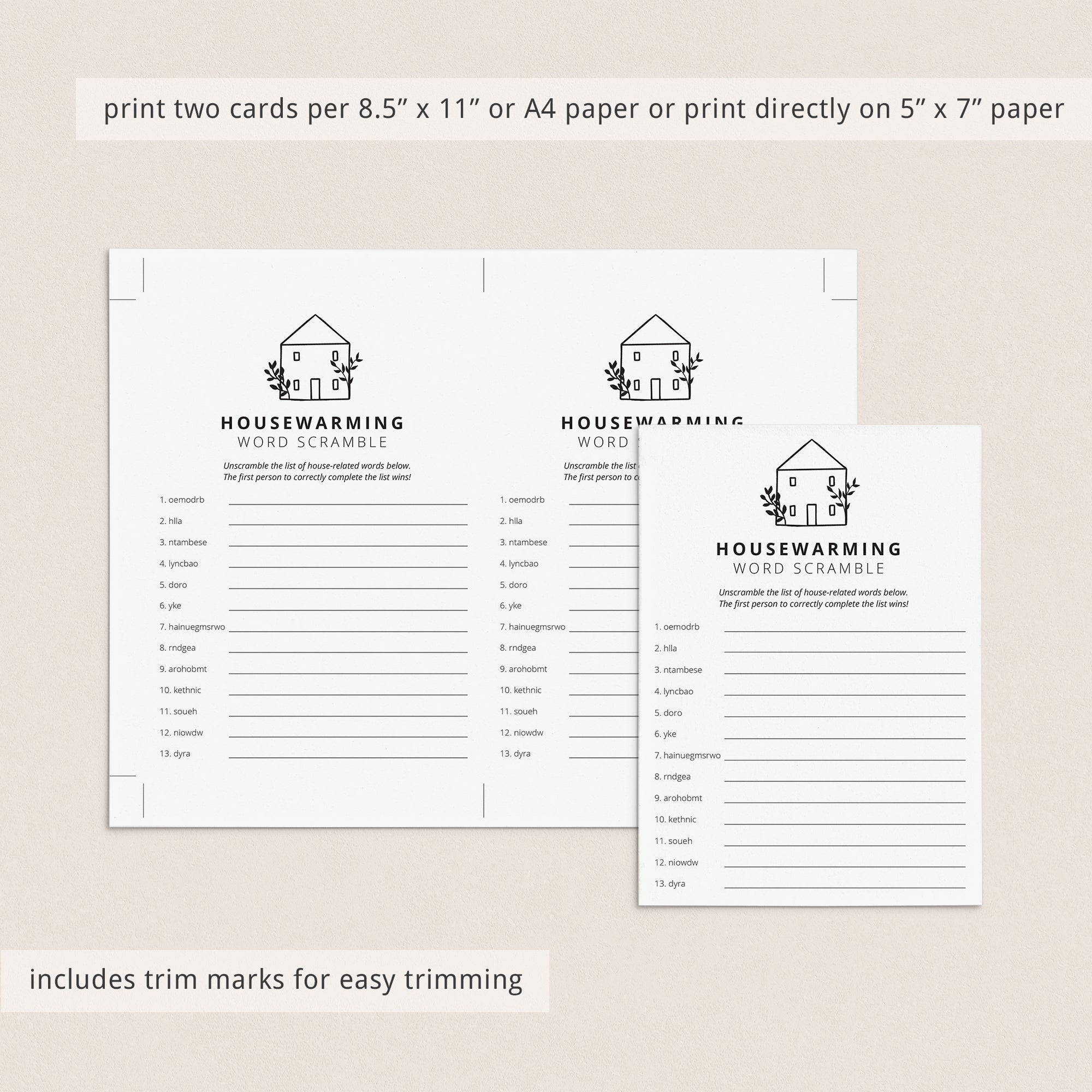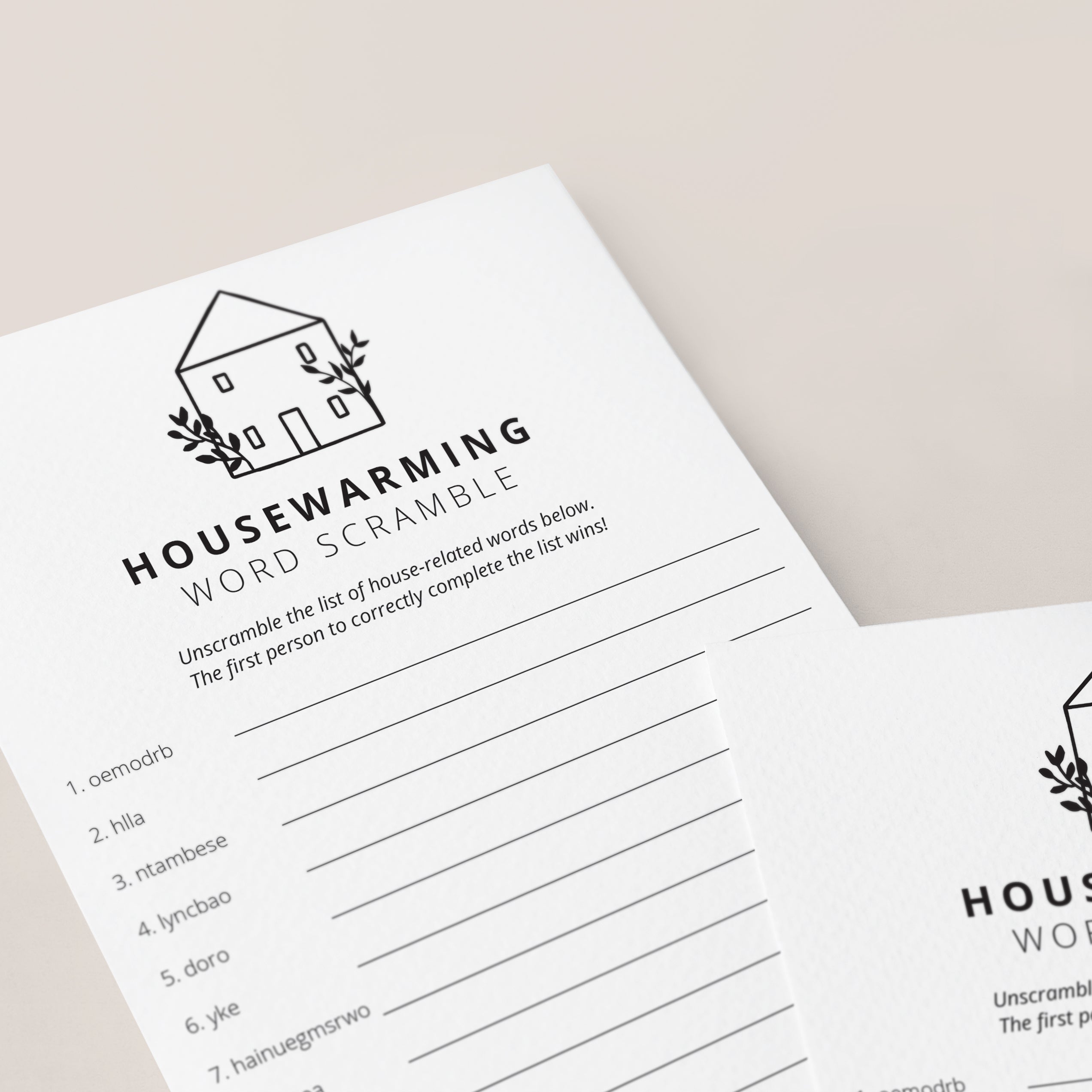 Play one of the most popular party games with this Housewarming Scramble Words game. The black and white minimalist game will fit any housewarming party theme. It will create a fun and enjoyable moment for all of your guests.