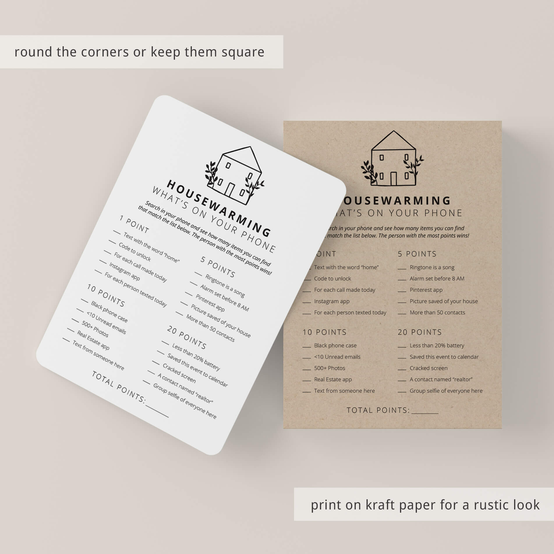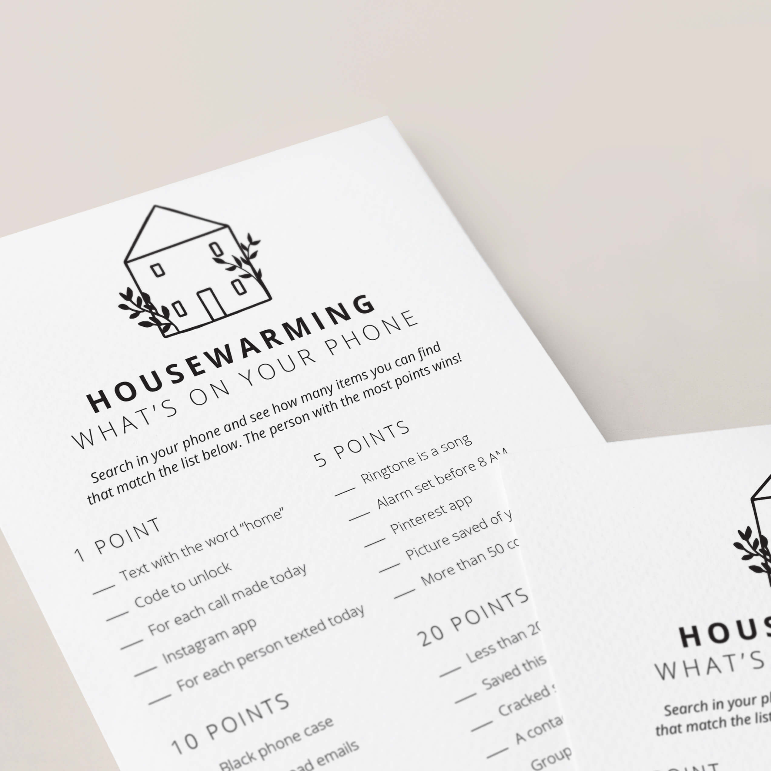 Most people come to a party with just a phone, credit card and keys. What else do you need, right? Does this sound familiar to you? Then this Housewarming Whats On Your Phone game is the perfect icebreaker for your Housewarming Party. It’s super easy to prepare for and simple to play.