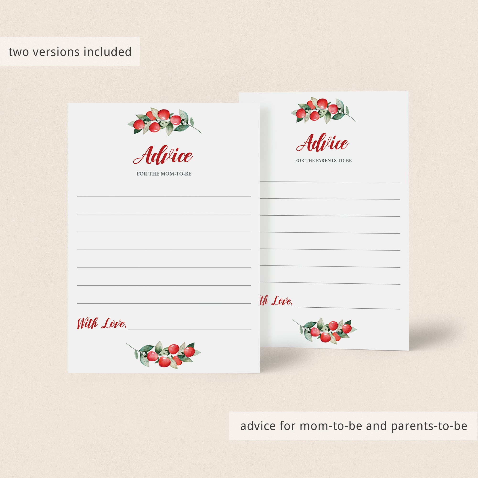 • Advice card (two versions included, advice for the mom-to-be and advice for the parents-to-be)