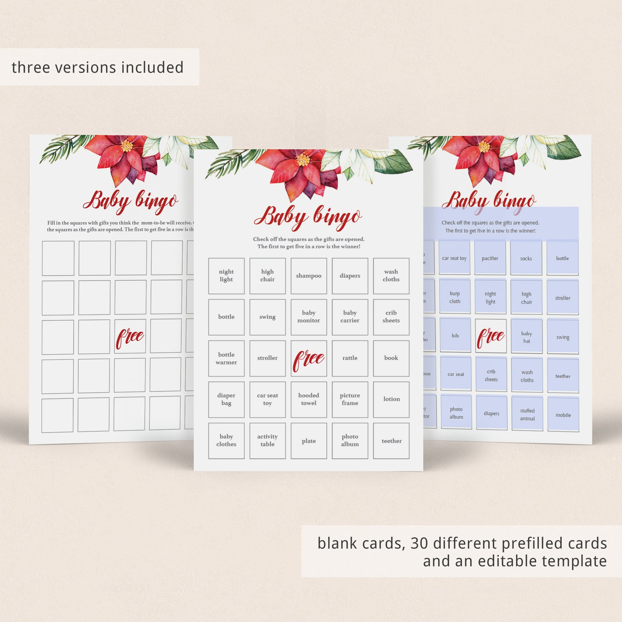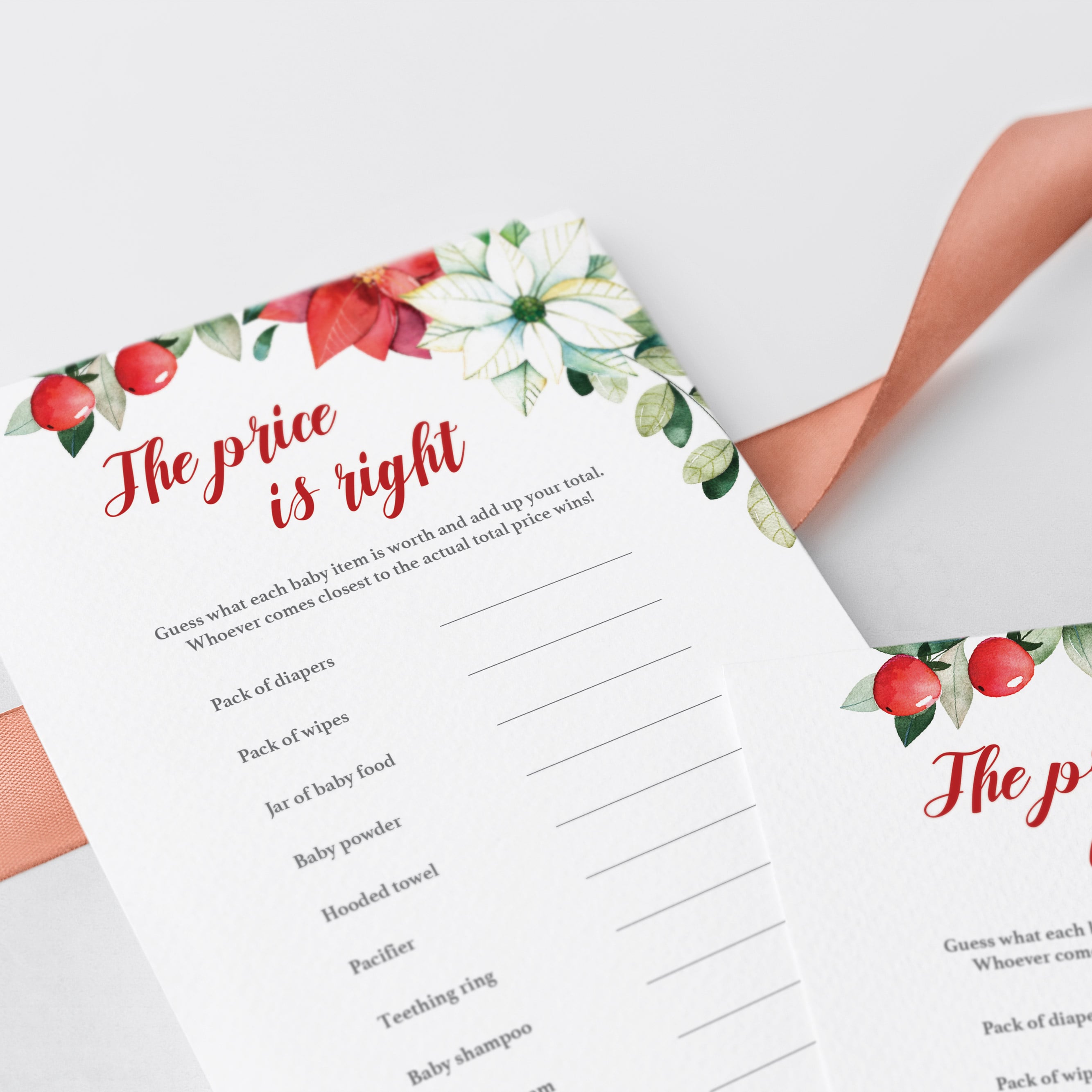 Entertain your baby shower guests with this huge red and greenery baby shower games package. It is the perfect addition to a winter baby shower. The red and white flowers and green leaves will ensure that you have those special winter vibes at your party.