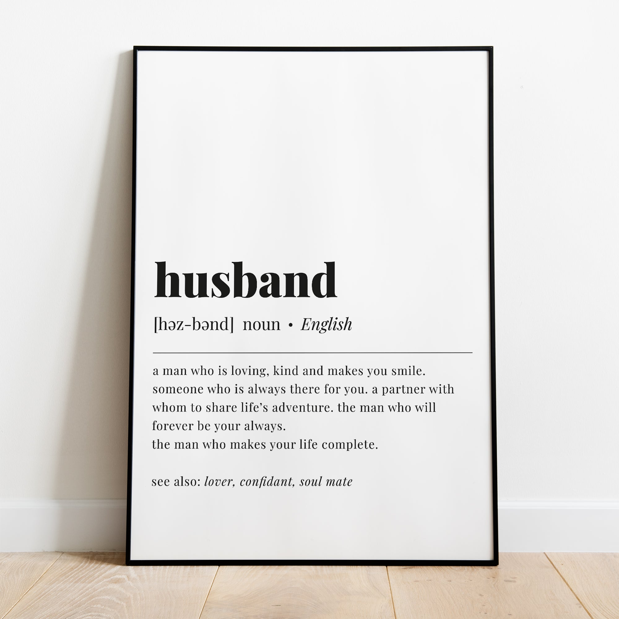 Are you looking for the perfect gift for your husband? Look no further! This modern minimalist Husband definition print is the perfect gift for him. Whether you're looking for a thoughtful wedding gift, an anniversary gift, birthday gift or just a funny card to remind him how special he is, this Husband typography print will definitely put a smile on his face.