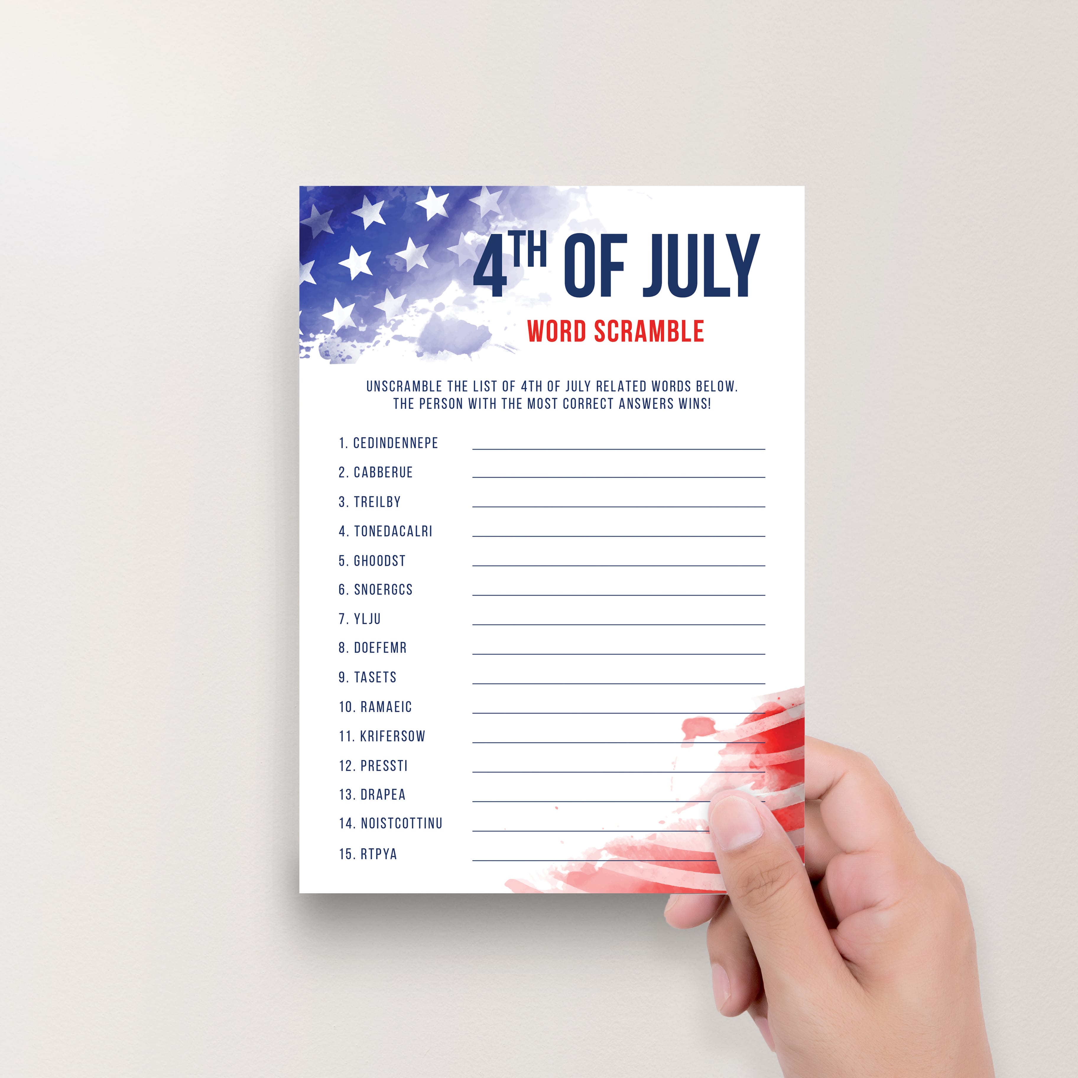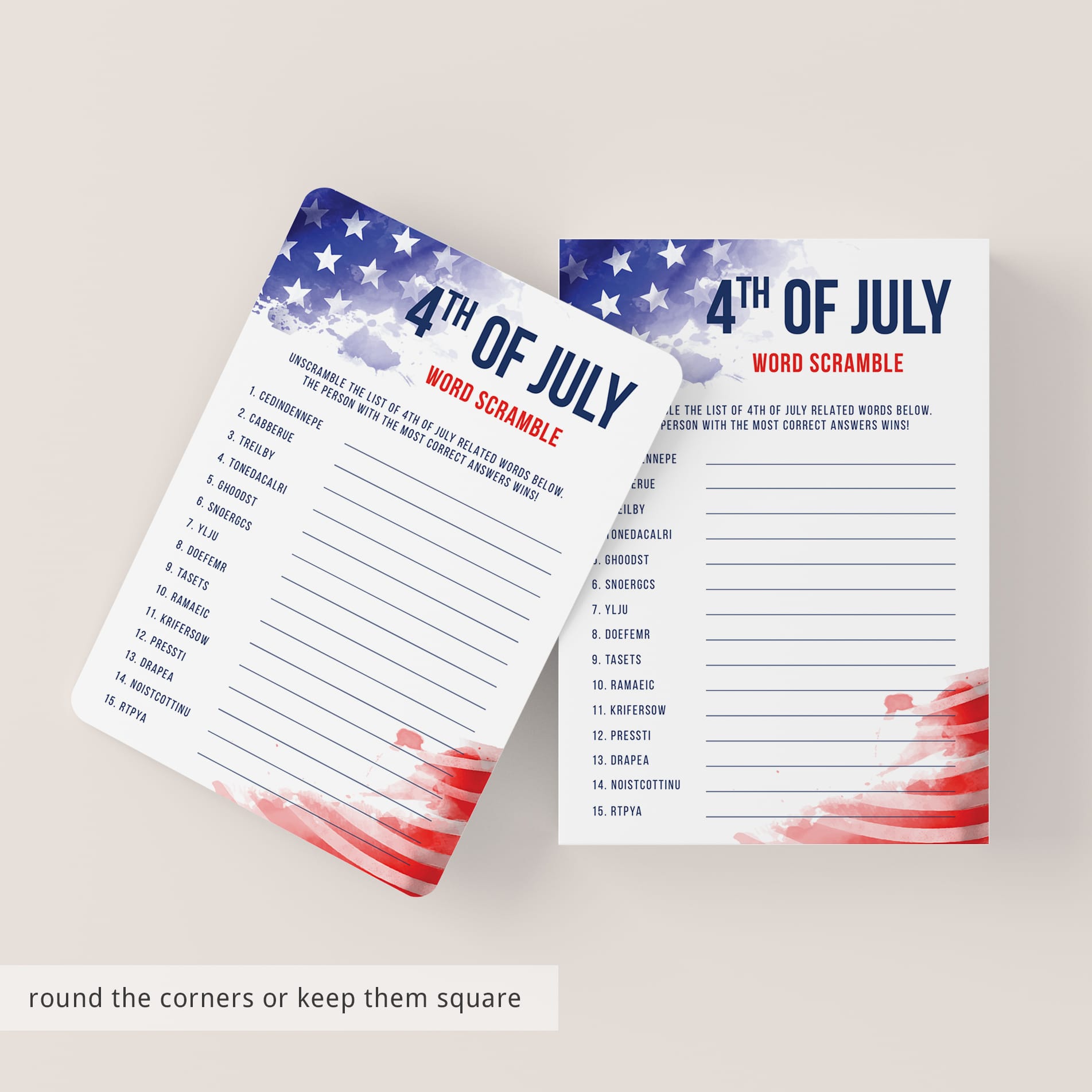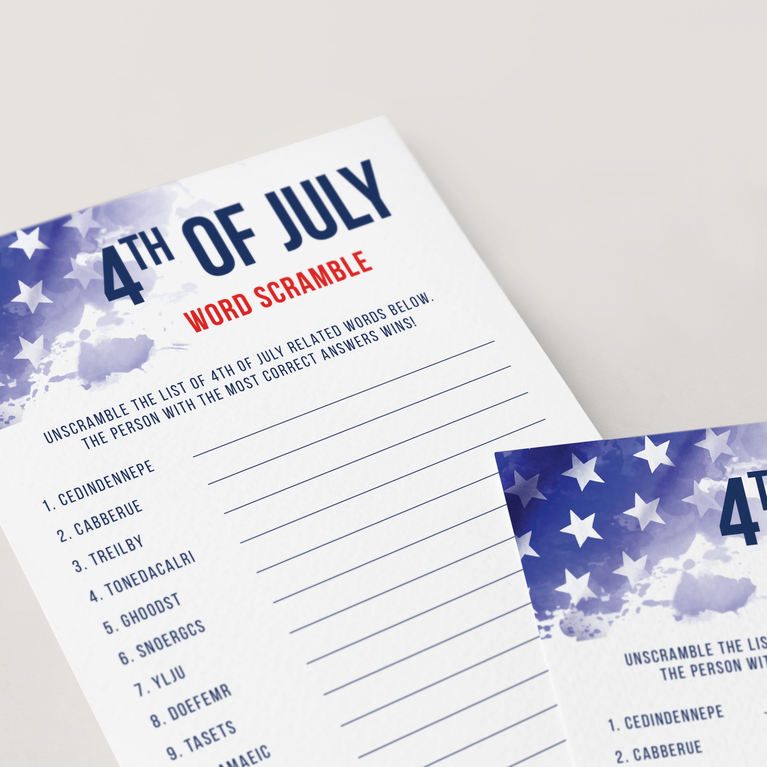 Have everyone try to unscramble the 4th of July-related words. Just in case you have trouble figuring out the scrambled words, an answer key is included.