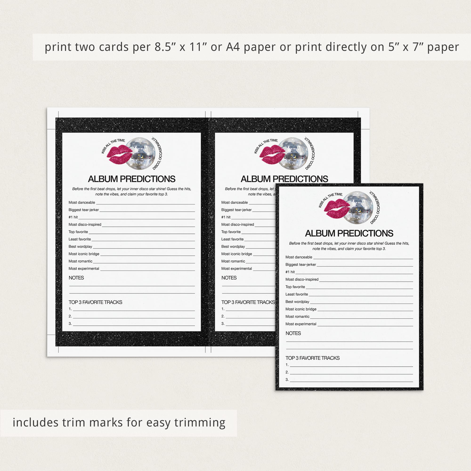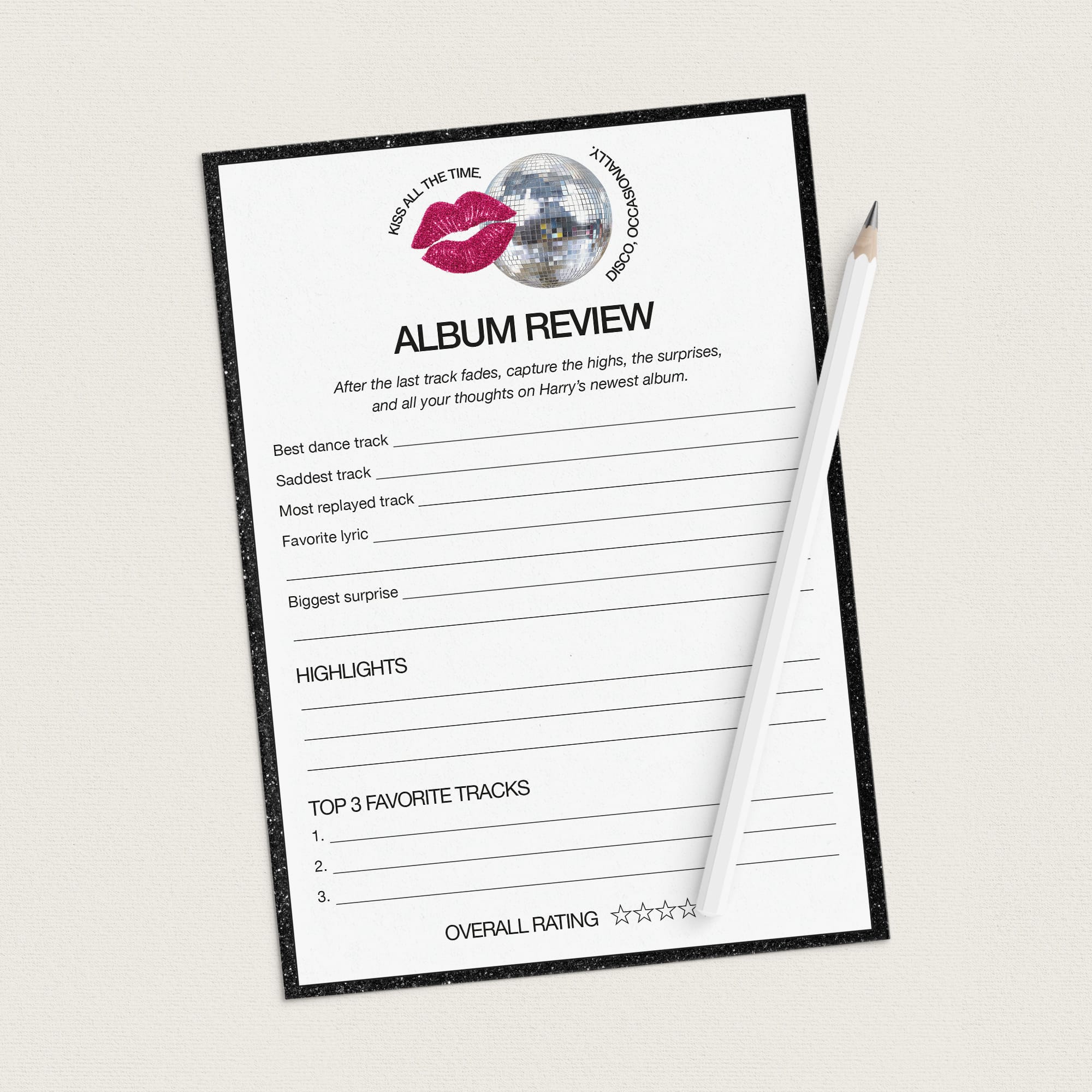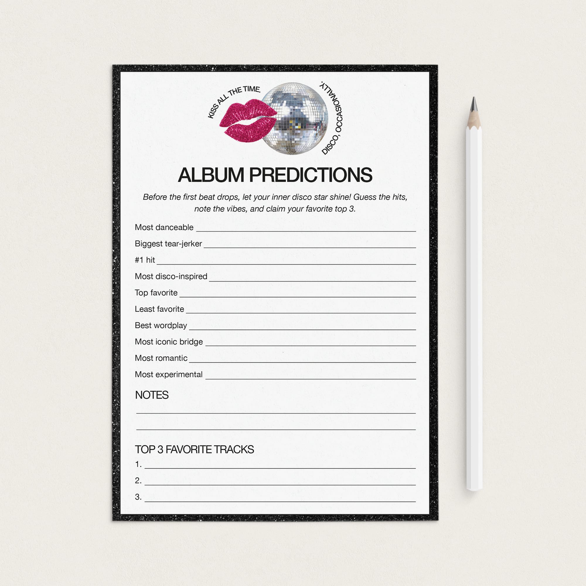 Set the stage for an unforgettable release day with these fan-made album release party printables, made to celebrate "Kiss All The Time, Disco Occasionally" in style. Whether you’re hosting a cozy night with friends or a full-on album drop celebration, these activities will keep the energy high and the conversations flowing.
