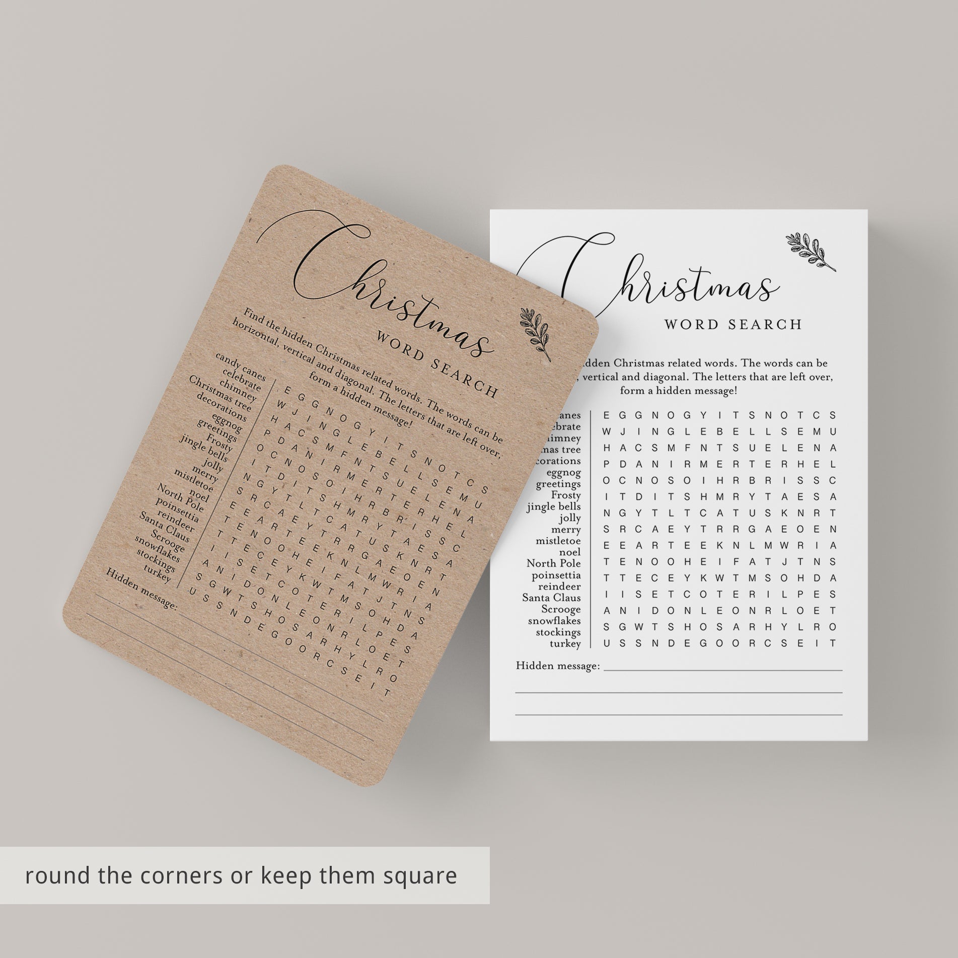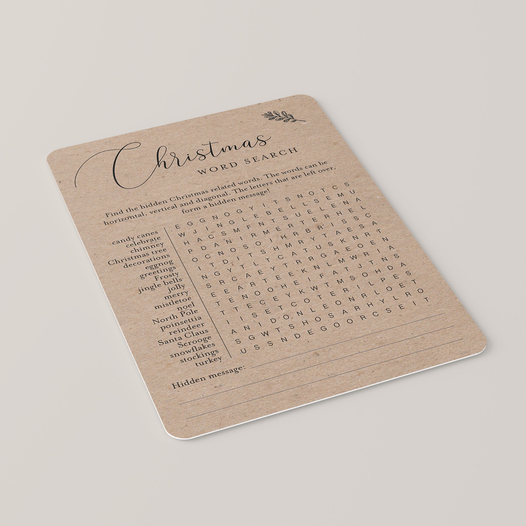 Are you looking for a fun and easy game to play at your holiday party? Play Christmas Word Search with these rustic game cards with kraft paper background.