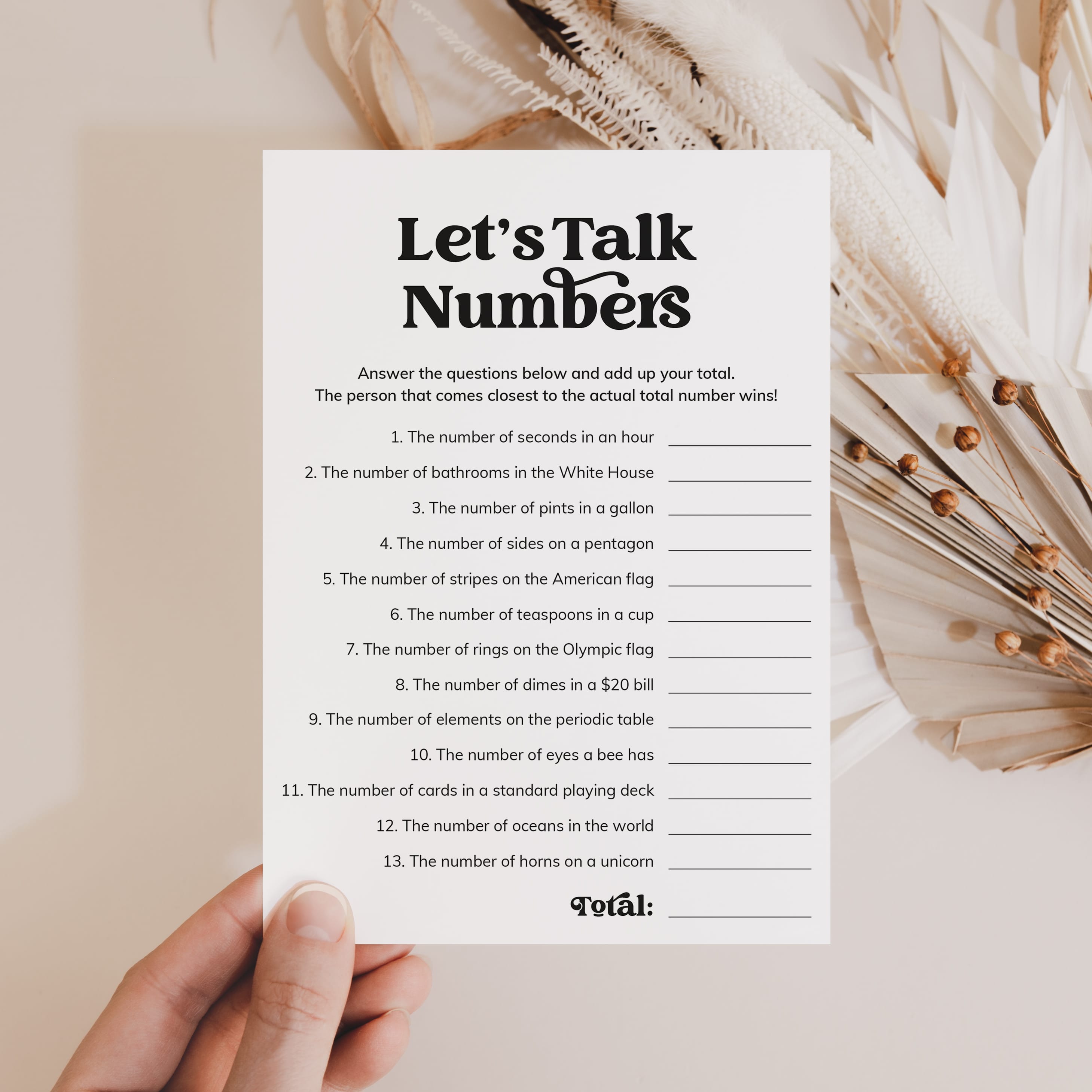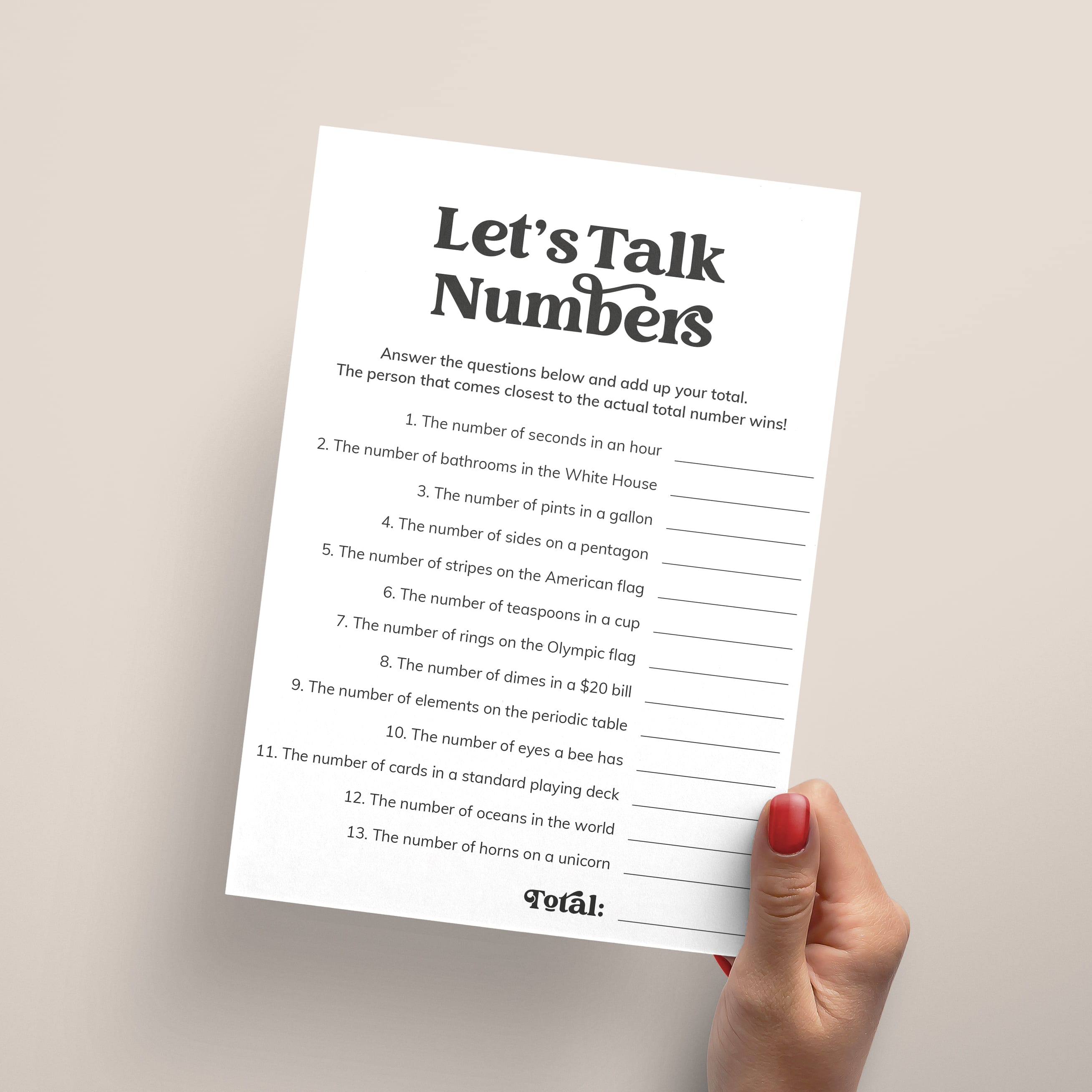 Are you looking for a fun game to break the ice and to live up your party? Play 'Let's Talk Numbers'. This fun trivia quiz is a great icebreaker game for your office party, family gathering, work meeting or team building event.