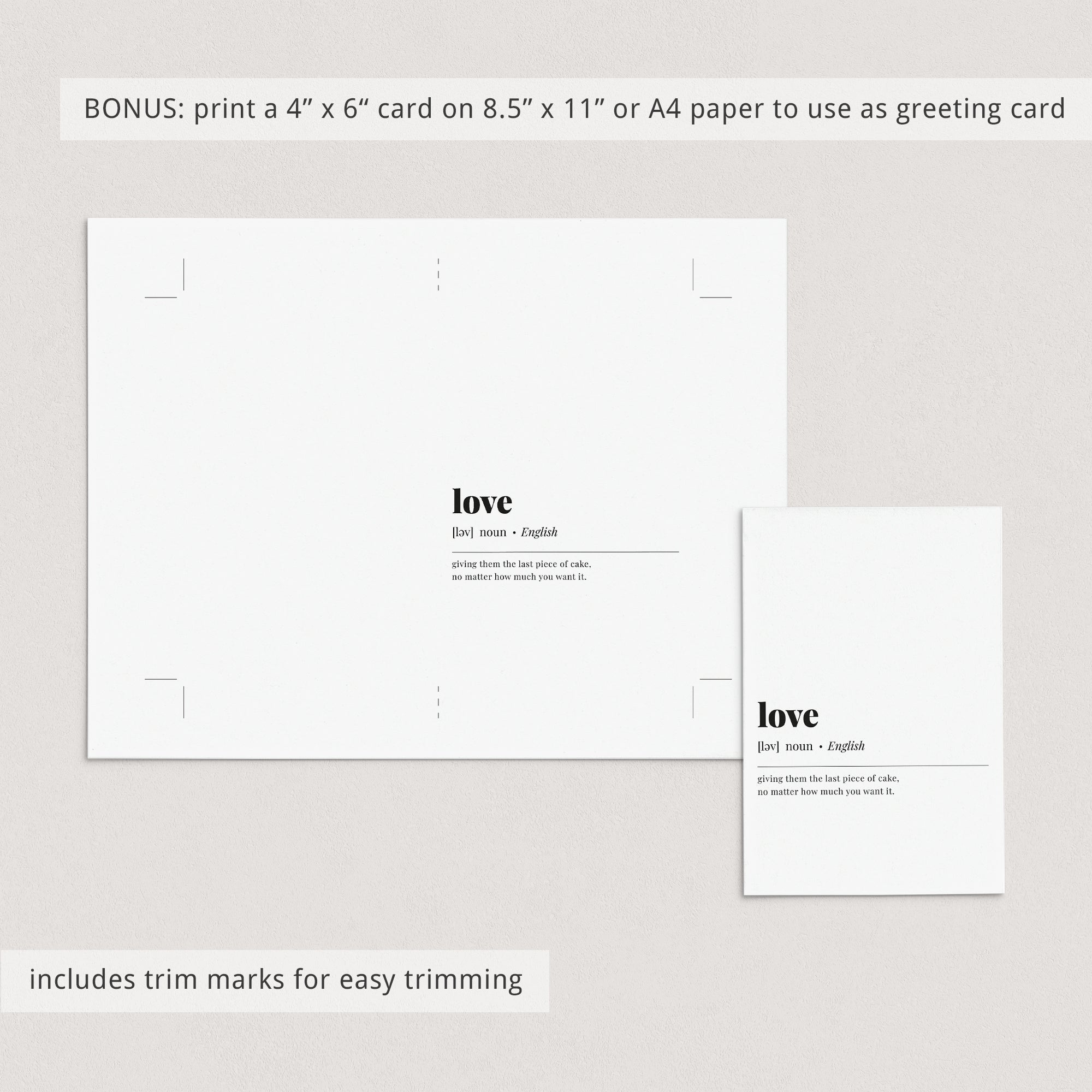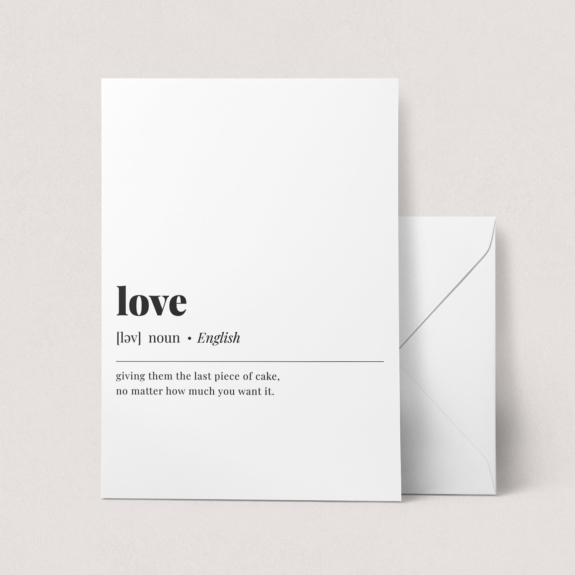 Celebrate the love of your life with this funny Love definition print. This dictionary style meaning of the word 'love' print is the perfect gift for your lover. True love really is giving them that last piece of cake.