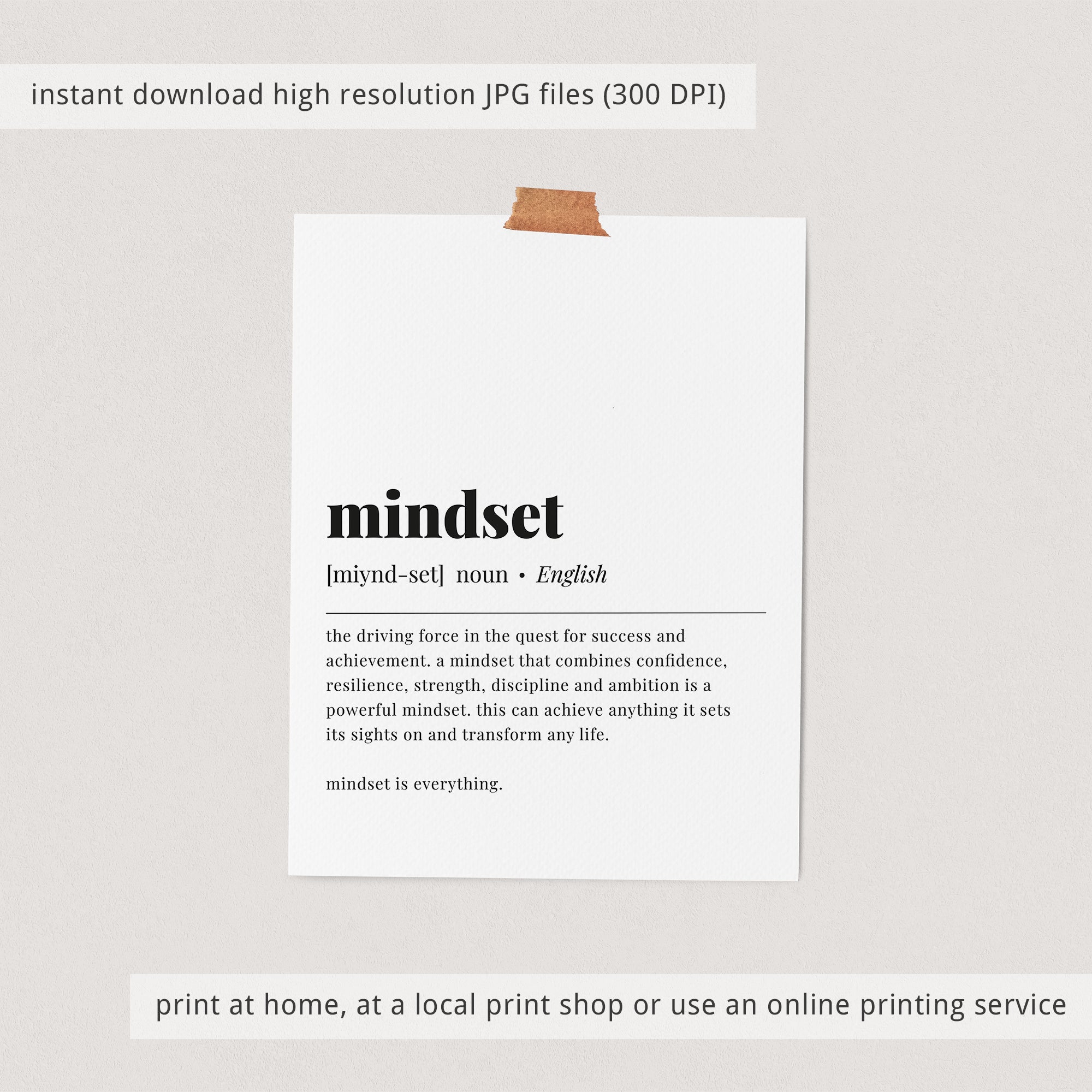 This dictionary style meaning of the word 'mindset' print is an instant download. After purchase you will receive a download link immediately on screen. Also within minutes of your order and payment, an e-mail will be sent to you with a link for your download.