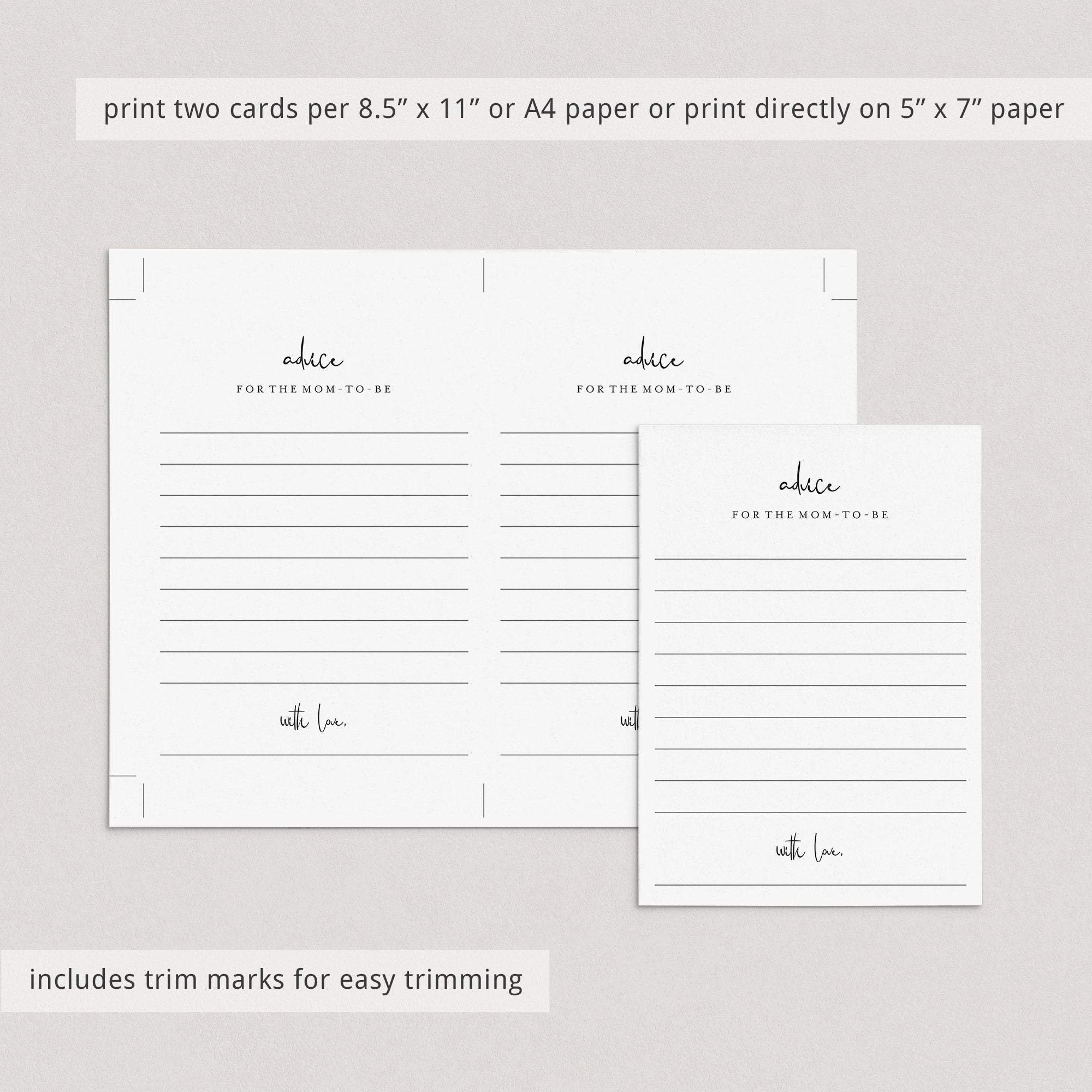 Let your guests write down their words of wisdom for the mom-to-be on these minimalist advice cards!