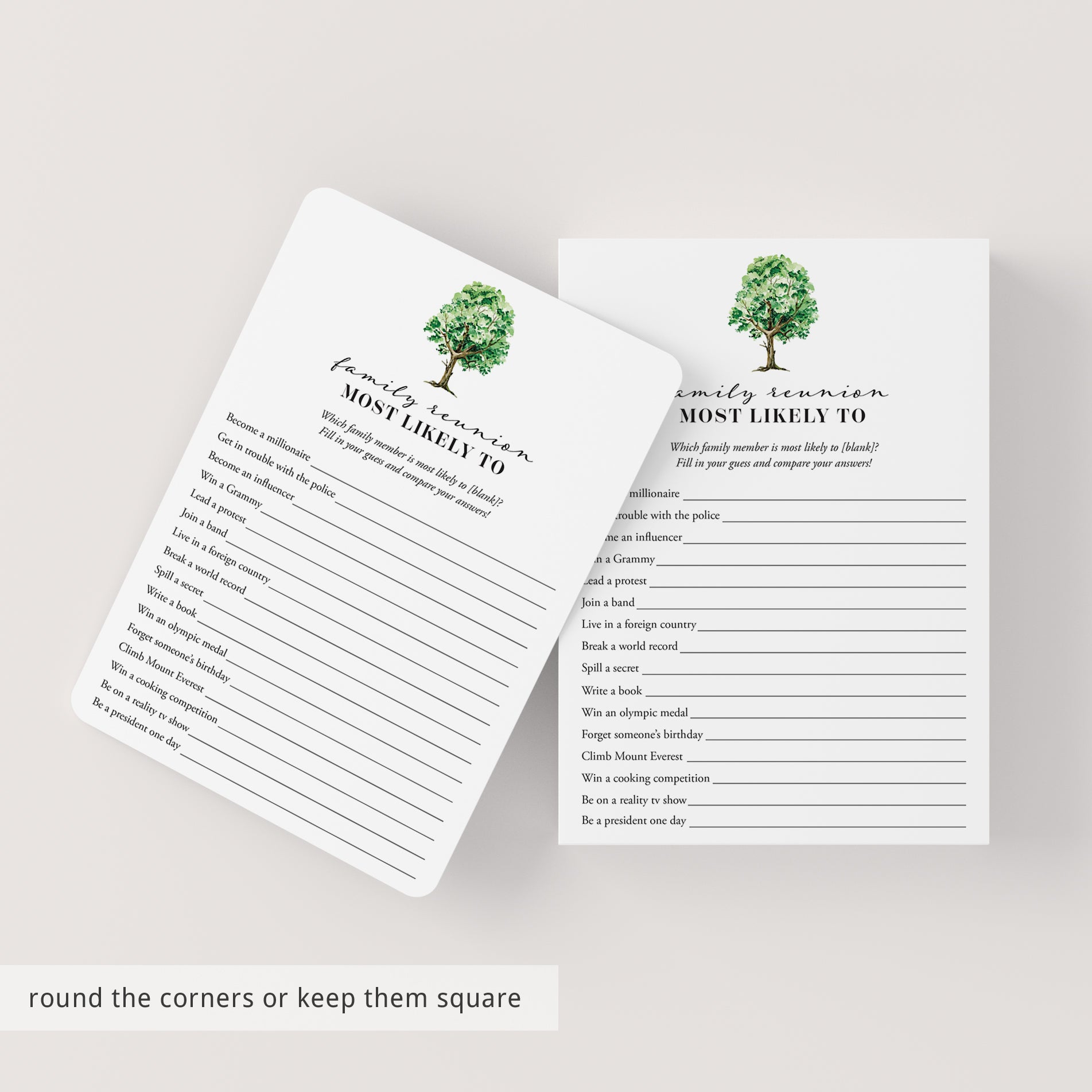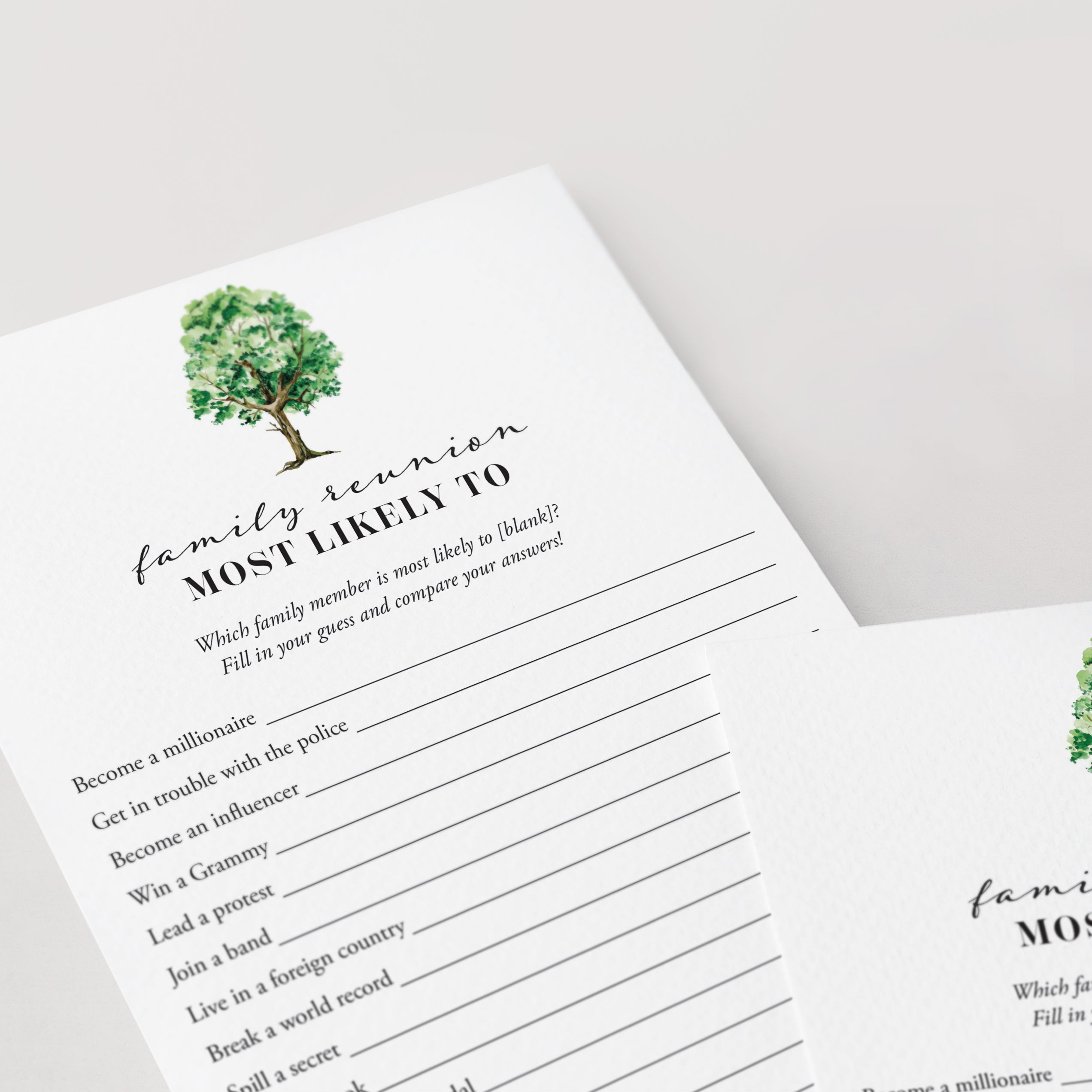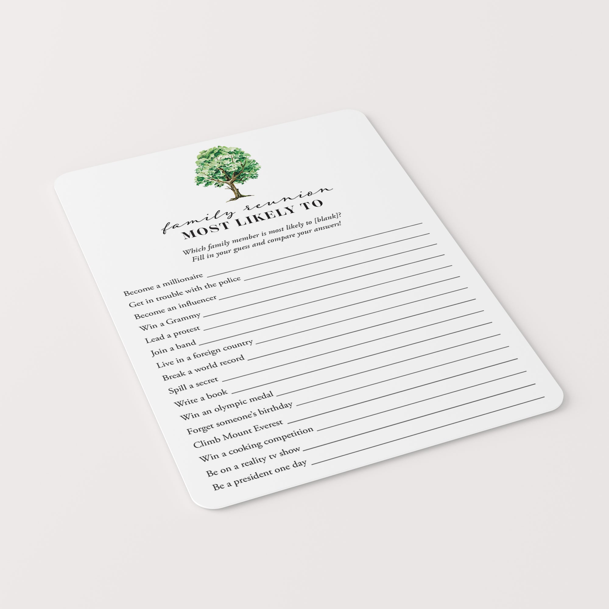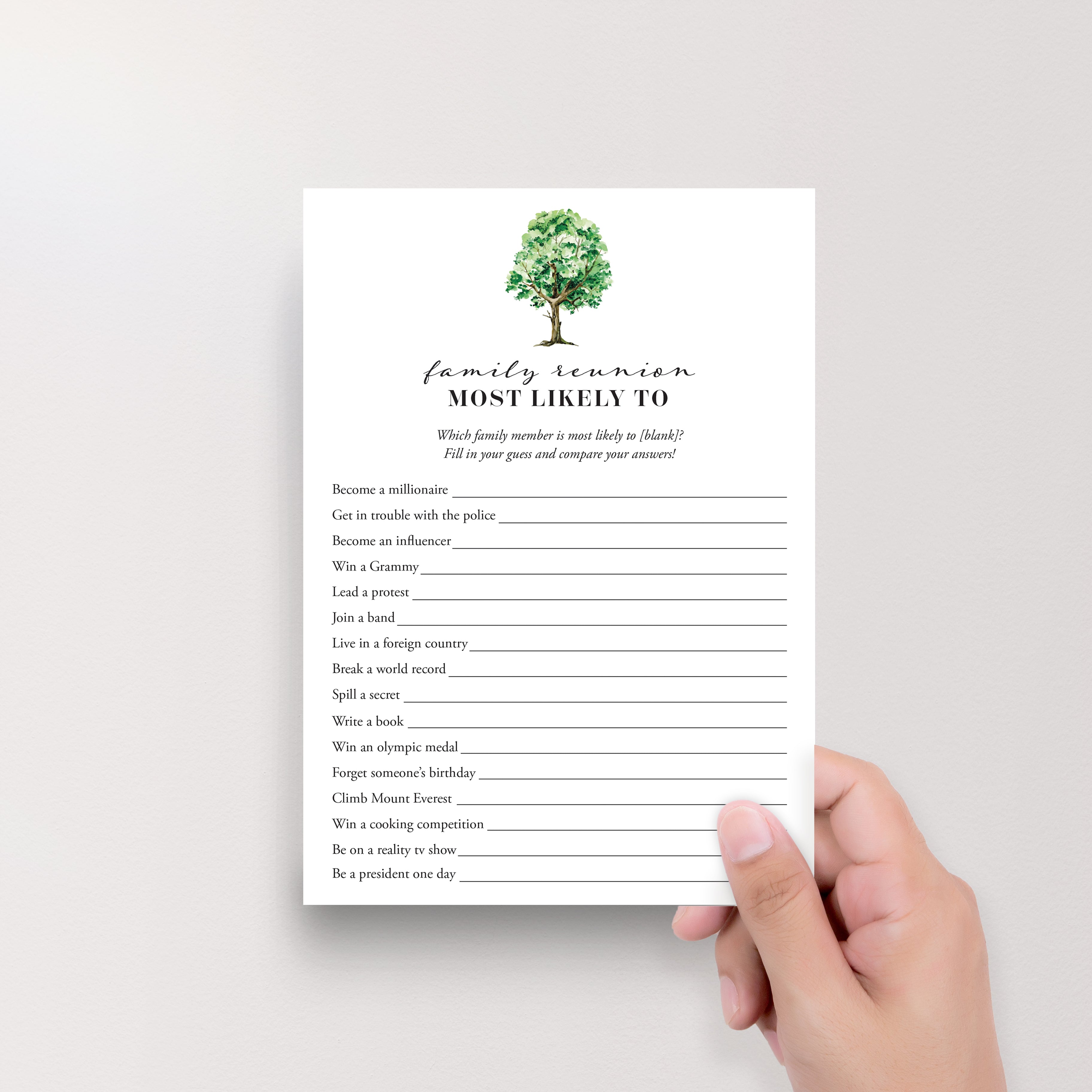 Are you looking for a fun game to play with your relatives? Play Most Likely To the Family Edition. This funny game with watercolor family tree has 16 Most Likely To questions for families that will get everyone talking and laughing. Who is most likely to become an influencer? And who is most likely to climb Mount Everest? You will get to know your family members at some new level.