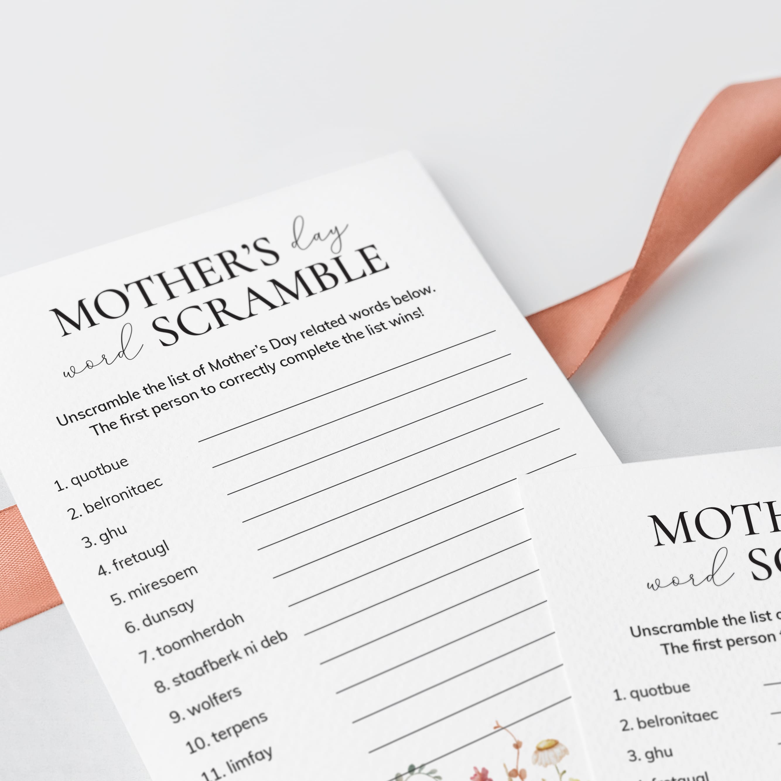 Whether you’re celebrating a Mother’s Day party with a large group of extended family and friends, planning a Mother's Day brunch for 20 wonderful woman or simply staying home for some quiet, quality time with your mom and siblings, this Mother’s Day Word Scramble game is a great way to keep everyone entertained.
