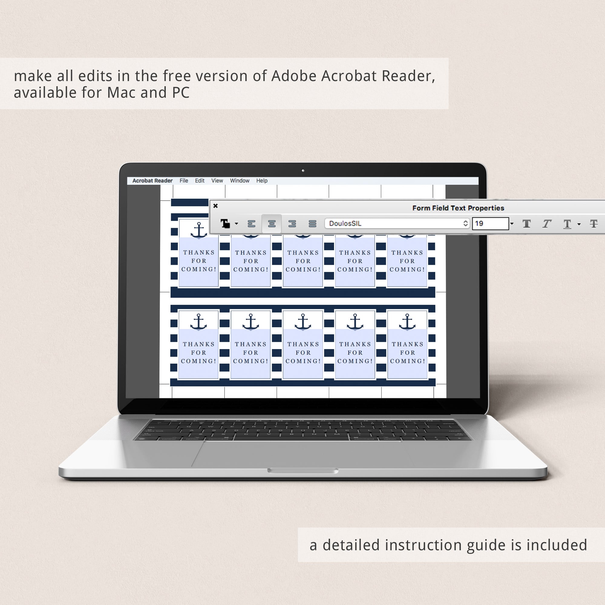 These nautical party printables are instant downloadable files. Simply download and print the items as many times as you need. We recommend printing on a nice heavy card stock for highest quality feel. Print right from your computer in a matter of minutes or have the items printed at your favorite print shop.