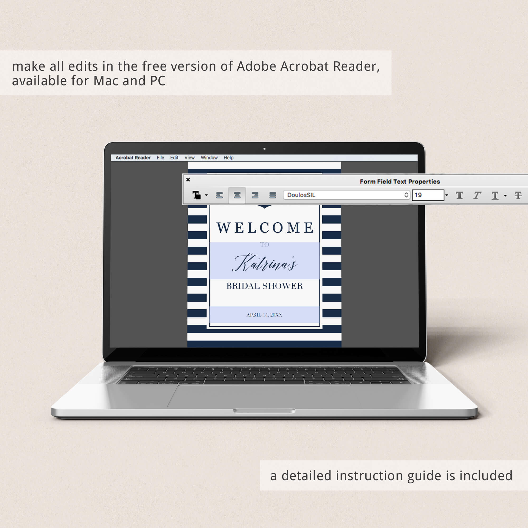 First impressions are important, so they say! Set the right tone for your bridal shower with this beautiful nautical welcome sign. The personalized sign will instantly make your bridal shower guests feel welcome.