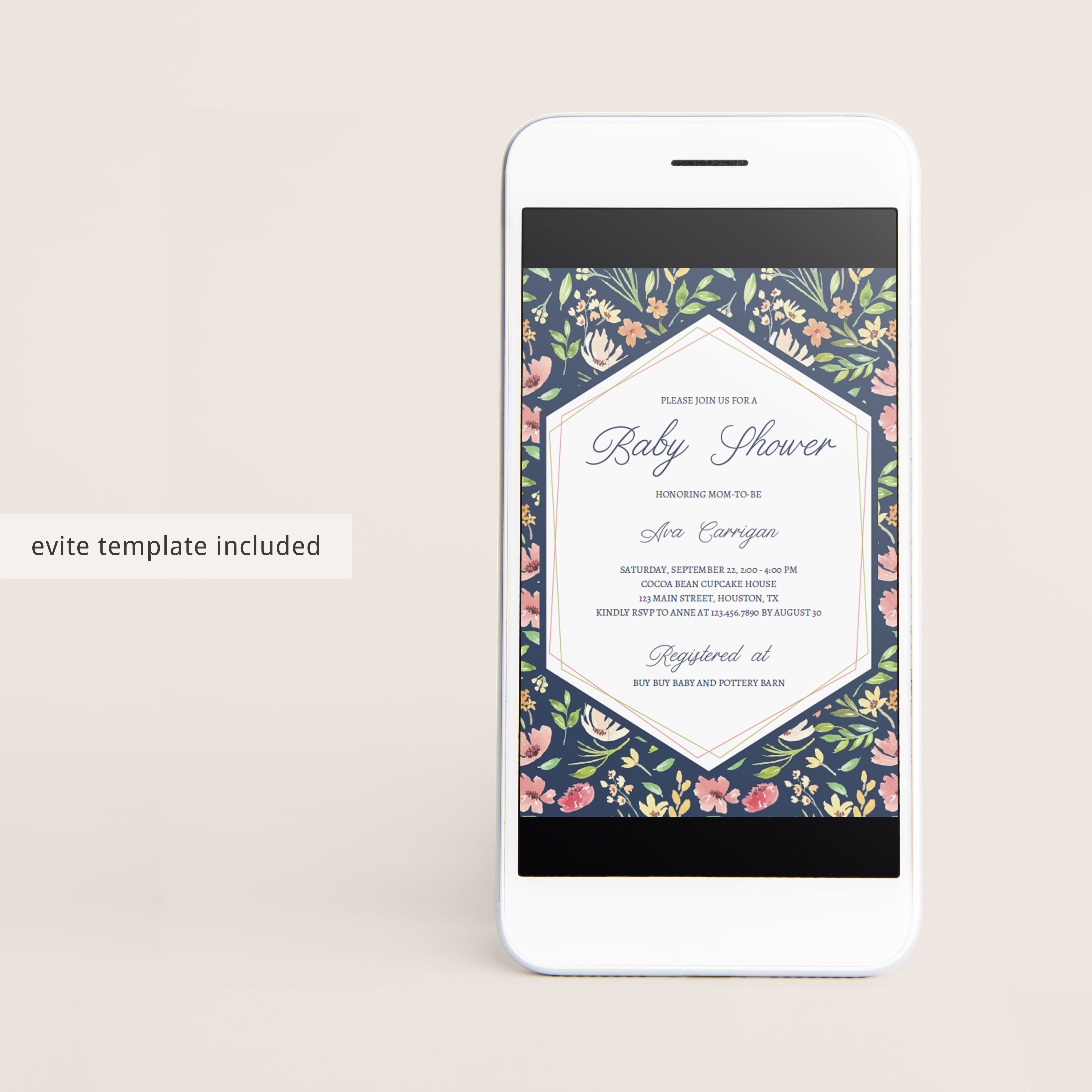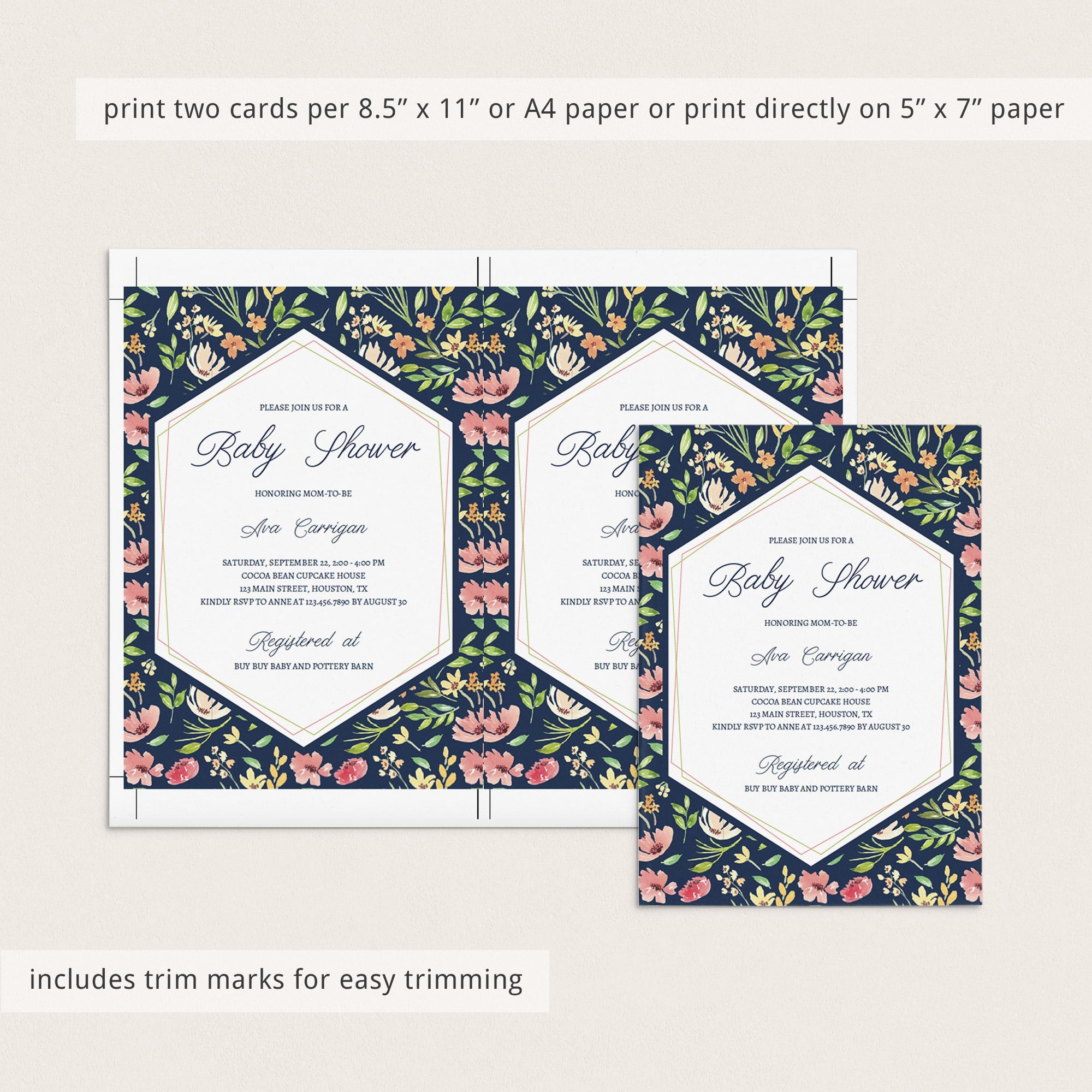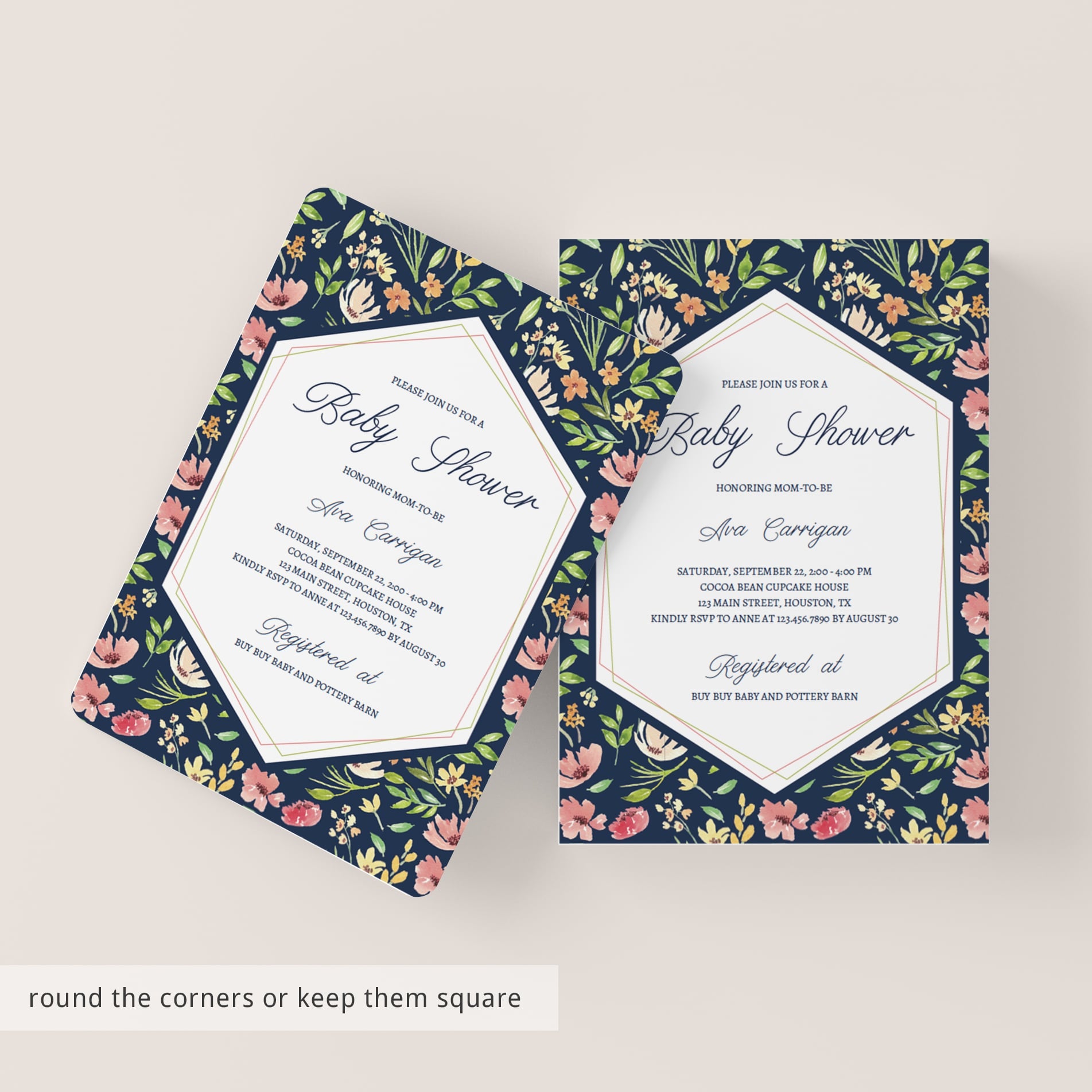 Make everyone go "ooh" and "ahh" with this gorgeous navy and pink flower baby shower invitation set!