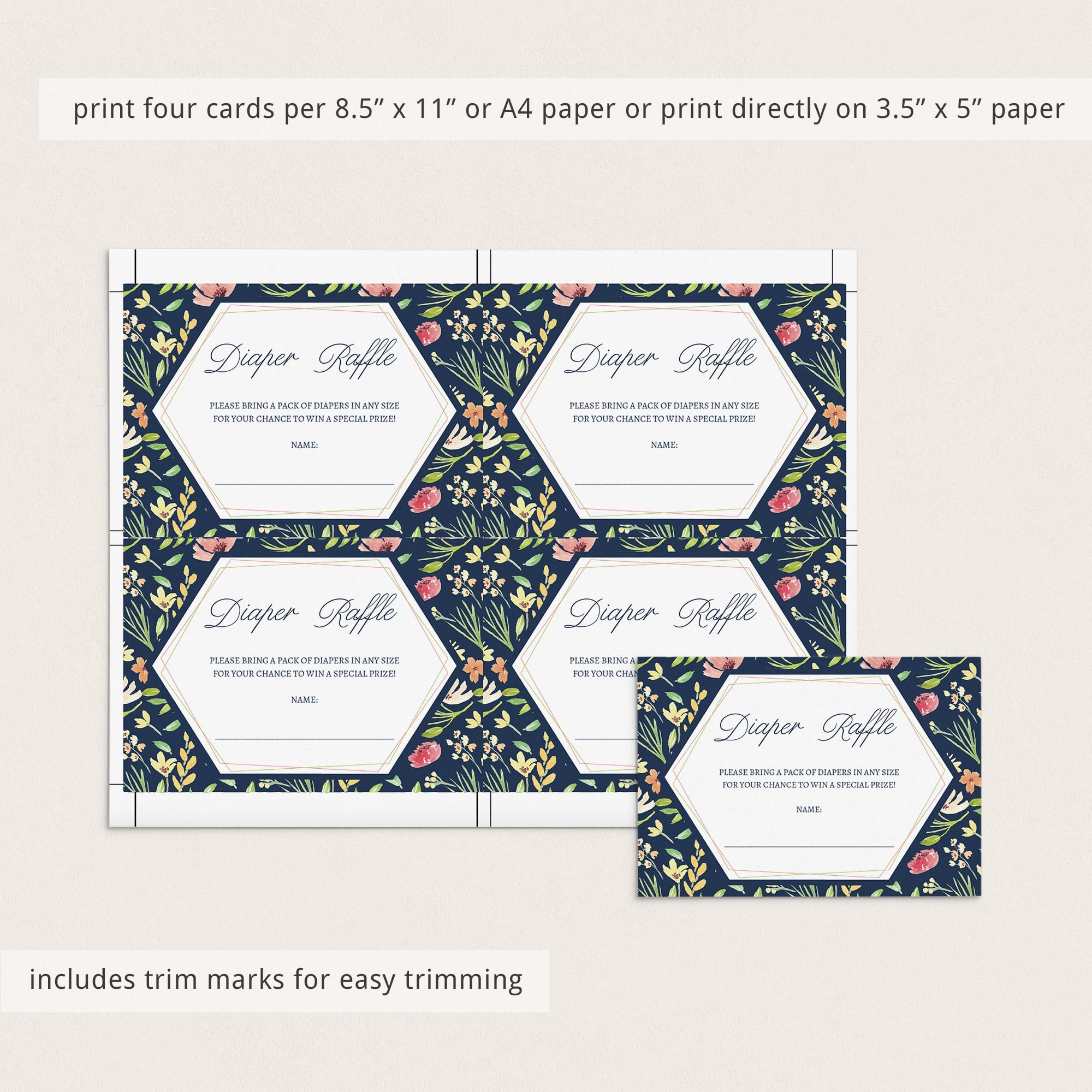 The floral themed invitation set includes the baby shower Invitation, and two inserts: a Diaper Raffle ticket and a Book Request card.