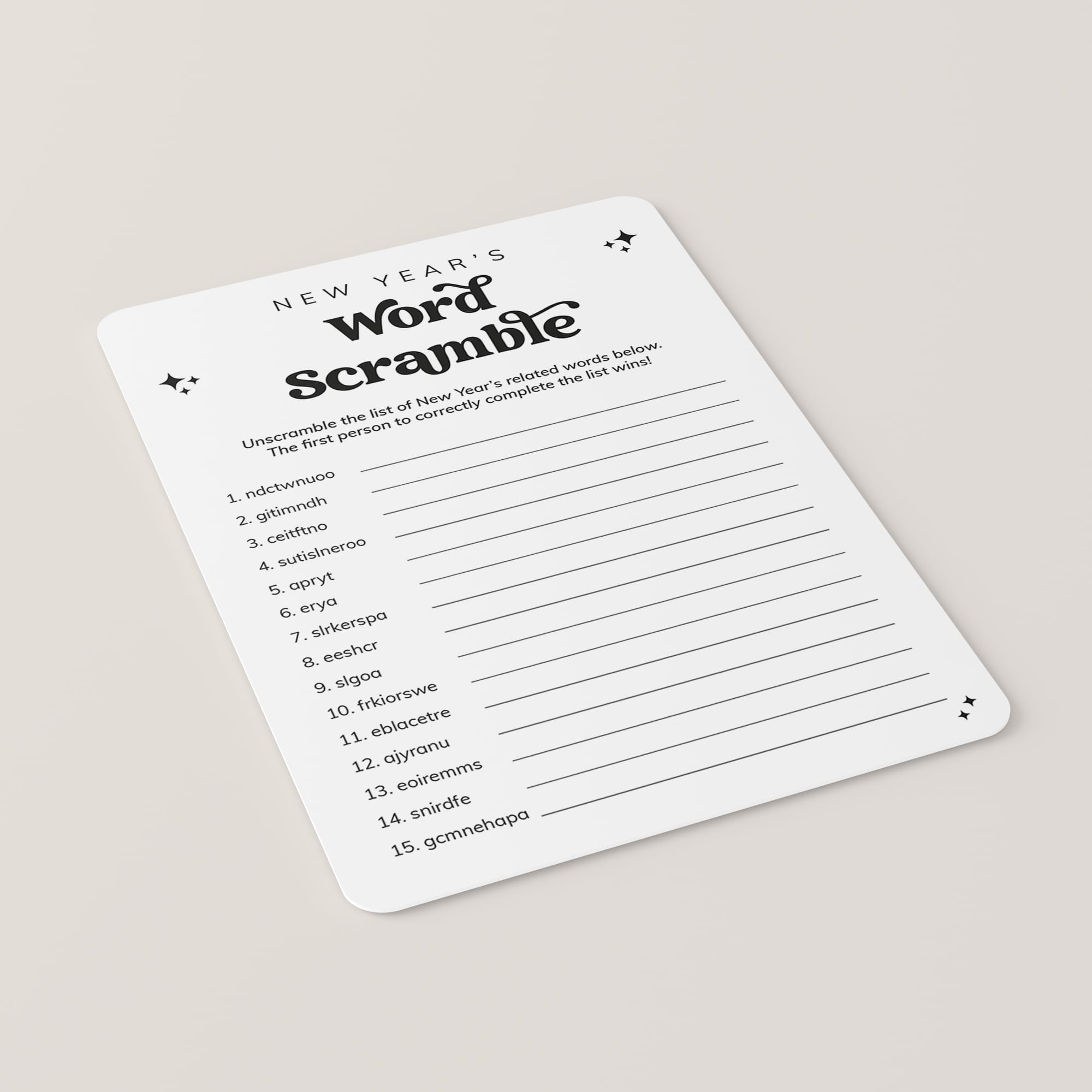 Word Scrambles are so much fun! They are a great challenging activity that kids and adults can both enjoy. Add some fun to your New Year's Eve party with this printable New Year's Word Scramble game featuring 14 New Year's related words to unscramble.