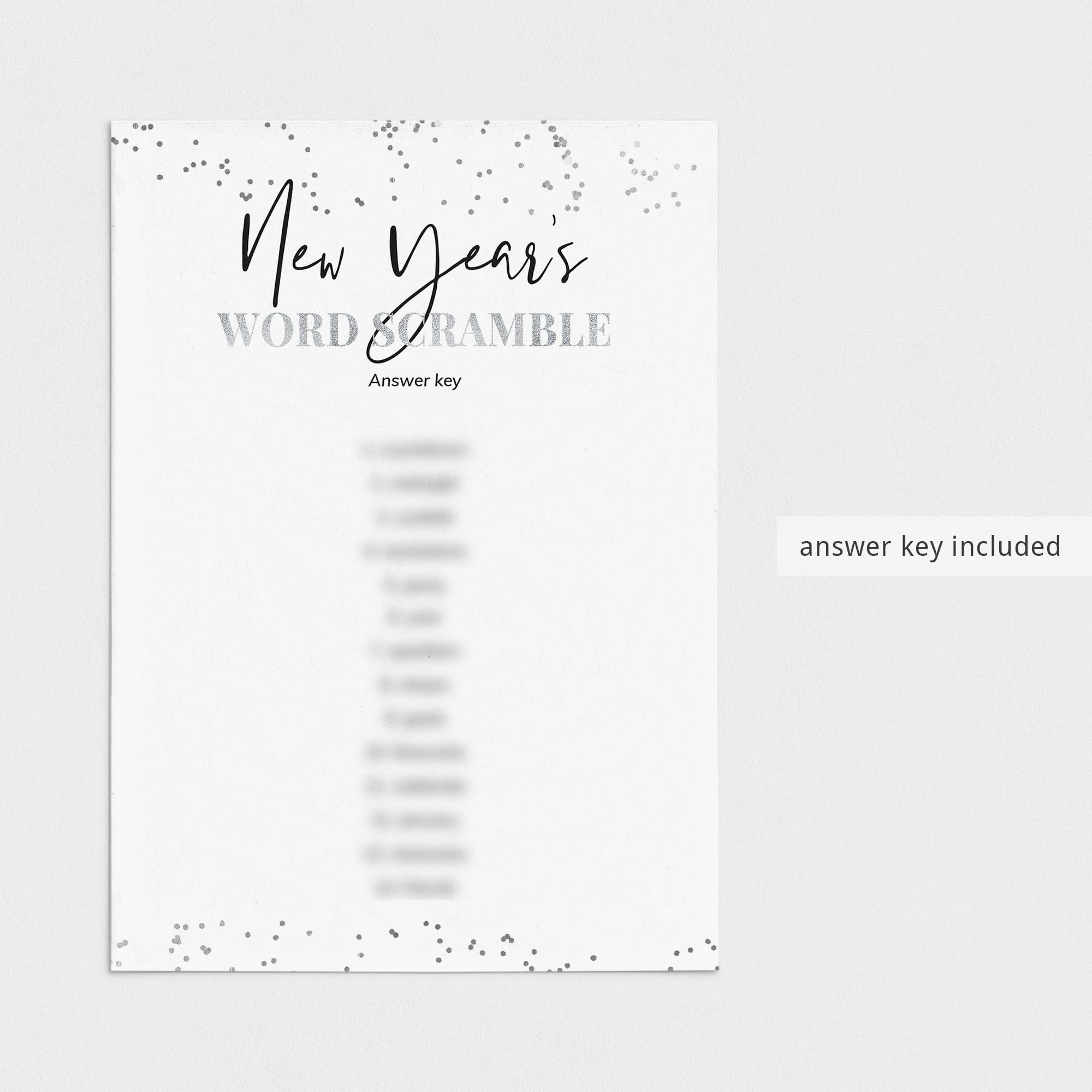 New Year's Word Scramble with Answer Key Printable by LittleSizzle