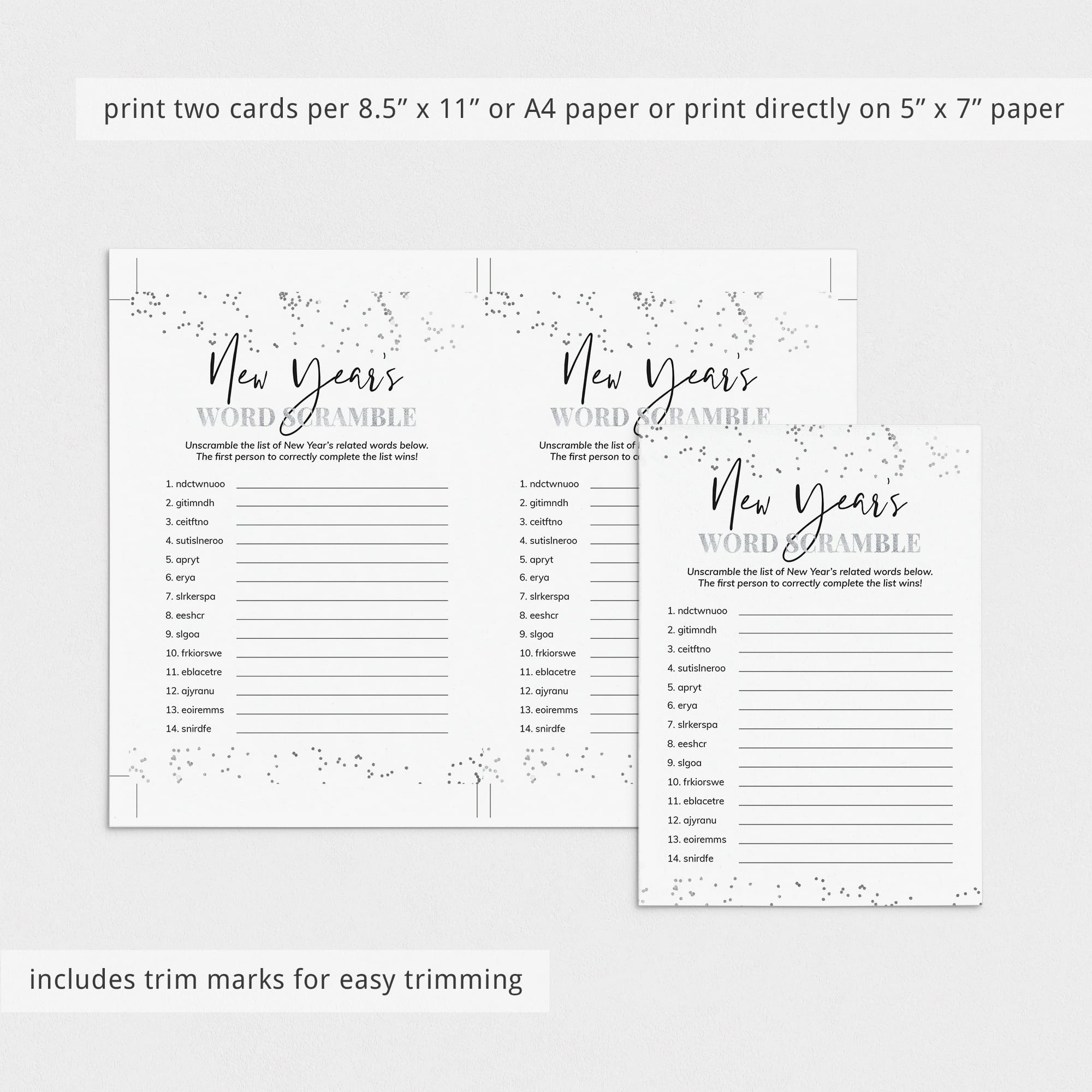 This Silver New Year's Word Scramble game is an instant download. After purchase you will receive a download link immediately on screen. Also within minutes of your order and payment, an e-mail will be sent to you with a link for your download.