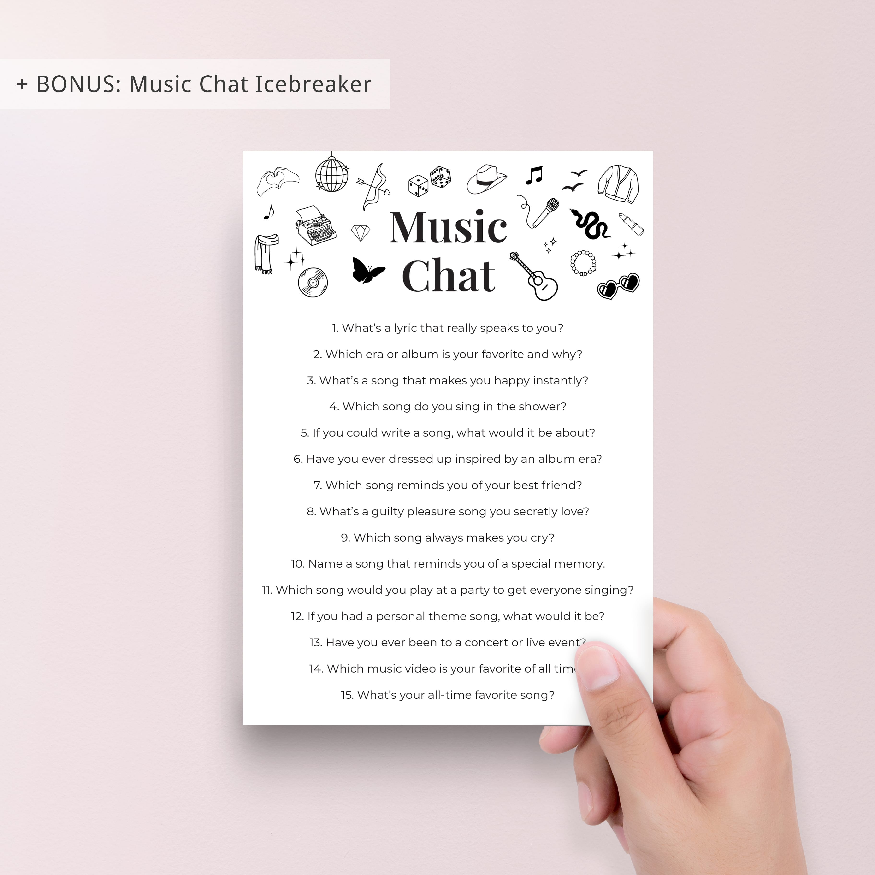 With fun icebreakers like Would You Rather, Banger Battle, and Most Likely To, plus trivia challenges like Album Match, Crack the Code, and Vault or False, this bundle is guaranteed to keep everyone laughing, guessing, and singing along.