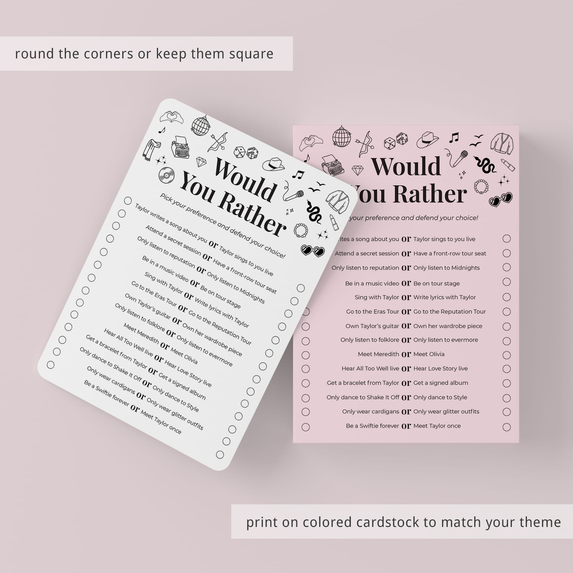Looking for the ultimate addition to your Par-Tay, listening party, or birthday celebration? This printable game set is inspired by the music, eras, and sparkle of your favorite Showgirl. Perfect for a girl birthday bash, slumber party, fan club meetups or Par-Tay-themed celebration with friends.