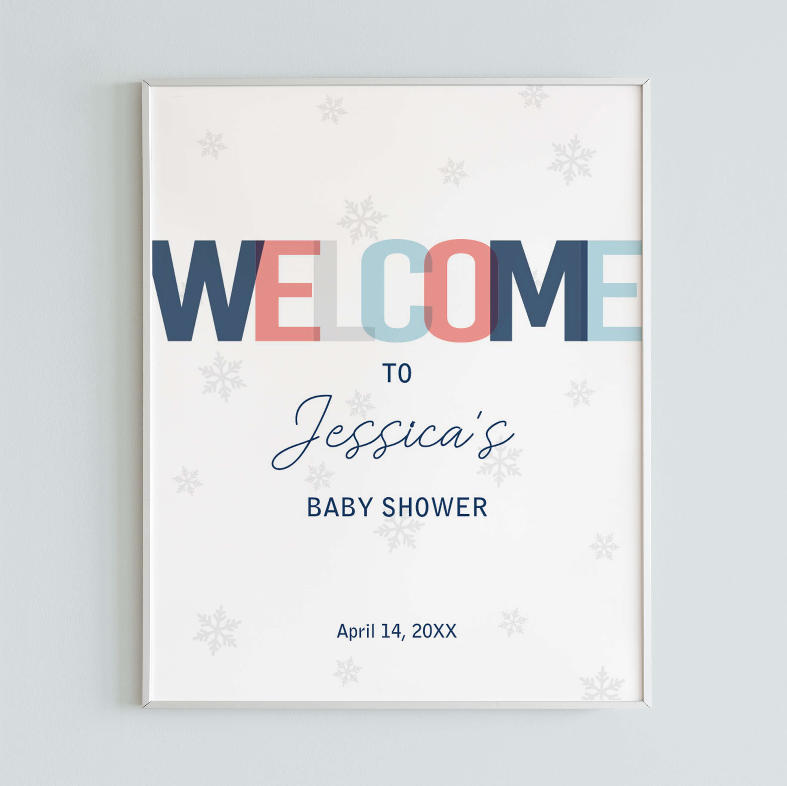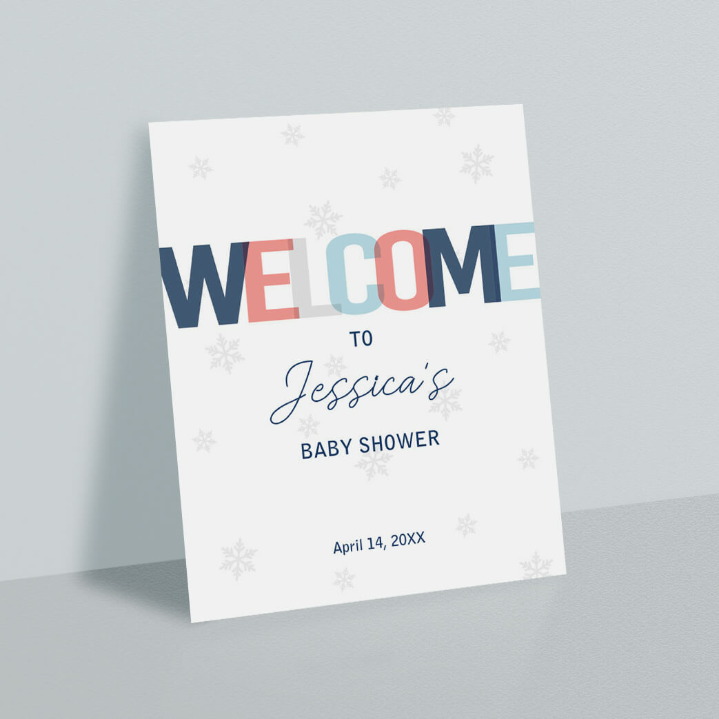They say that first impressions are important. Set the tone for your baby shower or bridal shower and decorate your party with this winter shower welcome sign with subtle little snowflakes.