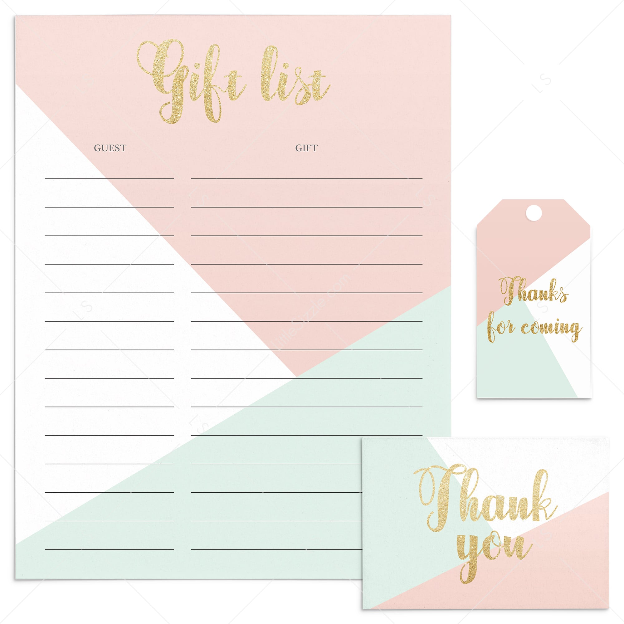 Are you hosting a pink and gold party? Use this pink and gold party supplies package including a thank you card, tag and a gift tracker sheet. Take notes to remember who gave each gift and thank your guests for coming to your party. With these essential pink and gold party supplies, you’ll be ready in no-time!